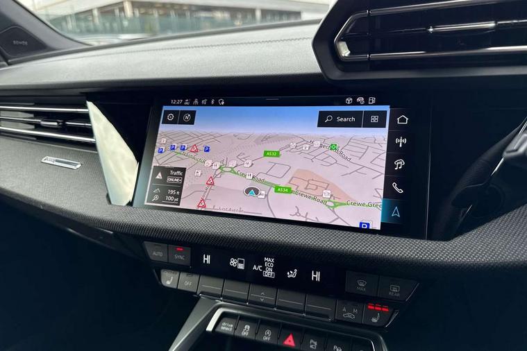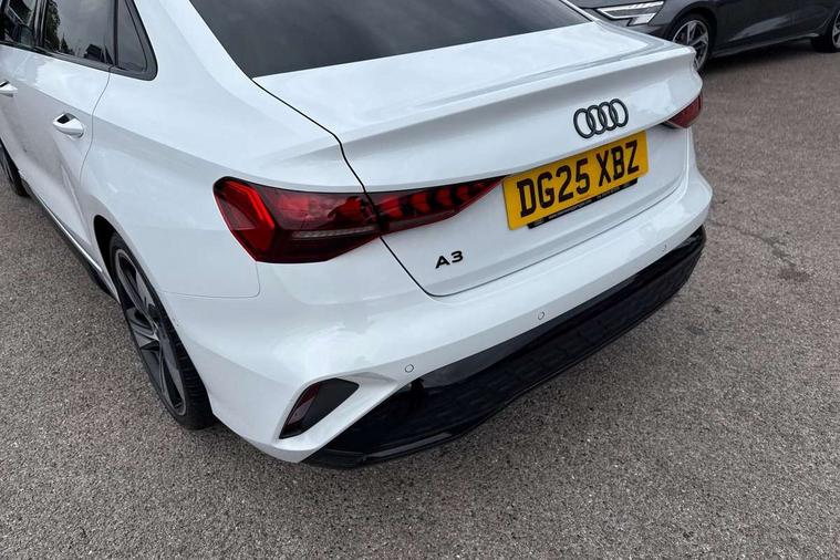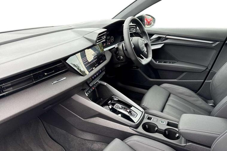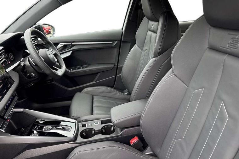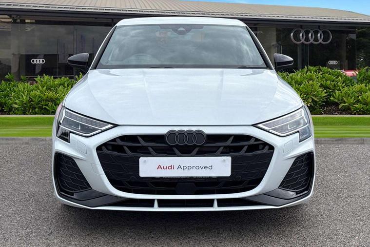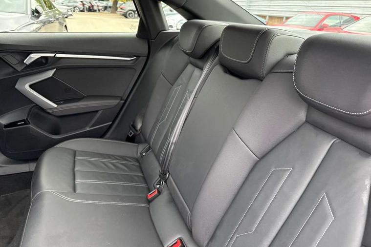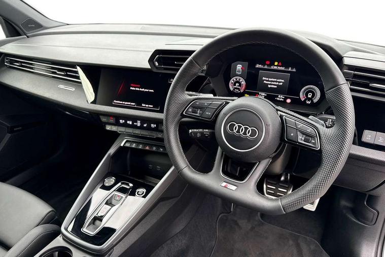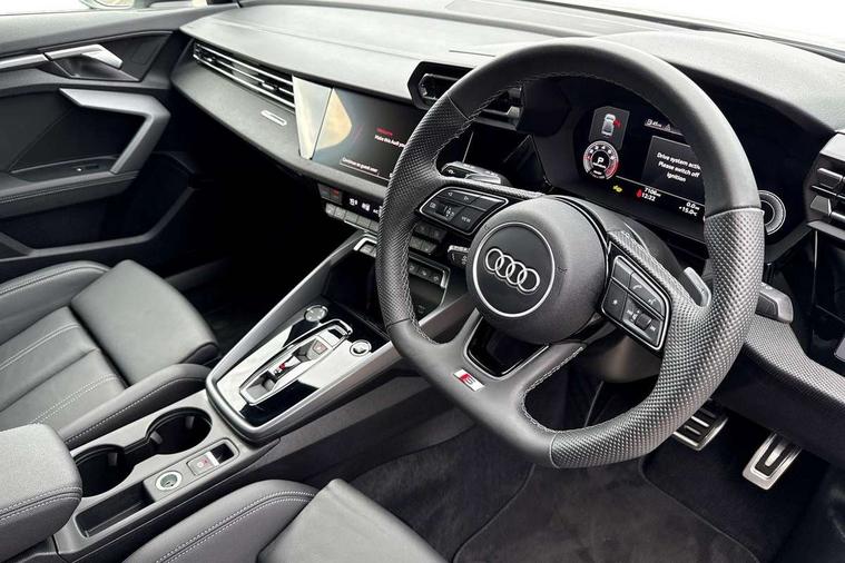 Adjustable speed limiter, Audi drive select, Audi smartphone interface with app store includes wireless Apple carplay, Android auto and Amazon alexa integration, Audi virtual cockpit plus - 12.3" full HD resolution dynamic digital instrument cluster, Automatic start/stop system with recuperation, Bluetooth interface, Camera based traffic sign recognition, Collision avoidance assistant, Cruise control, Distraction and Fatigue warning, e-Call (emergency call), Electromechanical power speed sensitive steering, Lane departure warning system, MMI Navigation Plus with high resolution 10.1" colour touch screen display, Park Assist with parking system Plus, Service indicator, Trip computer, Voice control system with natural language interaction, Sports suspension, Audi Phonebox light with wireless charging, Audi sound system - 10 loudspeakers including centre loudspeaker and subwoofer, DAB Digital radio, USB ports with charging function in the rear, Acoustic glass windscreen, Anthracite grey Audi rings (front and rear), Audi beam uses LEDs to project the Audi logo onto the ground as you exit your A3, Auto dimming frameless rear view mirror, Black accents front and rear bumpers, Black accents in the area of the Audi single frame grille, Black accents window trims strips, Electrically adjustable/heated/folding/auto dimming door mirrors with integrated LED indications + kerb view function for passenger side, Exterior model badging, Front electric windows, Heat insulating glass windscreen, Illuminated door sills with aluminium inserts at the front with S logo, LED 3rd brake light, LED daytime running lights, LED headlights with LED rear lights and dynamic rear indicators, Light and rain sensors, Privacy glass - dark tinted rear window, rear door and side windows, Rear boot, Rear electric windows, Rear side wing doors, 12V socket and storage compartment in front centre console, 3 seat bench in 2nd row, 3 spoke flat bottomed leather multifunction sport steering wheel with gear shift paddles, 3-zone deluxe automatic air conditioning, 4 way electrically adjustable lumbar support for driver and front passenger, 40/20/40 split folding rear seat bench, Black cloth headlining, Front and rear centre armrest in artificial leather, Front and rear centre armrest in artificial leather with contrasting stitching on armrests and instrument panel, Front and rear headrests, Front/rear floor mats, Heated front seats, Height and reach adjustable steering wheel, Manual boot compartment lid, Manually adjustable front seats, Rear cup holders, S badging on the steering wheel, Seat side bolsters, Single front passenger seat, Stainless steel pedals and front footrest in black, Twin leather upholstery with front sports seats S embossed logo, Aluminium interior elements pack - A3, Multi-coloured LED interior lighting package - A3 Black Edition, 3x3 point rear seat belts, Driver and front passenger airbag with passenger airbag deactivation, Electronic Stabilisation Control (ESC) including ABS, ASR and EDL, First aid kit with warning triangle and 2 safety vests, Front side airbags with head airbags and interaction airbag, Hill hold assist, Pre-sense front with pedestrian and cyclist detection, Seatbelt monitoring, Tyre pressure loss indicator, Anti theft alarm, Anti-theft wheel bolts, Electronically operated child locks, Immobiliser, Remote central locking with safelock, Inlays in black Impressum woven textile,