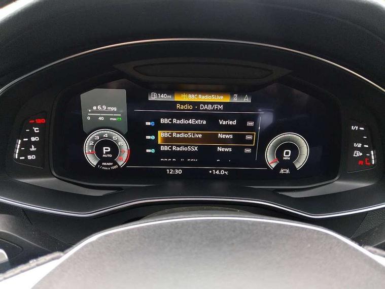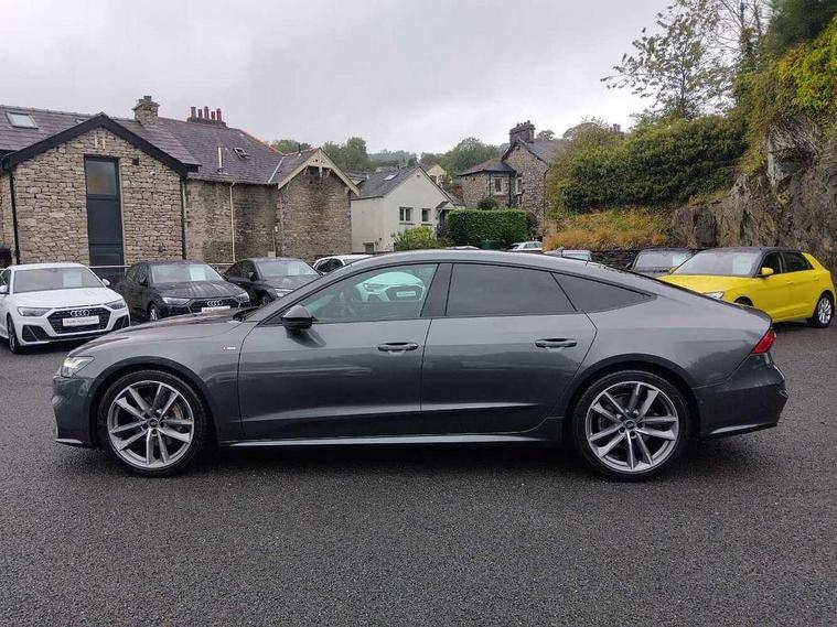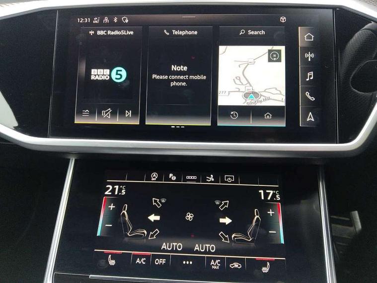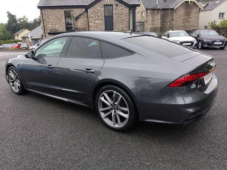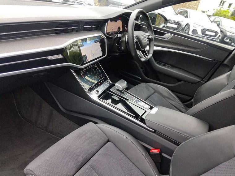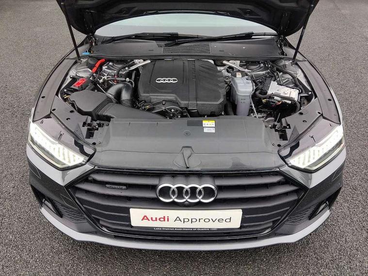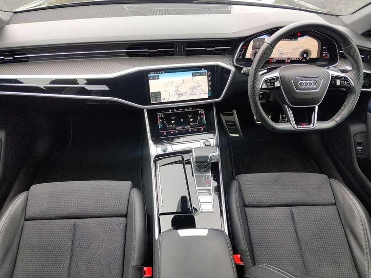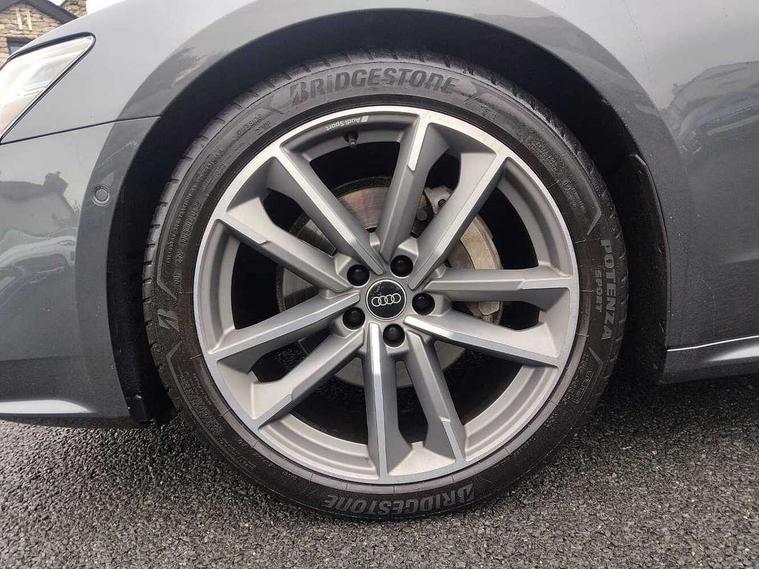 Audi connect safety and service (e-call), Audi connect with Amazon Alexa Integration, Audi drive select, Audi parking system plus - acoustic and visual park assist system for front and rear, Audi smartphone interface, Audi virtual cockpit - 12.3" high resolution LCD digital instrument cluster display, Automatic start/stop system with coasting functionality, Bluetooth interface, Colour driver's information system display, Electric boot lid release, Lane departure warning system, MMI nav plus with MMI touch + 10.1" and 8.6" HD haptic touch screen/3D city models/country information/online map/route info and personal route assist, Operating buttons in black, glass look with haptic feedback, Power operated tailgate, Progressive steering, Rear view camera, Service indicator, Voice control system, Sports suspension, Audi music interface - 2 USB ports with charger and data functions, Audi sound system with 6 channel amplifier, 180 watt amplifying capacity and 10 loudspeakers including subwoofer, Auxiliary input socket, DAB digital radio module, Coming/leaving home animations in front, Frameless auto dimming interior rear view mirror, Front and rear electric windows, Gloss black highlights on the exterior area of the Audi Single frame, Gloss black highlights on the front and rear bumpers, Gloss black highlights on the radiator grille, Gloss black highlights on the side windows trim strips, Headlight washers, Heat insulating darkened glass in side and rear windows, LED front indicators, LED Headlights, LED rear lights with dynamic rear indicators, Rain and light sensors, Rear side wing doors, Rear wiper, Retractable rear boot spoiler, S line air inlet design with inlay in high gloss black, S Line badge on front fender, S line badge on front grille, S Line Black rear diffuser with chrome inlays and rear grille, S Line side skirts, Signature LED daytime running lights, Third brake light, Towbar preparation, Windscreen with heat-insulating glass, 2 zone deluxe electronic climate control, 4-way electric lumbar support, 40/20/40 split folding 3 seater rear seat bench with rear centre armrest, Black cloth headlining, Electrically adjustable front seats - driver seat with memory, Front and rear headrests, Front centre armrest, Heated front seats, Height/reach adjust steering wheel, Illuminated door sill trims with S logo, Illuminated sun visors with vanity mirrors, ISOFIX child seat mounting and top tether in front and outer rear seats with front passenger airbag deactivation, Leather gear knob, Leatherette upper instrument panel and door shoulders, Luggage compartment floor, S line front and rear floor mats with contrast stitching, Single front passenger seat, Stainless steel pedals and foot rest, Tool kit and car jack, LED interior ambient lighting pack - A7, Non smoking pack - A7, 3 point seatbelts on all seats, Audi pre-sense front, Driver and passenger airbags, Electromechanical parking brake, Electronic stabilisation control including ABS, ASR and EDL, Extended pedestrian protection measures, Hill hold assist, Manual child lock in rear doors, Seatbelt monitoring, Tyre pressure warning light, Warning triangle and first aid kit, Anti theft alarm with tow away protection, Anti-theft wheel bolts and wheel loosening detection, Immobiliser, Keyless Go, Preparation for tracking system, Remote central locking, Carbon twill inlays, 20" 5 double arm design Audi sport cast aluminium high sheen matt titanium look alloy wheels,