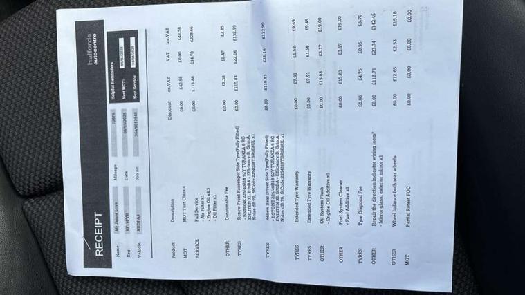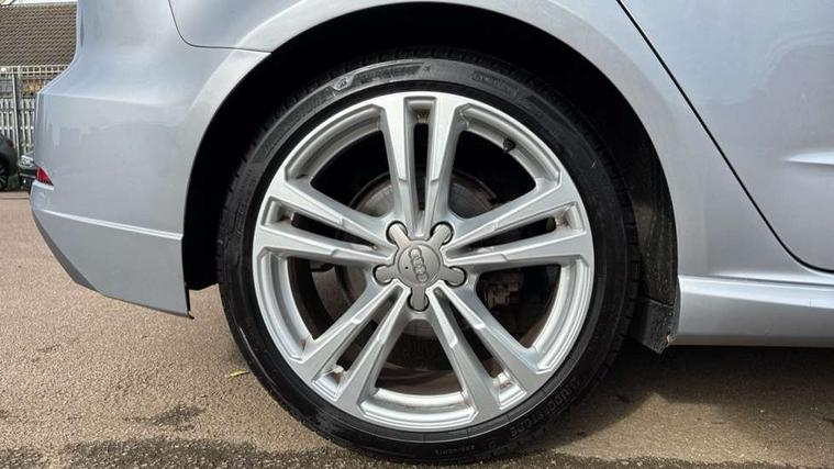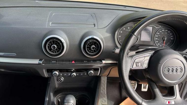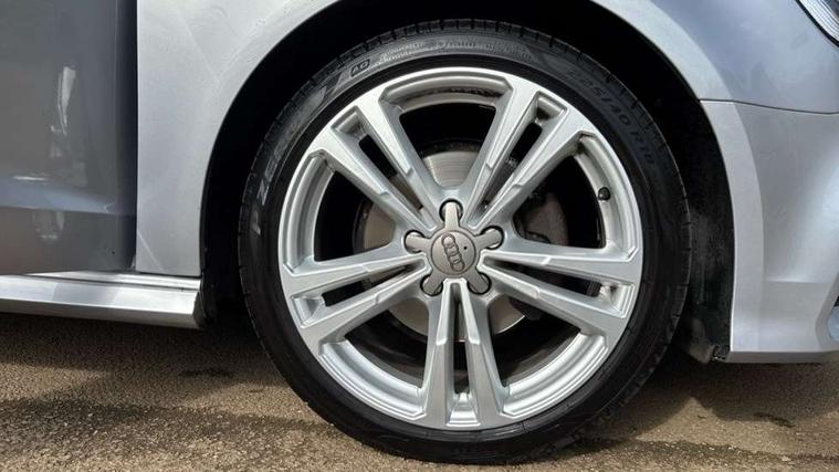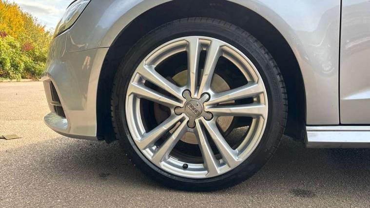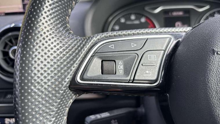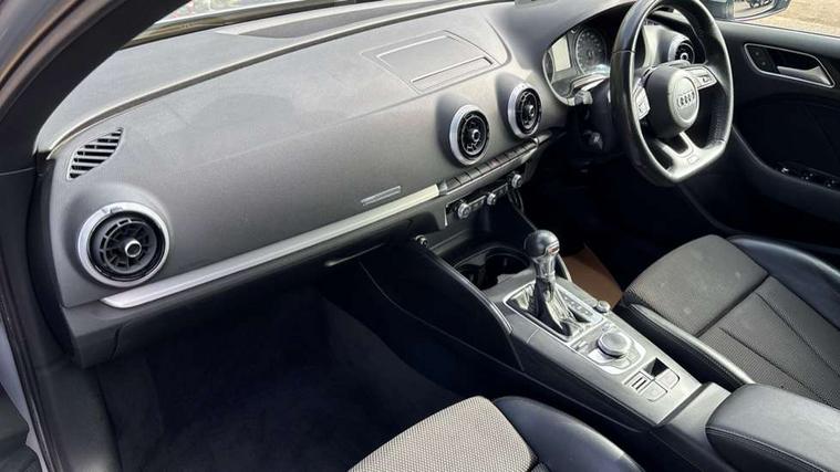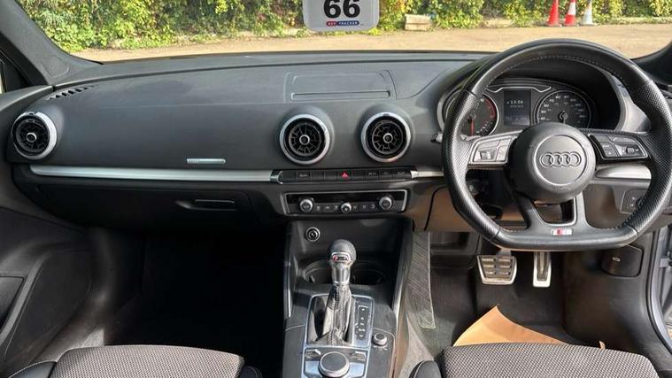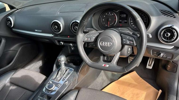 Audi connect, Audi drive select, Audi smartphone interface, Automatic start/stop system, Colour driver's information system display, Electro - mechanical power assisted steering, Mobile telephone preparation - bluetooth interface, SD card based satellite navigation system, Service interval indicator, Speed limit display, Voice control system, Voice recognition for navigation system, 2 USB interfaces and Aux-In jack, Audi music interface, CD player, DAB Digital radio, MMI radio plus with 7" colour MMI screen and MMI controller, Aluminium window trim, Auto dimming rear view mirror with light and rain sensors, Body colour door mirrors, Chrome exhaust tailpipes, Electric front windows, Electric rear windows, Electrically adjustable and heated door mirrors with integrated LED side indicators, Heated windscreen washer jets, LED daytime running lights, Matt black radiator grille, Rear wiper, S line badges on front wings, S Line body styling with front & rear bumpers and side skirts, radiator grille and rear diffuser insert, roof spoiler, Sport specific side air inlet grille and diffuser insert, 3 adjustable rear headrests, 4 lashing points to secure luggage, Adjustable front centre armrest, Black cloth headlining, Dual zone electronic climate control, Front and rear interior lights with delay, Front/rear floor mats, Glovebox light, Height and reach adjustable steering wheel, Illuminated door sill trims with S logo, Isofix child seat preparation for front passenger/outer rear seats inc passenger airbag deactivation, Stainless steel pedals, Storage compartments in doors side trims, centre console and under front drivers seat, LED interior light pack - A3/RS3, Non smoking pack - A3, Storage and luggage pack - A3/RS3, 3 point seatbelts on all seats, ABS/EBD, Active bonnet, Active front headrests, Airbags - front driver/passenger, front & rear side, curtain, drivers knee, ASR, EDL, Electromechanical parking brake, ESC - Electronic Stability Control + traction control, Front passenger airbag deactivation, Hill hold assist, Manual rear child locks, Multi-Collision braking, Seatbelt warning, Tyre pressure warning, Warning triangle and first aid kit, Anti theft alarm, Anti-theft wheel bolts, Remote control central locking, Thatcham category 1 alarm + immobiliser, Aluminium air vent surrounds, Aluminium trim elements, Matt brushed aluminium inlays, Tool kit, Tyre repair kit,