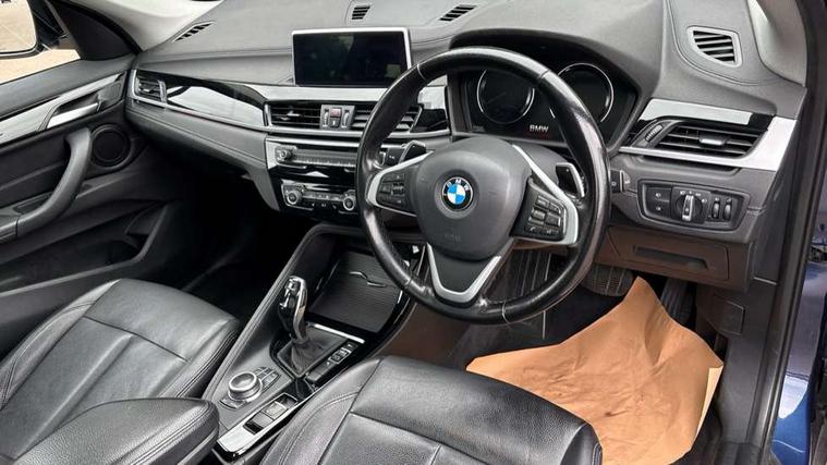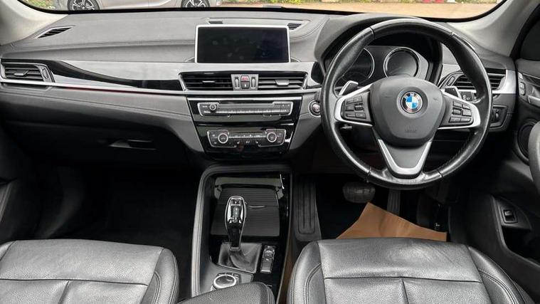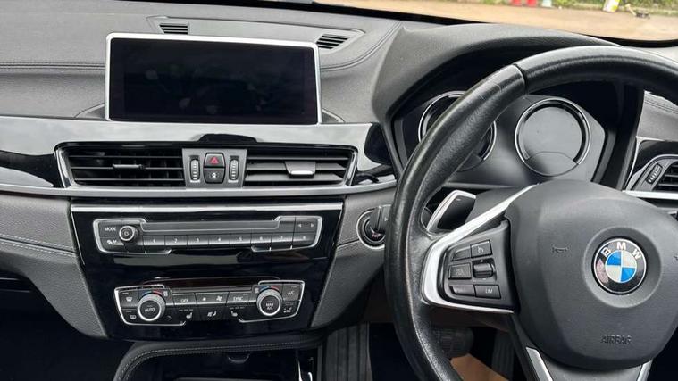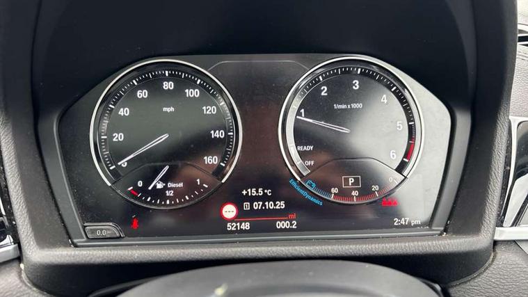 Ambient temperature display, Apple CarPlay, Arrow pointers, north up, direction of travel and perspective map displays, Attentiveness assist, Automatic tailgate opening, BMW ConnectedDrive, BMW Online services, BMW remote services, BMW Teleservices, Brake pad wear indicator in front and rear, Characteristic map controlled oil pump system, Front axle single joint with specific axle kinematics to minimise drive influences on steering + provide increased rigidity agile driving behaviour, Front/rear park distance control (PDC), Instrument cluster with Black optic display featuring superimposed dials and 5.7" colour display, Instrument cluster with speedometer with miles per hour read out, tachometer and fuel gauge, Integrated hard drive with map data updates via USB interface, Lights on warning by audio warning signal when ignition is switched off, On board computer, Operation by iDrive with direct selection buttons and 8 programmable buttons, Optimum shift indicator, Outside temperature gauge, Park assist system, Personal Profile - automatic lock when driving away selectable, Real time traffic information, Rigidly mounted rear subframe - Multi link construction with separate spring / damper configuration and excellent driving characteristics, Service interval indicator, Servotronic PAS, Tyre puncture warning system, 12V compressor with integrated sealant injection bottle and hose, Aluminium lightweight construction including crankcase, Anti-roll bars, Balancer shaft, Diesel particulate filter, DOHC valvetrain with two upper camshafts, Double VANOS, Drive performance control with ECO PRO comfort + sport mode, Eight speed sport automatic transmission, High precision injection, Incorrect fuelling protection, Performance Control, Standard suspension, Stop/start function, Twin tube gas filled shock absorbers with degressive characteristic curve, DAB Digital radio, Adjustable headlights, Aero curtain, Automatically dimming rear view mirror, BMW Icon design LED daytime driving lights, Body colour bumpers, Body colour door handles, Body colour door mirrors, Direction indicator side lights integrated exterior mirrors, Dynamic brake lights, Electric windows - front and rear, with open/close fingertip control, anti-trap facility and comfort closing, Electrically adjustable door mirrors with aspheric on driver side, convex on passenger side with integrated indicators, Exclusive front door sill finishers with BMW designation, Exterior mirrors - electrically folding with anti-dazzle, Follow me home headlights, Front air guide finished in black silver, Front air inlets in matt black with silver finisher matt, Front and rear bumper system, Front bumper underbody protection in silver matt, Green tinted heat protection glazing glass, Headlight beam throw control, Heated door mirrors, Heated windscreen washer jets, High level third brake light, Kidney grille with 14 chrome matt aluminium fronted with black matt sides vertical bars, LED direction indicator lights in headlight eyebrow, LED front fog lights, Lightweight engineering, Model designation, Rain sensor including auto headlights activation, Rear bumper underbody protection in black silver with silver matt insert, Rear fog lights, Rear window aerial, Rear window wash/wipe, Reversing light in rear light cluster, Roof mouldings in matt black, Shark fin antenna, Sill cover matt black with matt silver insert, Twin chrome exhaust tailpipes x2, Two eye face design on light, Visible VIN plate, Welcome lighting, 12v power point in centre console, 2 cup holders in front, 3 rear headrests, 3 spoke sport leather steering wheel, 40:20:40 split folding rear bench seat, Black door sill finishers with BMW designation, Boot light, Centre armrest in 20 degree part rear seat backrest, Child seat ISOFIX attachment for two outer rear seats and front passenger seat with anchorage points, Conditioned based service, Dakota leather upholstery with perforation and contrast stitching, Driver and front passenger heated seats, Driver/front passenger seat backrest back with luggage net, Driver/passenger sunvisors with ticket holders, Dual zone automatic air conditioning, Four grab handles integrated in roof linings, Front and rear side armrests integrated into door trim, Front centre armrest/sliding cover, Front centre interior light over interior mirror and rear centre automatic interior light when door is opened/ignition switched off or via remote key, Front/rear adjustable head restraints, Illuminated glovebox, Leather gearknob/gaiter/handbrake grip, Luggage area underfloor compartment, Luggage compartment access via recessed handle below tailgate, Luggage compartment lighting, Luggage compartment loading edge with stainless steel insert, Manually adjustment steering wheel column, Multifunction steering wheel, Rear coded belt buckles, Single turbo charger, Standing free front adjustable armrest and fixed in different positions, Steering wheel gearshift paddles, Velour floor carpets, Extended lights pack - X1, Extended storage package - X1, ABS/EBD, Audio/visual collision warning system, Automatic Stability Control (ASC), Battery safety cut-off, BMW emergency call, Brake drying, Brake energy regeneration, Braking readiness, Cornering brake control (CBC), Crash Sensor - activates hazard/interior lighting + unlocks doors, Driver/Front Passenger airbags, Driver/front passenger side airbags, Dynamic brake control, Dynamic stability control + (DSC+), Dynamic Traction Control - DTC, Electronic differential lock control (EDLC), Electronic parking brake, Front and rear head airbags, Front passenger airbag deactivation, Front seatbelt force limiters, Front ventilated disc brakes, Hill start assist, Pyrotechnically pre-tensioned front seatbelts, Rear disc brakes, Rear door child safety locks, Seatbelt security check for driver and front passenger, Side impact protection, Three point seat belts in all seats, Twin horns, Tyre pressure monitor, Warning triangle and first aid kit, Central lock