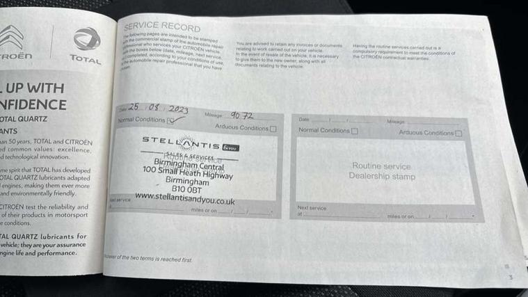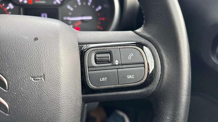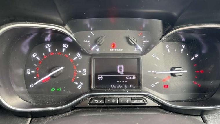 9" Touchscreen display, Citroen Connect Nav with 3D navigation, Coffee Break Alert, Cruise control with speed limiter, Driver instrument cluster including trip computer and rev counter with white text LCD display and white needles and chrome decor, eCall emergency call system, Lane departure warning system, Mirror screen with Apple CarPlay and Android auto, Outside temperature sensor, Tailgate, Traffic signs and speed limit recognition and recommendation, Variable assistance power steering, Voice recognition for radio, navigation and telephone features, Bluetooth hands free and media streaming with USB socket, Citroen connected DAB radio with 6 speakers, Steering wheel mounted controls for stereo and telephone, 3D effect LED rear lights, Automatic Eco LED headlights, Automatic lights and windscreen wipers, Black roof bars, Body colour painted door handles, Chrome chevrons front grille, Electric front windows + one touch + anti-pinch, Electric rear windows with one touch/anti-pinch, Electrically adjustable door mirrors, Electrically folding door mirrors, Fog lights integrated into front bumper, Front and rear body coloured bumpers, Heated door mirrors, Integrated roof spoiler, LED daytime running lights, LED third brake light, Painted door mirrors to match colour pack, Rear side wing doors, Rear wiper, Tinted rear windows and rear quarterpanel glass, Variable front intermittent wipers, 12V socket in rear of vehicle, 60/40 split folding rear seat, Automatic air conditioning, Boot light, Centre console with closed storage and chrome insert, Driver and front passenger cup holders, Driver and passenger sunvisor with courtesy mirror, Flex load/Pull out boot floor, Front and rear courtesy reading lights, Front and rear door storage, Front head restraints, Gloss black air vent surrounds and steering wheel insert, Glovebox with closable lid, Height adjustable driver's seat, Height and reach adjustable steering wheel, Manual handbrake with chrome insert, Passenger compartment headlight adjustment, Rear isofix mounting points (outside seats) with top tether, Row 2 - Three seats with individually adjustable head rests, Satin chrome interior door handles, Single front passenger seat, 3 point, height adjustable, pre tensioned front seatbelts, ABS with Electronic brakeforce distribution and Emergency braking assistance, Automatic illumination of hazard warning lights, Curtain airbags, Driver airbag, Drivers/passengers and rear seats unfastened seat belt warning, ESC (Electronic Stability Control), Front lateral airbags, Front passenger airbag, Front passenger airbag deactivation switch, Hill start assist function, Mono-tone horn, Rear door child safety locks, Three 3 point rear seatbelts, Tyre pressure monitor, Automatic door and boot locking when moving off with automatic unlocking in case of impact, Automatic locking of the vehicle (after 30 seconds if door or boot unopened), Immobiliser, Perimetric and volumetric anti theft alarm, Remote central locking + deadlocks, Vehicle locater function (headlights illuminate when button on key pressed), Compressor with puncture repair kit,