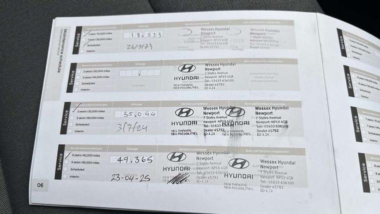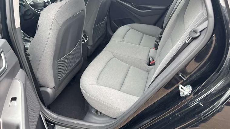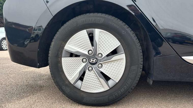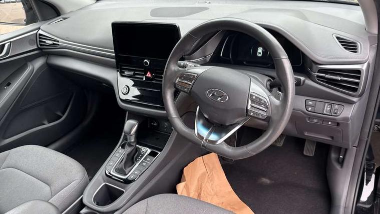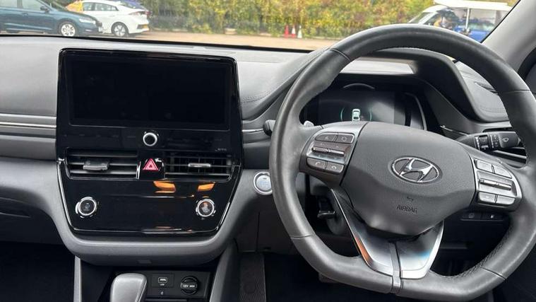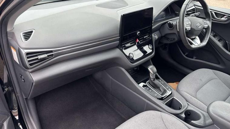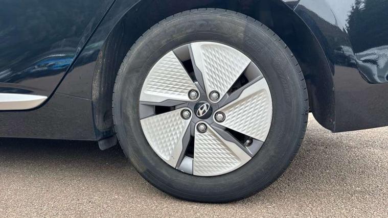10.25" touchscreen satellite navigation includes traffic messaging channel, mapcare, live services and bluelink, Apple car play/Android Auto, Bluetooth system, Cruise control, Driver attention alert system, E-call, Eco driving assistant system (ECO DAS), Electric power steering with variable drive modes, Gear lever drive mode selector, Lane departure warning system with lane keep assist - LKAS, Parking Brake - Foot Brake, Parking system with rear camera and guidance system, Rear parking sensor, Rear view monitor, Roadside assistance, Supervision cluster with 7" high resolution TFT LCD, Voice recognition, Windscreen washer fluid sensor and warning indicator, Wireless phone charging pad, DAB Digital radio, Infinity sound system includes 1 centre, 2 tweeters, 2 front, 2 rear and 1 ext amp, Radio data system, Steering wheel audio, phone and cruise controls, USB and aux connection in front, Active air flap radiator grille, Auto dimming rear view mirror, Automatic headlights with dusk sensor, Body colour bumpers, Body colour door handles with chrome inserts, Body colour door mirrors, Bodyside mouldings, Chrome door scuff with ioniq logo, Chrome finish window surround, Chrome radiator grille, Door mirror puddle lights, Electric adjustable door mirrors, Electric front windows - anti trap + one touch, Electric heated door mirrors, Heated rear windscreen, High beam assist, LED daytime running lights, LED Headlights, LED indicators in door mirrors, LED rear fog light, Positioning Lights - LED, Power folding door mirrors, Rain sensor, Rear electric windows, Rear LED lights, Rear roof spoiler with integrated LED brake light, Rear side wing doors, Rear wiper, Solar glass with windscreen shade band, Tinted windows, Two tone rear bumper, Variable front intermittent wipers, 12V power outlets, 3 rear seats, 60/40 split folding rear seat, Centre console storage, Centre interior light, Chrome interior door handles, Cloth upholstery, Driver seat height adjust, Driver's electric adjustable lumbar support, Driver/passenger sunvisors with illuminated vanity mirrors, Dual zone climate control, Front centre armrest with storage compartment, Front cupholder, Front head restraints with vertical and horizontal adjustment, Front seat and rear pockets, Heated front seats, Heated steering wheel, Illuminated luggage compartment, Interior mood lighting, Leather wrapped steering wheel, Luggage net, Manual height adjustable front passenger seat, Map and reading lights, Paddle shifter, Rear centre console with air vents, Single front passenger seat, Sunglasses holder, USB - driver arm rest (charging only), Vertical adjustment rear head restraints, 3x3 point rear seatbelts, Airbags - front, front side, curtain and drivers knee airbags, Anti-lock brake system (ABS), Autonomous emergency braking, Electronic stability control, Front passenger airbag deactivation switch, Hill start assist control (HAC), Manual child lock in rear doors, Regenerative braking system, Traction control, Tyre pressure monitoring system with individual tyre pressure display, Deadlocks, Immobiliser, Keyless smart entry with push button start, Remote central locking, 15" Design B alloy wheels, Tyre repair kit,