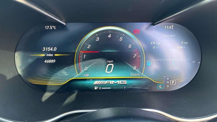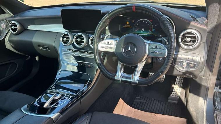 12.3" Active TFT crystal driver's instrument display, 2 stage speed sensitive sport steering, Active park assist with parktronic system, Attention assist, Bluetooth interface for hands free telephone, Collision prevention assist plus, Comand Online HDD Nav with media interface, radio/CD/DVD/MP3, 10.25 screen, linguatronic voice control, Cruise control with speedtronic variable speed limiter, DYNAMIC SELECT with a choice of driving modes (ECO, Comfort, Sport, Sport+ and Individual), Mercedes connect me with remote online, Multi function trip computer, Outside temperature gauge, Remote boot release, Service indicator (ASSYST), Smartphone integration with Apple CarPlay and Android auto, Stop/start system, Surround camera system, Wireless charging, AMG Ride Control sports suspension, Petrol Particulate Filter, 2 USB ports, Burmester surround sound system, DAB digital radio module, Mercedes Audio 20 radio/single CD, SD card slot, Adaptive brake lights, AMG front, rear apron and side skirts, AMG performance exhaust system, Auto dimming driver's door mirror, Auto dimming rear view mirror, Body coloured bumpers, Door sill panels with AMG lettering, Electric adjustable/heated/folding door mirrors, Electric panoramic glass sunroof, Electric windows one touch open/close, Green tinted glass, LED daytime running lights, LED Indicators, LED tail lights, LED third brake light, Multi beam LED headlights, Radiator grille with integral star and 2 louvres in matt iridium silver, Radio aerial in side window, Rain sensor windscreen wipers, Side windows surround in polished aluminium, V8 Bi-Turbo 4Matic badge on front wings, 2 cupholders in front centre console, 2 rear head restraints, 3 spoke flat bottom multi-function sports leather steering wheel in black with topstitching in red, 40:20:40 split folding rear seats, Ambient lighting, AMG floormats, Artico man-made leather dashboard and beltline with red contrast stitching, Artico man-made leather upper dashboard and beltlines with contrast stitching, Auto dual-zone climate control system, Auto Mercedes-Benz child seat recognition sensor, Door courtesy lamps, Electrically adjustable front seats, Front centre armrest with storage compartment, Front footwell illumination, Heated front seats, Height adjustable front seats, Illuminated front/rear door handle recesses, Illuminated glovebox, Isofix rear child seat fastenings, LED reading lights, LED rear reading lights, Sports pedals with stainless steel surfaces and rubber studs, Steering wheel audio controls, Steering wheel gearshift paddles, Sunvisors with illuminated vanity mirrors, Seat comfort pack - C Class, Stowage space pack - C Class, 2 rear seatbelts, 3 point automatic seatbelts, ABS, Active bonnet, Adaptive brake system, Brake calipers with AMG lettering + perforated brake discs, Crash sensor, Drivers knee airbag, Drivers pelvis airbag, Dual stage driver/passenger airbags, Electronic parking brake, Electronic stability control, Front and rear window airbags, Front seatbelt pretensioners, Front side airbags, Hill hold control, Hill start assist, Red seat belts, Sports braking system, Tyre pressure monitoring system, Warning triangle and first aid kit, Alarm system/interior protection/immobiliser, Automatic door locking, Chrome surround electric key, Keyless entry and keyless start, Remote central locking, Tow away protection, Artico man-made leather dashboard with contrast stitching,