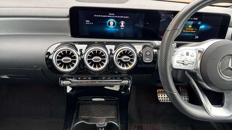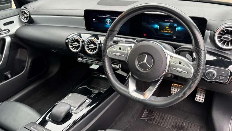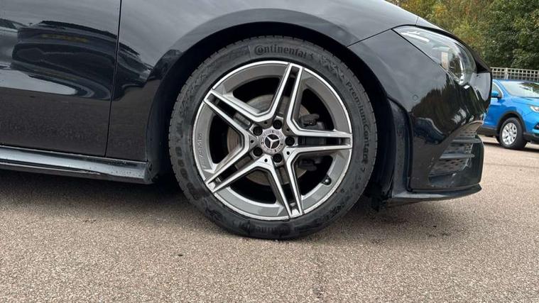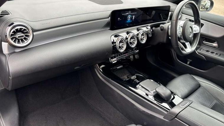 10.25 inch Instrument display with digital cockpit, 10.25 inch touchscreen central media display, Attention assist - Monitors steering behaviour and long journey fatigue, Bluetooth connection, Car wash mode, DYNAMIC SELECT with a choice of driving modes (ECO, Comfort, Sport and Individual), ECO start/stop function, Fluid level warning indicator for fuel, oil, coolant and washer fluid, Hard-disk navigation, Hey Mercedes Voice activation, Lamp failure indicator, MBUX augmented reality for navigation, Mercedes me connect including emergency call system, accident recovery, breakdown and maintenance management, Outside temperature gauge, Owners manual and service booklet in English, Pre-installation for Vehicle Monitoring, Pre-installation for Vehicle Setup, Pre-installation of private car share, Preinstallation for Mercedes Benz link, Radio aerial integrated into front and rear windshields, Service indicator (ASSYST), Smartphone integration with Apple CarPlay and Android auto, Traffic sign assist, Trip computer in multifunction display with current consumption indicator, Wireless charging, 7G-DCT 7 speed automatic transmission, Lowered comfort suspension, Rear axle multi-link, DAB digital radio tuner, MBUX multimedia system with DAB digital radio and touchpad including satellite navigation, Mercedes Benz advanced sound system (225 W) with 10 speakers, 1 central speaker, speakers on doors, a tweeter on door, one sub woofer + boost amplifier, USB (type C) ports (2) in stowage compartment and 1 in front of centre console, Adaptive brake lights, AMG body styling with AMG front apron and rear apron and visible exhaust tailpipe in chrome trim elements, AMG bodystyling side skirts, Body colour bumpers, Body colour door handles, Chrome beltline strips, Chrome weather strip, Diamond radiator grille pins in chrome with silver painted louvres and chrome insert, Electric panoramic sliding sunroof, Electric windows, Electrically adjustable and heated door mirrors with integrated LED indicators, Exhaust system with 2 Visible tailpipe trim elements and rear apron with trim in chrome, Headlamp assist automatic headlamp activation, Heated glass rear windscreen + timer control, High level LED third brake light, Integrated LED daytime running lights, Interior mirror with black reading lamps and frameless, LED tail lamp, Multibeam LED headlamps with adaptive highbeam assist plus, Privacy glass with dark tinting on rear side windows and rear window, Rain sensing windscreen wipers with two sensitivity settings, Rear fog lamp, Window line trim strip in chrome, 3 spoke flattened bottom nappa leather multifunction steering wheel with perforated leather in grip area, 40:20:40 split folding rear seat backrests, Air conditioning - Two zone thermotronic luxury automatic climate control with display, Air vents with surround in silver chrome, Automatic child seat recognition sensor, Black roof lining, Brushed stainless steel sports pedals with rubber studs, Electrically adjustable front memory seats including lumbar support, Floor mats with stitched AMG lettering, Front centre armrest with stowage, Galvanished gear shift paddles on steering wheel, Heated front seats, Illuminated glove compartment stowage, Illuminated Mercedes benz door sills with Mercedes Benz lettering, Interior lighting - 64 colour Ambient lighting, Luggage net on driver/front passenger seat backrest, Manually height and reach adjustable steering column, Rear armrest with two integral cup holders for drinks, Rear head restraints, Sport seats with fixed head restraints, Stowage compartment in centre console with retractable cover, Sunvisors with illuminated vanity mirrors, Touchpad on center console, Twin front cupholders, Two outer rear seat isofix and top tether child seat fixing points, Keyless go pack - CLA, Light and sight pack - CLA, Mirror pack - CLA, Parking package - CLA, Seat comfort pack - CLA, Active bonnet pedestrain safety measure which detects an impact and raises bonnet by 65mm, Adaptive brake assist with hold function and hill start assist, Anti-lock braking system (ABS), Black seat belts, Bonnet with power domes, Brake pad wear warning indicator, Childproof locks manually operated for rear doors and electrically operated for rear power windows, Crash responsive emergency lighting, Driver and front passenger head and sidebags, Driver and front passenger windowbags, Drivers knee airbag, Dual stage driver and front passenger airbags, Electric parking brake, Electronic stability programme with acceleration skid control, ESP curve dynamic assist, Front and rear seatbelt reminder, Front passenger seat occupancy sensor, Three point rear seat belts, Tyre pressure monitoring system, Warning triangle and first aid kit, Remote central locking and crash sensor with emergency opening function, Urban guard vehicle protection system with immobiliser and interior protection, Light aluminium with longitudinal grain interior trim, 18" 5 twin spoke design alloy wheels painted in titanium grey with high sheen finish, Summer tyres, Tirefit tyre sealant kit,