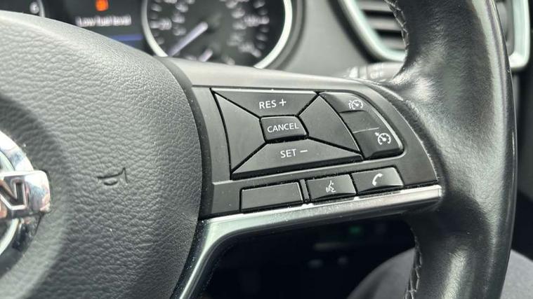 360 degree Intelligent around view monitor, Advanced drive assist display 5'' TFT coloured screen, Apple car play/Android Auto, Bluetooth connectivity, Cruise control + speed limiter, Electric speed sensitive power steering, Front parking sensors, Idle stop/start system, Intelligent park assist, Lane departure warning system, Nissan connect evo 7" touchscreen navigation and entertainment system, Normal or sport selectable steering, Outside temperature sensor, Premium Tomtom connected services, Push button starter, Rear parking sensors, Service interval indicator, Smartphone integration, Traffic sign recognition, Trip computer, Voice control system, Nissan chassis control (intelligent ride control, intelligent trace control, intelligent engine brake), 6 speakers, AM/FM radio, CD audio system, Aux-in socket, DAB Digital radio, Steering wheel mounted audio controls, USB port, Anti dazzle rear view mirror, Auto wipers, Body colour bumpers, Body coloured door handles, Body coloured door mirrors, Chrome window surround, Daytime running lights dip function when turn signal applied, Electric folding door mirrors, Electric front and rear windows with one touch illuminated window controls, Electrically adjustable door mirrors, Front fog lights, Halogen headlights, Heated door mirrors, High beam assist, Intelligent auto headlights, LED indicators in door mirrors, Matt silver roof rails, Privacy glass, Rear roof spoiler, Rear wiper with reverse link, Shark fin antenna, Signature LED daytime running lights, Silver rear styling plate, Underbody vortex generators, 2 X front 12v power sockets, 3 height adjustable rear headrests, 60/40 split folding rear seat, Ambient interior lighting, Ambient lighting around centre console, Bi-colour cloth upholstery, Boot lighting, Centre console storage box/armrest, Chrome interior door handles, Driver's seat manual height adjust, Dual zone climate control, Front and rear door pockets with bottle holders, Front and rear seat belt pre-tensioners with load limiters, Height adjustable front headrests, ISOFIX restraints on outer rear seats x2, Leather D shaped steering wheel, Leather gear lever, Leather knee pad, Luggage board system, Manual height adjustable passenger seat, Manual lumbar support on driver seat, Manual lumbar support on passenger seat, Monoform front sport seats with plastic backboard, Parcel shelf stow function under luggage board, Pollen filter, Rear armrest with 2 cupholders, Synthetic leather wrapped door handle with contrasting stitching, Tilt/telescopic adjustable steering wheel, Velour floor mats, Glass roof pack - Qashqai, 6 airbags - Driver, front passenger, curtain and side airbags, ABS, ESP, EBD and brake assist, Auto hold function, Child locks on rear doors, Electronic parking brake, Front and rear seat belt warning, Height adjustable front seatbelts, Hill start assist, Intelligent emergency braking with pedestrian recognition, Passenger airbag deactivation system, Three 3 point rear seatbelts, Tyre pressure monitoring system, Anti-theft immobiliser, Intelligent Key, Remote central locking, Thatcham Cat.1 alarm, Carbon graphite dash trim, 18" Two tone alloy wheels,