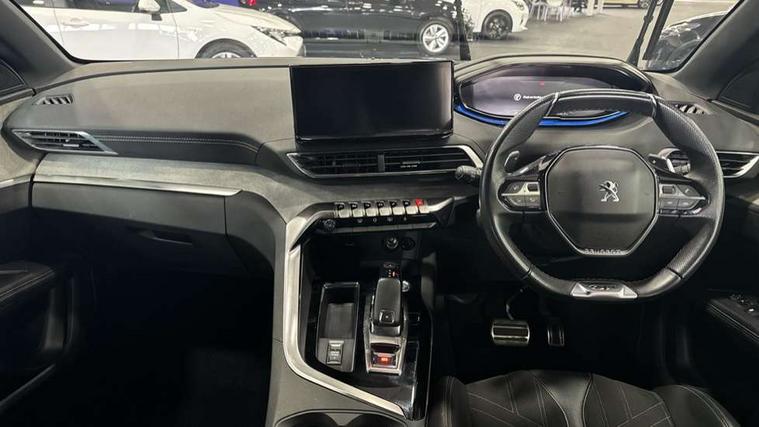 10" High Definition Capacitive Touchscreen, 3D connected navigation + voice control, Bluetooth telephone connection, Driving timer alert system, Extended traffic sign recognition, Exterior temperature gauge with frost alarm, Lane departure warning system, Mirror screen with Apple CarPlay and Android auto, Multi function trip computer, Passive blind spot monitoring without Steering correction, Peugeot i-cockpit with 12.3" headup digital instrumental panel, 8.0" capacitive touch screen and compact sports steering wheel, PEUGEOT SOS and assistance, Rear passenger USB charging sockets (x2) (type A), Speed limit recognition, Sports button, Dynamic stability control, Bi Tuner radio including DAB, USB socket, Automatic activation of hazard warning lights, Black diamond roof and nera black door mirror shells, Black rubber side window trim, Body colour door handles, Body coloured rear spoiler, Body protectors in black, Chrome front wing trim, Dark tinted rear side and tailgate windows, Electric folding door mirrors with exterior courtesy LED lighting, Electric front/rear windows with one touch/auto up/down, Electrically heated door mirrors, Fog Mode, Frameless electrochrome rear view mirror, Front windscreen wiper with magic wash cleaning system, Full LED headlights with static corner lighting and Daytime Running Light extension, Gloss black B and C pillar and aerodynamic deflector trim, Gloss black front bumper air scoops, Gloss black rear cluster connecting strip, GT emblem (front wings and tailgate), Headlights left on audible warning, Heated rear windscreen with integrated antenna, LED rear lights including reversing lights, scrolling indicators and PEUGEOT '3Claw Effect' light signature (with daylight function), LED rear number plate lighting, LED side indicator lights integrated into door mirrors, Rear windscreen wiper with auto activation when reversing, Twin exhaust effect trim, 2 cupholders in front centre console, 3 x 12V power sockets, 4 Grab handles retractable and damped, Aikinite stitching in armrest, gear lever and dashboard facia, Aluminium pedals, Automatic and dual zone diffusion air conditioning system, Blue ambient lighting for connecting zone, Blue ambient lighting to front door panels, central storage and cupholders, Brumeo fabric trimmed door armrests, Central front armrest with butterfly wing opening, Tramontane double stitching and illuminated storage compartment, Electric power steering with reach and rake adjustable steering column, Flocked front door pocket interior with blue ambient lighting, Flocked glovebox interior, Foldable front passenger seat, Footwell lighting, Front ambient lighting, Front interior light with reading spotlights (x2), row 2 interior light with reading spotlights (x2), Gear shift indicator, Illuminated glovebox, Illuminated vanity mirror, Isofix child seat fittings x 3 in the second row, LED interior lighting, Map pocket on front seat backs, Mistral floor mats with Aikinite contrast stitching, Mistral full grain perforated leather steering wheel with aikinite stitch detail and satin chrome 'GT' emblem, Rear ventilation system, Retractable parcel shelf, Roof lining and windscreen pillars in Mistral black, Satin chrome digital instrument panel and touchscreen trim, Satin chrome front door panel recess trim, Satin chrome interior door handles, Satin chrome scorpion's tail and toggle switch trim, Seatbelt not fastened audible and visual alert for front seats, Seatbelt unfastened on the move audible and visual alert for front and rear seats, Third row seats (can be stored under bootfloor or removed completely), Twin rear coat hooks, Children's pack - 5008, Drive Assist Plus Pack - 5008, Driver sport pack - 5008, Visibility pack - 5008, ABS + EBD + EBA, Adaptive driver and front passenger airbags including passenger airbag deactivation function, Electronic parking brake, ESP and ASR traction control with deactivation switch, Five 3 point rear safety belts, Front and rear curtain airbags, Front optimised safety headrests and rear retractable headrests (x3), height adjustable, Front side airbags, Front three point retractable seatbelts height adjustable with pre tensioners and force limiters, Front ventilated disc brakes, Hill start assist, Rear disc brakes, Rear three-point retractable seatbelts (x3) with pre-tensioners and force limiters in the outer rear seats, Two tone horn, Automatic door locking when moving off, Child lock control of rear doors and windows, Electronic code immobiliser, key operated exterior door lock from the left hand door, Keyless Start, Perimetric and volumetric alarm with lift and tilt sensor, Peugeot Open and Go System, Remote control central locking with two plip keys, Satin chrome dash trim,