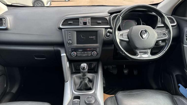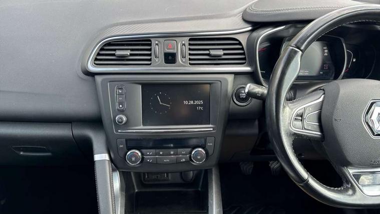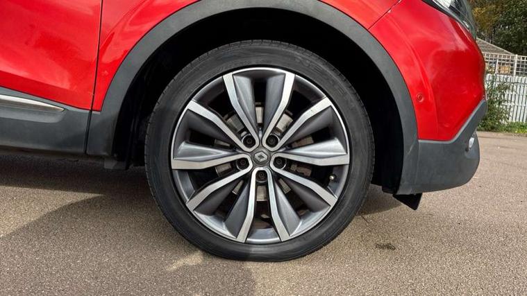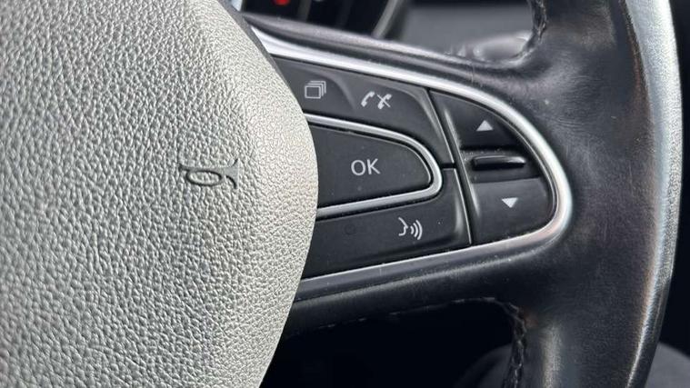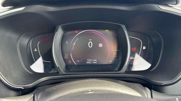 Bluetooth system, Cruise control + speed limiter, Door/boot open warning light, Eco mode, Exterior temperature gauge, Front and rear parking sensors, Oil level gauge, PAS, R-Link Multimedia system with 7" touch screen, satellite navigation and western European map, Rev counter, Traffic sign recognition, Trip computer, Visio system - lane departure and high beam assist, Diesel particulate filter, Bose Premium Audio system with 7 premium speakers + subwoofer, DAB Digital radio, Fingertip controls for audio system, USB connection, Automatic headlights and windscreen wipers, Body colour door handles, Body coloured bumpers, Bodyside mouldings with chrome inserts, Chrome exterior trim, Chrome window surround, Cornering front fog lights, Electric adjustable/heated/folding door mirrors, Electrochrome rear view mirror, Extra tinted glass in rear windows and tailgate, Fixed panoramic glass sunroof, Front and rear electric windows, Front skid plate, Front wipers with variable intermittent facility, Gloss black door mirrors, Heated rear windscreen, Integrated fuel filler cap, LED Headlights, Rear skid plate, Rear wiper, Roof rails, 12v power outlet - front, 3 height adjustable rear headrests, 60/40 split folding rear seat, Adjustable dashboard illumination, Air recirculation system, Centre rear armrest with cup holder, Driver's seat with lumbar adjustment, Driver/passenger reading lights, Driver/passenger sunvisors and illuminated vanity mirrors, Dual zone automatic climate control, Front centre armrest, Front courtesy lights, Front footwell illumination, Height adjustable front headrests, Height/reach adjust steering wheel, Illuminated boot, Isofix system on outer rear seats, Leather steering wheel, One touch easy folding rear seating system, Pollen filter, Rear courtesy lights, Rear passenger heating ducts, Variable boot floor, ABS/EBD, Brake assist function, Driver/passenger 2 stage auto adaptive airbags, Electronic parking brake, ESP + Traction control + Understeer control, Front and rear curtain airbags, Front lateral airbags, Front seat belts warning, Height adjustable front seatbelts, Hill start assist, Passenger airbag deactivation system, Rear seatbelt warning indicator, Three 3 point rear seatbelts, Traction control, Tyre pressure monitor, Deadlocks, Hands free Renault card, Insurance approved Cat 1 alarm system, Insurance Approved Immobiliser, RAID (Renault Anti-Intruder Device) with automatic door locking, Remote central locking, 19" alloy wheels, Tyre inflation kit,