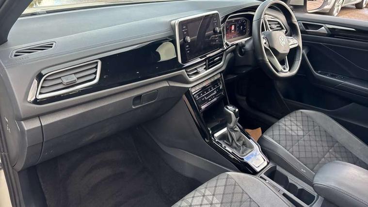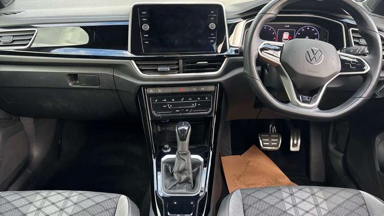 10.25" Digital cockpit pro, Bluetooth mobile phone interface, Driver alert system with fatigue detection, Driver tips and journey analysis, Emergency call service, Lane keeping system Lane Assist, Modified key software - reduce switch off time for key status change to Long no motion, Online services, Park assist including front and rear parking sensors, Service interval indicator, Tailgate/trunk lid release from outside, Think blue trainer driver tips and journey analysis, Warning sound and light for front seatbelts unfastened, Wireless app connect, Battery regeneration during braking, Start/stop function with battery regeneration, Diversity antenna for FM reception, Front and rear 6 speakers, Music playback - MP3, WMA and AAC files, Premium USB cable in choice of either Apple or Android smartphone compatibility, SD card slot, Simultaneous pairing of 2 compatible mobile devices, Title and cover art display, We Connect and We Connect Plus functionality, 3rd brake light, Auto dimming interior rear view mirror, Automatic hazard lights activation under emergency braking, Automatic headlight control with LED separate daytime running lights with coming/leaving home function, Extended roof spoiler, Exterior mirrors aspherical on driver side, convex on front passenger side, External USB type C socket and charging sockets, Front windscreen wiper with intermittent wipe and 4 position delay, Heated rear window, LED Plus headlamps, LED rear combination lamps, LED rear number plate lights, LED tail lamp rear comination lamps, Power windows with comfort operation and circuit breaker, R-Line design body coloured bumpers, Rain sensor, Rear exhaust tailpipe, Rear fog light on one side and reversing lights on both sides, Rear side wing doors, Rear wash/wipe with intermittent wipe setting, Remote electrically foldable door mirrors, puddle lights and reverse activated passenger's door mirror, 12V power socket in centre console, 3 rear head restraints, 3 seat bench in 2nd row, 4 load lashing points in luggage compartment, Air care climatronic air conditoning system with active combination filter and 2-zone temperature control, Black roof lining, Chrome plated radiator grille inserts, air vent surrounds and light switch surrounds, Door and side trim panel with leatherette insert, Drawer under drivers seat, Front + rear carpet mats, Front centre armrest, Front cupholders x 2, Front footwell illumination, Front reading light, Front scuff plates with R logo, Instrument lighting, white adjustable panel illumination, Interior ambient lighting and surround lighting, Interior light delay, Isofix child seat preparation, Leather gearshift handle, Load-through provision with cup holder when folded down ('Unsplit rear seat bench, split folding backrest, with centre armrest), Luggage compartment lighting, Single front passenger seat, Stainless steel pedals, Storage compartment in left and right luggage area, Storage compartment in rear doors, Storage compartments in driver and front passenger doors, Sunvisors with illuminated vanity mirrors, Variable boot floor, height adjustable and removable, Driver assistance pack without proactive passenger protection - T-Roc, 3 point height adj front seatbelts + pretensioners, 3 point seatbelts in outer rear with ECE label, ABS, Child locks on rear doors, Driver and front passenger airbag with front passenger airbag deactivation, Driver and front passenger safety-optimised head restraints, Drivers seatbelt reminder, Electronic parking brake, Electronic Stability Control (ESC) inc EDL (Electronic Differential Lock) and ASR (Traction Control), Front and rear passengers curtain airbag system including front side airbags, Front assist with city emergency braking and pedestrian monitoring, Front seat side impact airbags, Hill start assist, Predictive pedestrian protection, Rear disc brakes, Single tone horn, Tyre pressure loss indicator, Volkswagen roadside assistance, Alarm with interior protection, Anti-theft alarm system with interior monitoring, backup horn, and towing protection, Remote central locking with SAFELOCK, radio remote control with 2 remote control folding keys, Trims for alloy wheels,