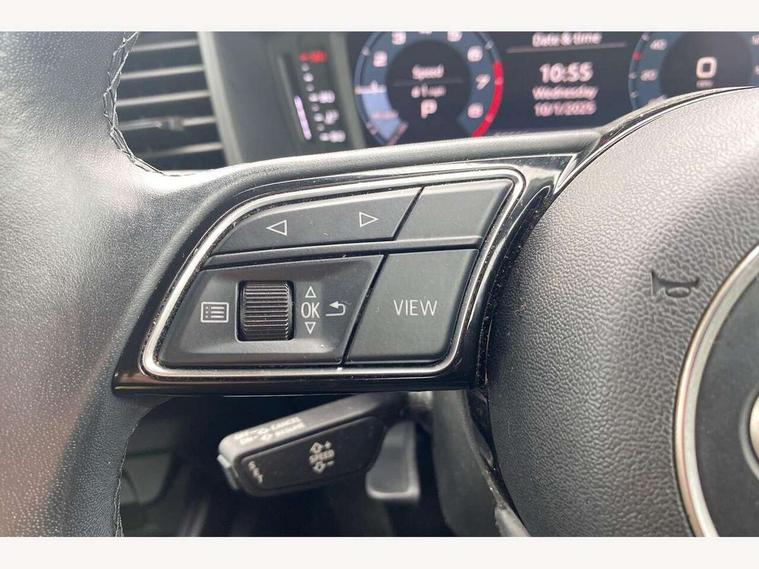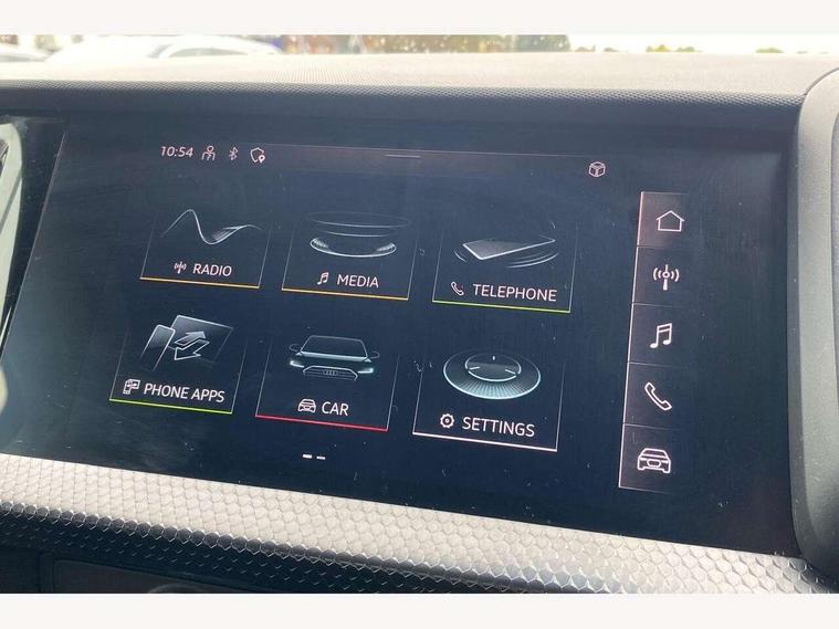 10.25" Digital instrument cluster display classis style instrument dials + speed, odometer, time, outside temperature, telephone menu + fuel level warning, Audi smartphone interface with connect compatible smartphone via USB directly MMI display + Nav, music, third party apps controlled via MMI controller, Automatic start/stop system, Bluetooth interface, Driver's information system, Electromechanical power steering, Emergency e-call, Emergency services call system, Lane departure warning system, Service interval indicator, Speed limiter, Voice control system, Washer fluid level indicator, Dynamic suspension, 1 x SDXC card reader, 2 x USB type C connection points, 6 passive loudspeakers, DAB Digital radio, MMI radio plus with 8.8" colour MMI display screen and MMI touch, Auto dimming rear view mirror, Body coloured bumpers, Body coloured door mirrors, Electric front and rear windows, Electrically adjustable, heated, folding door mirrors with integrated LED side indicator, Front side air inlets with front spoiler lip and rear diffuser in matt black grained, Heat insulating glass windscreen and side windows, Heated rear windscreen, High level LED brake light, LED headlights with LED rear lights + dynamic rear indicators + headlight adjustment and high beam, turning light + LED daytime running lights, Radiator grille in matt black, Rain and light sensors, Rear fog lights, Rear side wing doors, Rear wing door, Rear wiper, 12V socket in centre console with two cup holders, 3 rear seats with headrests, 3 seat bench in 2nd row, 3 spoke leather multifunction plus steering wheel, 40:60 Split folding rear seat or folded fully, Air vents, door handle recesses and centre console in black, Delta cloth upholstery, Driver and passenger seat with manual height adjust with forward and backwards adjustment, Front head restraints, Front passenger seat, Front/rear floor mats, Height and reach adjustable steering wheel, ISOFIX child seat mounting for front passenger and outer rear seats including top tether attachment point of outer rear seats, Leather gear knob with aluminium trim, Leatherette handbrake grip, Luggage compartment light with front and rear reading lights, Manual air conditioning, Titanium grey cloth headlining, Luggage compartment pack - A1, 3x3 point rear seatbelts, Audi pre-sense front with pedestrain and cyclist recognition, Brake assist function, Driver and front passenger airbag with front side and head airbags, Electronic Stability Control including ABS, EBD, ASR and EDL, Front passenger airbag deactivation switch, Hill hold assist, Manual rear child locks, Seatbelt height adjustment for front seats, Seatbelt monitoring, Tyre pressure warning light, Warning triangle and first aid kit, Anti theft alarm, Anti theft wheel bolts and loose wheel warning, Immobiliser, Remote central locking with 2 foldaway keys, Black inlays polygon structure, 15" 5 arm design alloy wheels,