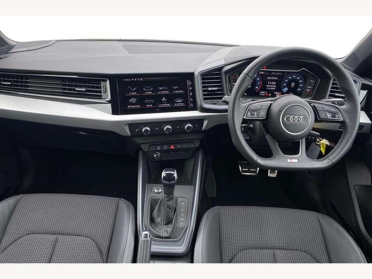 10.25" Digital instrument cluster display classis style instrument dials + speed, odometer, time, outside temperature, telephone menu + fuel level warning, Advanced driver attention and drowsiness monitor, Audi connect emergency call and service, Audi remote connect and control, Audi smartphone interface, Bluetooth interface, Camera based traffic sign recognition, Cruise control, Driver's information system, Electromechanical power steering, Lane departure warning system, Rear parking sensor, Service interval indicator, Speed limiter, Start stop system with recuperation, Voice control system, Washer fluid level indicator, Sports suspension, 2 x USB type C connection points, 6 loudspeakers, DAB Digital radio, MMI radio plus with 10.1" colour MMI display screen and MMI touch, Auto dimming rear view mirror, Black side skirts, Body coloured bumpers, Door sill trims with aluminium inlays and logo, Electric front and rear windows, Electrically adjustable, heated, folding door mirrors with integrated LED side indicator, Front side air inlets in grained matt black and C frame in anthracite black, Front wing badges, Headlight cleaning system, Heat insulating glass windscreen and side windows, Heated rear windscreen, High level LED brake light, LED daytime running lights, LED headlights with range control LED rear lights + dynamic rear indicators, Privacy glass, Radiator grille and rear diffuser in matt anthracite black, Radiator protective grille frame in matt aluminium silver, Rain and light sensors, Rear fog lights, Rear side wing doors, Rear wiper, Side front spoiler lips in grained matt black, 12V socket in centre console with two cup holders, 3 rear seats with headrests, 3 seat bench in 2nd row, 3 spoke flat bottomed multi-function plus leather steering wheel with S badging, grips in preforated leather, contrast stitching and paddle shift, 40:60 Split folding rear seat or fully collapsed, Black cloth headlining, Front and rear velour black floor mats with contrast stitching in fine silver, Front head restraints, Front passenger seat, Height and reach adjustable steering wheel, Interior lighting includes roof module, front and rear reading lights and right luggage compartment lighting, ISOFIX child seat mounting for front passenger and outer rear seats including top tether attachment point of outer rear seats, Leather gear knob with aluminium trim, Leather handbrake grip, Manual air conditioning, Manual height adjustable for driver and front passenger seat, Manually adjustable lumbar support in front seats, Stainless steel pedals, Ambient lighting package - A1, Black styling pack - A1 Sportback Black Edition, Luggage compartment pack - A1, 3x3 point rear seatbelts, Audi pre-sense front with pedestrain and cyclist recognition, Brake assist function, Driver and front passenger airbag with front side and head airbags, Electronic Stability Control including ABS, EBD, ASR and EDL, Front passenger airbag deactivation switch, Hill hold assist, Manual rear child locks, Seatbelt height adjustment for front seats, Seatbelt monitoring, Tyre pressure loss indicator, Warning triangle and first aid kit, Anti theft alarm, Anti theft wheel bolts, Immobiliser, Remote control key with safelock, Aluminium trim for control switches, air vents and digital instrument cluster, Black dashboard, Silver grey inlays polygon structure in diamond paint finish, Structured grey accent surfaces insert of air vents, interior door handle recesses and centre console in quartz paint finish,