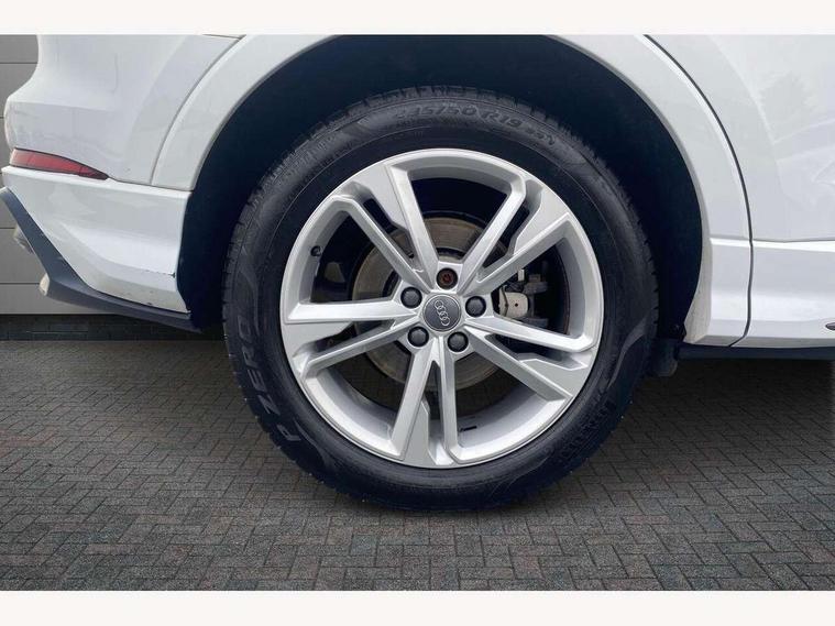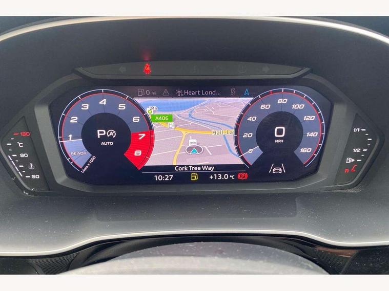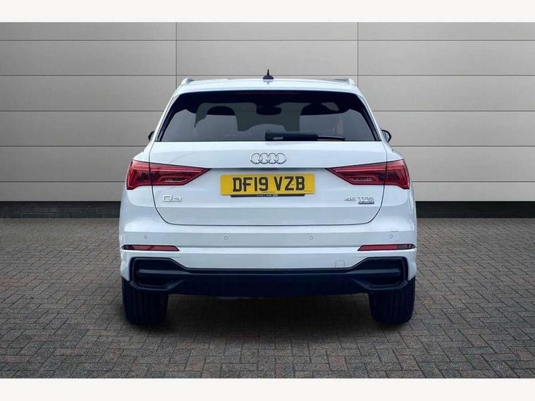 Audi connect safety and service (e-call), Audi drive select, Audi lane departure warning, Audi side assist, Audi smartphone interface, Bluetooth interface, Camera based traffic sign recognition, MMI navigation plus with MMI touch, Power opening/closing tailgate, Progressive steering, Rear parking sensors, Service interval indicator, Stop/start system, Voice control system, Sports suspension, 1 x USB type C and 1 USB type A charging points, 6 speakers, DAB digital radio module, Acoustic windscreen, Aluminium roof rails, Aluminium window trim, Auto dimming rear view mirror, Body coloured bumpers, Diffuser in matt Platinum grey, Electrically adjustable and heated door mirrors with integrated LED side indicators, Front and rear electric windows, Front fog lights, Front side air inlets in matt platinum grey, Front spoiler blade in matt platinum grey, Grille vertical bars in aluminium silver/Matt, High gloss black finish B and C pillars, LED headlights with LED daytime running lights and dynamic rear indicator, LED rear lights, Privacy glass, Rain and light sensors, Rear diffuser strip in matt titanium black, S Line badge on wings, S Line front and rear bumpers, Side skirt insert in matt Platinium grey, Titanium black radiator grille, 12V socket in rear centre console, 40:20:40 split folding rear bench seat, Adjustable rear seat bench/backrest with centre armrest and cupholder, Aluminium door sill trims, Black cloth headlining, Dual zone climate control, Front and rear black floor mats with contrast stitching in rock grey, Front and rear headrests, Front centre armrest with storage compartment and angle adjustment, Illuminated door sill trims with S logo, ISOFIX child seat mounting and Top Tether with front passenger airbag deactivation, Manual front seats with height adjustment, Perforated leather gearknob, Stainless steel luggage compartment sill finisher, Stainless steel pedals, Non smoking pack - Q3, 3x3 point rear seatbelts, 6 airbags - Driver, front passenger, curtain and side windows, Electrically operated child locks on rear doors, Electromechanical parking brake, Electronic stabilisation control including ABS, ASR and EDL, Hill hold assist, Pre sense basic, Seatbelt monitoring, Tyre pressure warning, Warning triangle and first aid kit, Anti theft alarm, Anti theft wheel bolts, Audi pre-sense front with pedestrain and cyclist recognition, Remote central locking, Dark matt brushed aluminium inlay, MMI touch colour display in gloss black with aluminium surround,