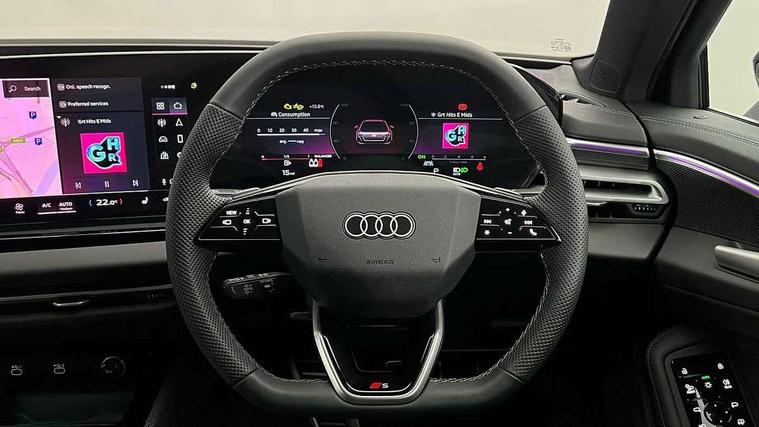 Adaptive cruise control, Advanced driver attention and fatigue montior, Audi application store, Audi assistant, Audi connect emergency call and service, Audi drive select, Audi smartphone interface, Audi virtual cockpit plus with 11.9" OLED colour display, Automatic start/stop system with coasting functionality, Camera based traffic sign recognition, Intersection assist, Lane departure warning, MMI navigation plus with high resolution 14.5" OLED touchscreen colour display, Park assist plus, Parking system plus with 360 display, Progressive steering with servotronic, Rear view camera, Swerve assist and turn assist, Traffic sign based speed limiter, Sports suspension lowered by 20mm, 2 USB-C ports in both the front and rear, Audi sound system impressive sound with 10 loudspeakers including centre speaker and subwoofer, 6-channel amplifier with a total output of 180 watts, DAB digital radio reception, Smartphone compartment with wireless charging, Aluminium window trims, Auto dimming rear view mirror, Body colour door mirrors, Door mirrors - electrically adjustable, heated, folding and auto dimming on both sides, Front and rear electric windows, Front door sill trims with aluminium inlays, illuminated with 'S' logo, High beam assist, LED headlights Plus incl. digital daytime running lights, turning light, all-weather light, motorway light, manouevring light and intersection light, LED rear lights pro incl. dynamic rear indicators and illuminated light strip with animated coming and leaving home function, LED third brake light, Privacy glass, Rear and side windows with heat insulating glass, Rear boot, Rear side wing doors, S Line badges on the front wings, S line bumpers, radiator grille and diffuser in phantom black and diffuser insert in matt anthracite, White rhombus logo projection light in exterior mirrors, Windscreen with acoustic glazing, 3 rear headrests, 3 seat rear bench, 3 spoke leather steering wheel with multi-function buttons with touch control, flattened on top and bottom, with S badging and contrast stitching, 3-zone automatic climate control, 40:20:40 split folding rear seat bench with centre armrest and cup holders, Comfort front centre armrest, Front and rear floor mats, Front seats with manual adjustment for position and 4-way electric lumbar support, Front sport seats with integrated headrest and S embossed logo, Headlining in black cloth, Heated front seats, i-Size child seat mounting on the front passenger side and outer rear seats, i-Size and top tether on the outer rear seats, Luggage compartment lid, electrically opening and closing, Manual steering column height and depth adjustment, Single front passenger seat, Stainless steel pedals and footrest, Steering wheel grips in perforated leather and shift paddles, Ambient lighting package plus - A5, 3x3 point rear seat belts, Driver airbag, Electric child safety locks, First aid kit with warning triangle and vests, Front emergency brake assist, Front passenger airbag, Front passenger airbag deactivation, Front side airbags with head airbag system and front interaction airbag, Hill hold assist, Seat belt monitoring with rear seat occupant reminder, Tyre pressure loss indicator, Anti theft alarm, Anti-theft wheel bolts, Keyless Go, Accent surfaces and control buttons in gloss black, Black dashboard with contrast stitching, Inlays in matt brushed aluminium with linear embossing, anthracite, Softwrap in leatherette with contrast stitching, Upper and lower interior elements in leatherette, Tyre repair kit,