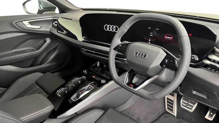 Adaptive cruise control, Advanced driver attention and fatigue montior, Audi application store, Audi assistant, Audi connect emergency call and service, Audi drive select, Audi smartphone interface, Audi virtual cockpit plus with 11.9" OLED colour display, Automatic start/stop system with coasting functionality, Camera based traffic sign recognition, Intersection assist, Lane departure warning, MMI navigation plus with high resolution 14.5" OLED touchscreen colour display, Park assist plus, Parking system plus with 360 display, Progressive steering with servotronic, Rear view camera, Swerve assist and turn assist, Traffic sign based speed limiter, Sports suspension lowered by 20mm, 2 USB-C ports in both the front and rear, Audi sound system impressive sound with 10 loudspeakers including centre speaker and subwoofer, 6-channel amplifier with a total output of 180 watts, DAB digital radio reception, Smartphone compartment with wireless charging, Aluminium roof rails, Aluminium window trims, Auto dimming rear view mirror, Body colour door mirrors, Door mirrors - electrically adjustable, heated, folding and auto dimming on both sides, Front and rear electric windows, Front door sill trims with aluminium inlays, illuminated with 'S' logo, High beam assist, LED headlights Plus incl. digital daytime running lights, turning light, all-weather light, motorway light, manouevring light and intersection light, LED rear lights pro incl. dynamic rear indicators and illuminated light strip with animated coming and leaving home function, LED third brake light, Privacy glass, Rear and side windows with heat insulating glass, Rear side wing doors, Rear wash/wipe, S Line badges on the front wings, S line bumpers, radiator grille and diffuser in phantom black and diffuser insert in matt anthracite, White rhombus logo projection light in exterior mirrors, Windscreen with acoustic glazing, 3 rear headrests, 3 seat rear bench, 3 spoke leather steering wheel with multi-function buttons with touch control, flattened on top and bottom, with S badging and contrast stitching, 3-zone automatic climate control, 40:20:40 split folding rear seat bench with centre armrest and cup holders, Comfort front centre armrest, Front and rear floor mats, Front seats with manual adjustment for position and 4-way electric lumbar support, Front sport seats with integrated headrest and S embossed logo, Headlining in black cloth, Heated front seats, i-Size child seat mounting on the front passenger side and outer rear seats, i-Size and top tether on the outer rear seats, Luggage compartment lid, electrically opening and closing, Manual steering column height and depth adjustment, Single front passenger seat, Stainless steel pedals and footrest, Steering wheel grips in perforated leather and shift paddles, Ambient lighting package plus - A5, 3x3 point rear seat belts, Driver airbag, Electric child safety locks, First aid kit with warning triangle and vests, Front emergency brake assist, Front passenger airbag, Front passenger airbag deactivation, Front side airbags with head airbag system and front interaction airbag, Hill hold assist, Seat belt monitoring with rear seat occupant reminder, Tyre pressure loss indicator, Anti theft alarm, Anti-theft wheel bolts, Keyless Go, Accent surfaces and control buttons in gloss black, Black dashboard with contrast stitching, Inlays in matt brushed aluminium with linear embossing, anthracite, Softwrap in leatherette with contrast stitching, Upper and lower interior elements in leatherette, Tyre repair kit,