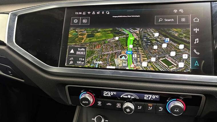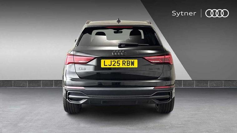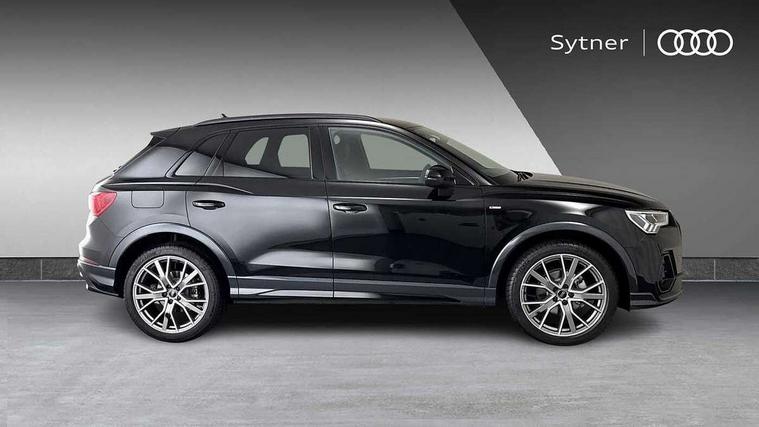 Amazon alexa Integration, Audi connect safety and service, Audi drive select, Audi lane departure warning, Audi smartphone interface includes wireless Apple carplay/Android Auto, Audi Virtual Cockpit - 10.25" display, Bluetooth interface, Camera based traffic sign recognition, Distraction and Fatigue warning, Legal emergency call, MMI Navigation Plus with high resolution 10.1 inch touchscreen colour display, Power operated tailgate, Progressive steering, Service interval indicator, Start stop system with recuperation, Voice control system with natural language interaction, Sports suspension, 2 USB-C ports with charge and data functions, 6 passive loudspeakers, DAB digital radio module, Acoustic windscreen, Anthracite black radiator grille, Audi Beam uses LEDs to project the Audi logo onto the ground as you exit your Q3, Auto dimming door mirrors, Auto dimming frameless rear view mirror, Black roof rails, Electrically folding, adjustable and heated door mirrors with integrated LED side indicators and kerb view function for passenger side, Front and rear electric windows, Front fog lights, Grille vertical bars in aluminium silver/Matt, High gloss black finish B and C pillars, LED Dynamic rear indicators, LED headlights with LED daytime running lights, LED rear lights, LED third brake light, Privacy glass dark tinted rear and rear-side windows (from B-pillar backwards), Rain and light sensors, Rear diffuser grille in grained matt black, Rear diffuser strip in matt anthracite black, Rear side wing doors, Rear wiper, S line bumpers in contrasting Manhattan grey, Variable front intermittent wipers, 12V socket in rear centre console, 3 seat bench in 2nd row, 40:20:40 folding with manual adjustment for 60:40 forwards/backwards position and backrest angle, Adjustable rear seat bench/backrest with centre armrest and cupholder, Black carpet mats, Black cloth headlining, Dual zone electronic climate control, Electric lumbar support, Front and rear black floor mats with contrast stitching in rock grey, Front and rear headrests, Front centre armrest, Height and reach adjustable steering wheel, Illuminated door sill trims with S logo, ISOFIX child seat mounting for front passenger with airbag deactivation and outer rear seat including top tether attachment point for outer rear seats, Luggage compartment sill protection in stainless steel, Manual front seats with height adjustment, Perforated leather gearknob, Single front passenger seat, Stainless steel pedals, Twin leather upholstery with front sport seats + S embossing, Black styling pack - Q3, Non smoking pack - Q3, 3x3 point rear seatbelts, 6 airbags - Driver, front passenger, curtain and side windows, Audi pre-sense front with pedestrain and cyclist recognition, Electrically operated child locks on rear doors, Electromechanical parking brake, Electronic stabilisation control including ABS, ASR and EDL, Front seatbelt reminder, Hill descent control, Hill hold assist, Pre sense basic, Seatbelt monitoring, Tyre pressure warning, Warning triangle and first aid kit, Anti theft wheel bolts, Immobiliser, Remote central locking, Thatcham approved category 1 anti theft alarm, Aluminium look interior elements, Detail dashboard around MMI touch colour display in glass look, black with surround in aluminium look, Leatherette door armrest, Piano black inlay,