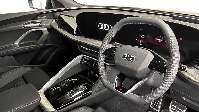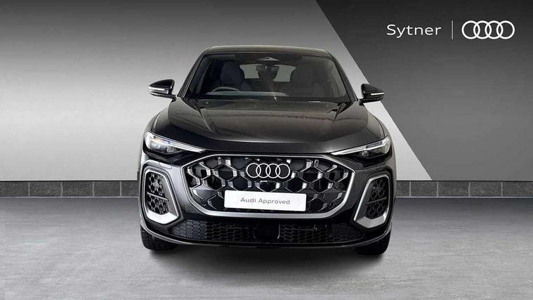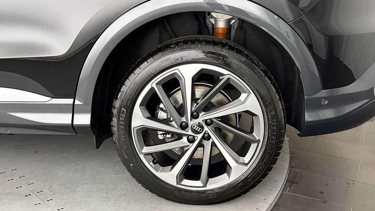 Adaptive cruise control, Advanced driver attention alert, Audi application store, Audi connect emergency call and service, Audi drive select, Audi smartphone interface, Audi virtual cockpit plus with 11.9" OLED colour display, Camera based traffic sign recognition, Fatigue monitor, Front cross traffic intersection assist, Lane departure warning system, MMI navigation plus with high resolution 14.5" OLED touchscreen colour display, Park assist plus, Parking system plus with 360 display, PAS, Reversing camera, Swerve assist and turn assist, Traffic sign based speed limiter, 2 USB-C ports in both the front and rear, Audi sound system impressive sound with 8 loudspeakers including centre speaker and subwoofer, 6-channel amplifier with a total output of 180 watts, DAB Digital radio, Smartphone compartment with wireless charging, Auto dimming rear view mirror, Body coloured door mirrors, Coming/leaving home lighting function, Electrically adjustable heated and folding + automatically dimming exterior mirrors, Front and rear electric windows, Front door sill trims with aluminium inlays, illuminated with 'S' logo, Headlight cleaning system, Heated rear window, High beam assist, High gloss window surrounds, Inlay and front air inlets in matt anthracite chrome, LED headlights plus incl. digital DRL, dynamic coming and leaving home function with turning/all weather/motorway/manouevring and intersection lights, LED rear lights pro incl. dynamic rear indicators and illuminated light strip with animated coming and leaving home function, Logo projection light in exterior mirrors, Privacy glass, Projection light for rear window, Radiator grille in phantom black, Rear and side windows with heat insulating glass, Rear honeycombe grille in matt black with inlay in matt anthracite chrome, Rear side wing doors, Rear wash/wipe, S Line badge on the front wings, S line bumpers in contrasting Volcano grey metallic paint finish, Towbar preparation, Windscreen with acoustic glazing, 3 rear head restraints, 3 seat bench in 2nd row, 3 spoke leather steering wheel with multi-function buttons with touch control, flattened on top and bottom, with S badging and contrast stitching, 40:20:40 split folding rear seat bench with centre armrest and cup holders, Comfort centre armrest, Deluxe 3 zone electronic climate control, Front and rear floor mats, Front seats with manual adjustment for position and 4-way electric lumbar support, Front sport seats with integrated head reastrains, Headlining in black cloth, Heated front seats, i-Size child seat mounting on the front passenger side and outer rear seats, i-Size and top tether on the outer rear seats, Interior trim in aluminium look, Luggage compartment lid, electrically opening and closing, Manual steering column adjustment, S embossed logo on front sport seats, Single front passenger seat, Softwrap in leatherette, Stainless steel pedals and footrest, Steering wheel grips in perforated leather and shift paddles, Ambient lighting package plus - Q5, Storage and luggage compartment pack - Q5, 3x3 point rear seatbelts, ABS, Acoustic vehicle alerting system, Driver and front passenger airbag with passenger airbag deactivation, Electric child safety locks, First aid kit with warning triangle and high visibility vests, Front emergency brake assist, Front side airbags with head airbag system and front interaction airbag, Hill hold assist, Rear seat occupant reminder, Tyre pressure loss indicator, Anti theft alarm, Anti-theft wheel bolts, Remote control key with SAFELOCK and keyless go, Accent surfaces and control buttons in gloss black, Anthracite matt brushed aluminium inlays with linear embossing, Black dashboard with contrast stitching, Upper and lower interior elements in artificial leather, Tyre repair kit,