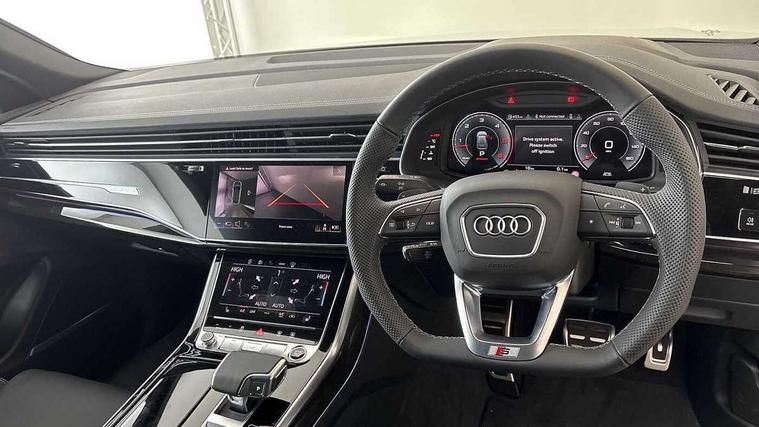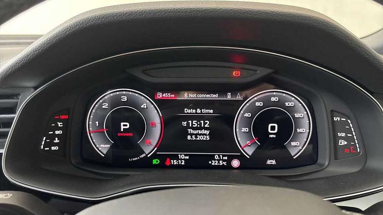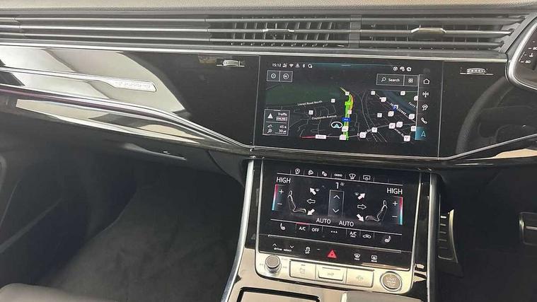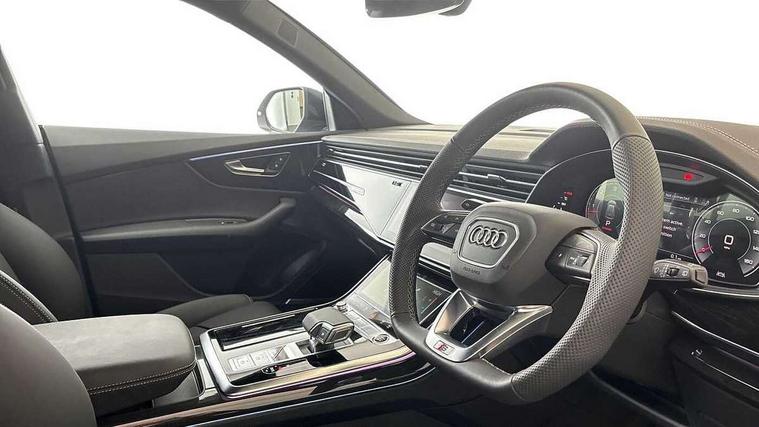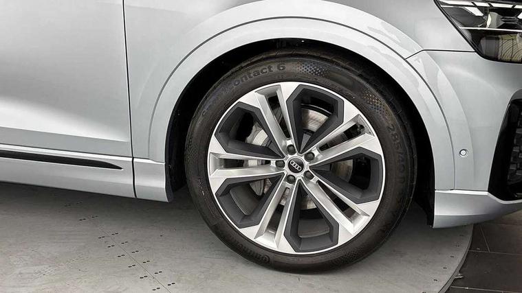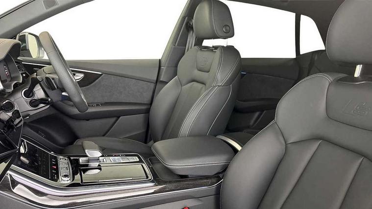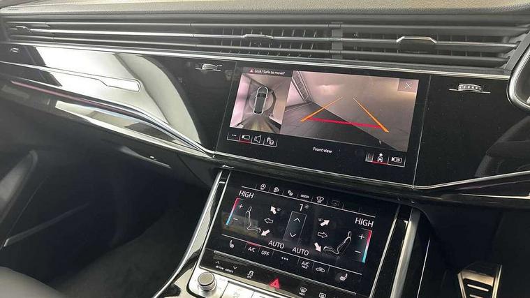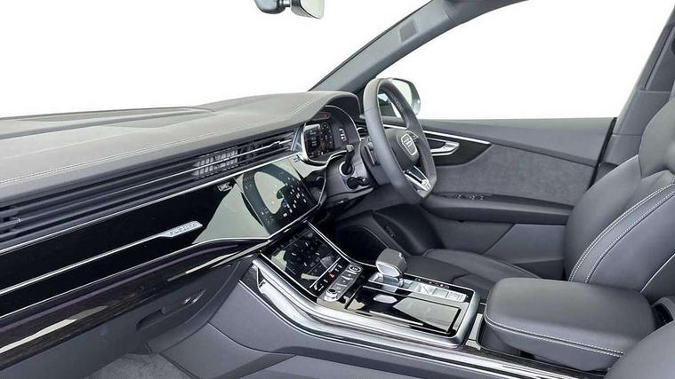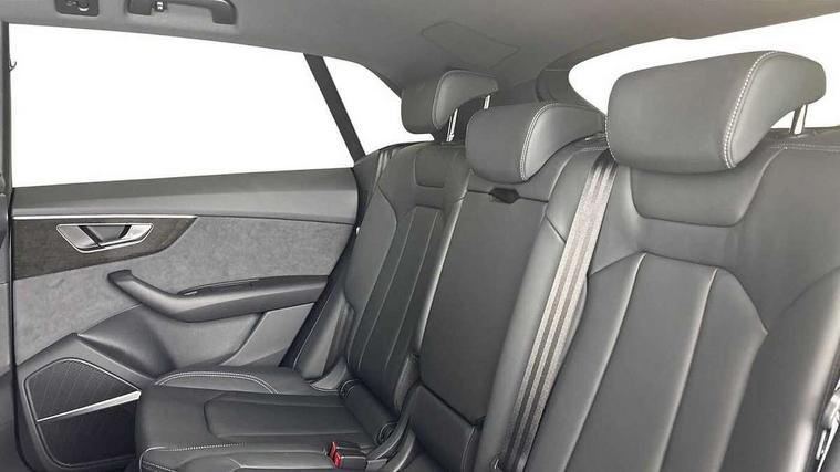10.1" and 8.6" Dual colour touchscreens, Audi application store, Audi connect safety and service (e-call), Audi connect with Amazon Alexa Integration, Audi drive select, Audi parking system plus includes 360 degree display with front and rear sensors, Audi phone box light with wireless charging, Audi virtual cockpit - 12.3" high resolution LCD display with fully customisable instrument cluster, Automatic start/stop system, Bluetooth, Electro-mechanical PAS, Low washer fluid indicator, MMI navigation plus with MMI touch, Natural voice recognition, On board computer, Operating buttons in black, glass look with haptic feedback, Power operated tailgate, Rear view camera, Service interval indicator, Smartphone interface includes wireless Apple carplay/Android Auto, 48V Mild hybrid technology, Adaptive sport air suspension, Diesel particulate filter, Quattro all wheel drive with self locking centre differential, Audi music interface with 2 USB ports with charge and data functions, Audi sound system with 6 channel amplifier, 180 watt amplifying capacity and 10 loudspeakers including subwoofer, Aux-in socket, DAB Digital radio, 3rd brake light, Audi beam, Auto dimming frameless rear view mirror, Black exhaust tailpipes, Black single frame mask, Coming/leaving home lighting function, Electric front+rear windows, Electrically folding auto dimming/adjustable/heated door mirrors with memory function, LED side indicators and kerb view function for passenger side, Headlight washers, Heat insulating glass in windshield, LED rear light plus, LED signature daytime running lights, Loading edge protection in stainless steel, Matrix LED headlights with dynamic front and rear indicators, Platinum grey front spoiler lip and diffuser insert with honeycomb grille in black, Privacy glass - dark tinted rear and rear side windows from B-pillar backwards, Rain and light sensors, Rear side wing doors, Rear wiper, Singleframe grille surround in matte platinum grey, 2 zone automatic climate control, 3 bench rear seats in 2nd row, 4-way lumbar support for front seats, 40:20:40 split folding rear bench seat, Black cloth headlining, Comfort front centre armrest, Driver seat memory function, Electrically adjustable front seats, Front head restraints, Front/rear floor mats, Heated front seats, ISOFIX child seat mounting for front passenger seat and 2 outer rear seats with top tether child seat mounting for all 3 rear seats, LED interior ambient lighting, Luggage compartment sill protection in stainless steel, Rear centre armrest with 2 cupholders, Rear headrests, Seat cushion displaceable by 100mm in the ratio 60:40, Single front passenger seat, Stainless steel pedals, Sunvisors with illuminated vanity mirrors, Black styling pack plus - Q8, 3 point seatbelts on all seats, Audi pre sense front, Convenience key with safelock, Driver and front passenger, front side and curtain airbags, Electromechanical parking brake, Electronic Stability Control (ESC) including ABS, ASR and EDL, Front passenger airbag deactivation, Hill descent control, Hill hold assist, Predictive pedestrian protection, Seatbelt monitoring, Traction control, Tyre pressure loss indicator, Warning triangle and first aid kit, Anti theft alarm with tow away protection, Anti-theft wheel bolts and wheel loosening detection, Electronically operated child lock, Immobiliser, Keyless go with remote central locking, Polished oak trim with grey finish inlay, Tool kit, Tyre repair kit,