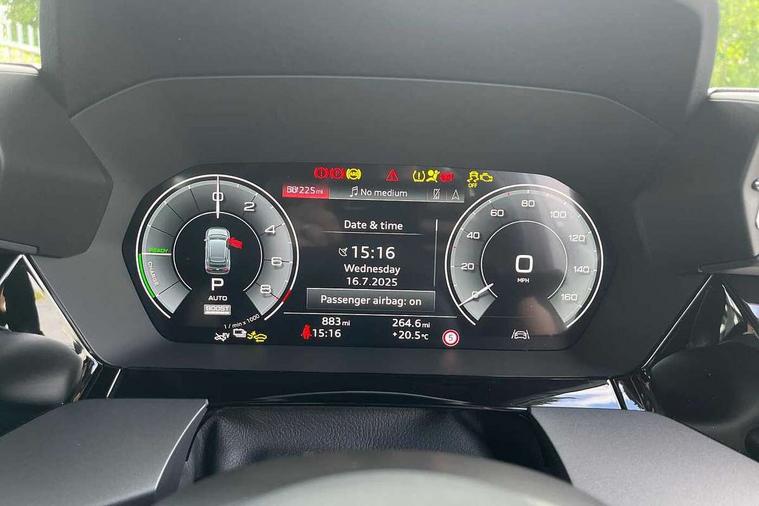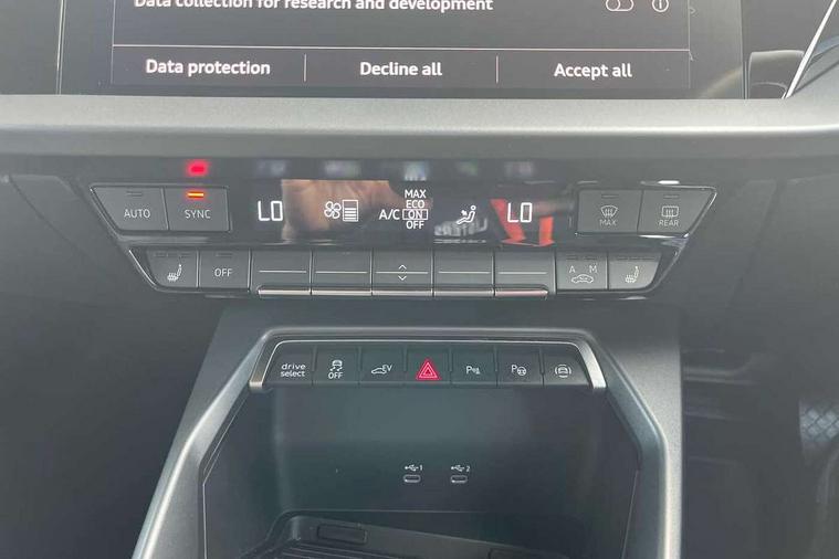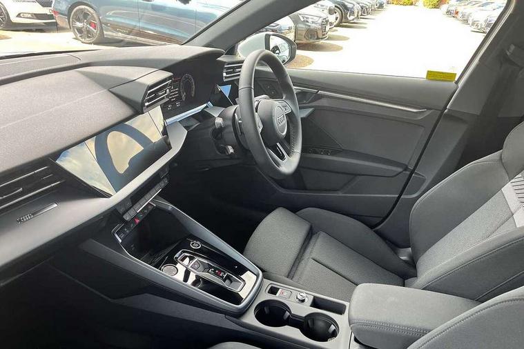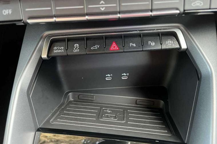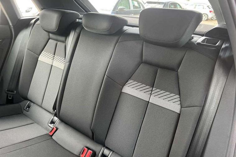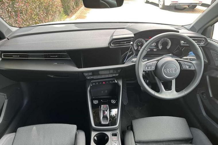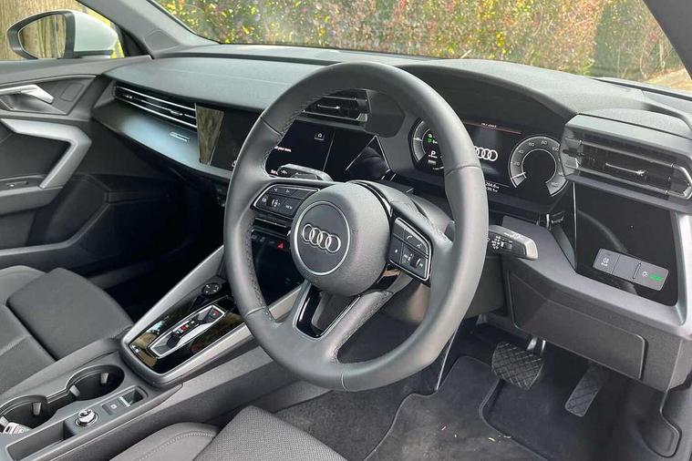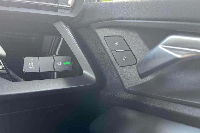 Adjustable speed limiter, Audi drive select, Audi smartphone interface with app store includes wireless Apple carplay, Android auto and Amazon alexa integration, Audi virtual cockpit plus - 12.3" full HD resolution dynamic digital instrument cluster, Automatic start/stop system with recuperation, Bluetooth interface, Camera based traffic sign recognition, Collision avoidance assistant, Cruise control, Distraction and Fatigue warning, e-Call (emergency call), Electromechanical power speed sensitive steering, Emergency assist, Lane departure warning system, MMI Navigation Plus with high resolution 10.1" colour touch screen display, Park Assist with parking system Plus, Service indicator, Trip computer, Voice control system with natural language interaction, 3 pin 10 amp domestic charging cable, CCS socket for DC charging, Charging cable for public charging, mode 3 (type 2), 32 A, Compact charging system, Industrial connector CEE 32 A, 230 V, length 1.6 m, Standard suspension, Type 2 socket for AC charging, Audi Phonebox light with wireless charging, Audi sound system - 10 loudspeakers including centre loudspeaker and subwoofer, DAB Digital radio, USB ports with charging function in the rear, 3rd brake light, Acoustic glass windscreen, Aluminium window trim, Auto dimming frameless rear view mirror, Body colour exterior mirrors, Body colour roof spoiler, Dipped beam, main beam, position light and turning light, Electrically adjustable/heated/folding/auto dimming door mirrors with integrated LED indications + kerb view function for passenger side, Exterior model badging, Front electric windows, Front radiator grill in high gloss dark chrome, Front side air inlets in grained matt black with silver frame, Heat insulating glass windscreen, LED daytime running lights, LED headlights and halogen rear lights, Light and rain sensors, Rear diffuser and grill in grained matt black with silver frame, Rear electric windows, Rear side wing doors, Rear window, rear door windows and rear side windows in clear glass, Rear wiper, 12V socket and storage compartment in front centre console, 3 seat bench in 2nd row, 3 spoke leather multifunction steering wheel with gear shift paddles, 3-zone deluxe automatic air conditioning, 4 way electrically adjustable lumbar support for driver and front passenger, 60/40 split folding rear seat bench, Black front and rear floor mats, Convenience auxiliary air conditioning, Front and rear headrests, Front centre armrest, Front door sill trims with aluminium inlay, Heated front seats, Height and reach adjustable steering wheel, Manual boot compartment lid, Manually adjustable front seats, Routine cloth upholstery with front sports seats, Seat side bolsters, Single front passenger seat, Steel grey cloth headlining, Aluminium interior elements pack - A3, LED interior lighting pack -A3, 3x3 point rear seat belts, Acoustic vehicle alerting system, Driver and front passenger airbag with passenger airbag deactivation, Electronic Stabilisation Control (ESC) including ABS, ASR and EDL, First aid kit with warning triangle and 2 safety vests, Front side airbags with head airbags and interaction airbag, Hill hold assist, Pre-sense front with pedestrian and cyclist detection, Seatbelt monitoring, Tyre pressure loss indicator, Anti theft alarm, Anti-theft wheel bolts, Electronically operated child locks, Immobiliser, Remote central locking with safelock, Black dashboard, Inlays in volcano grey fine paint finish, Tyre repair kit,