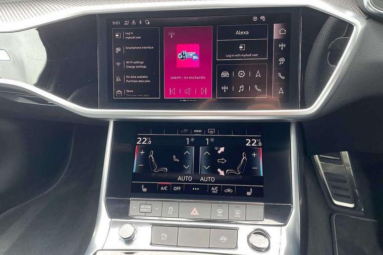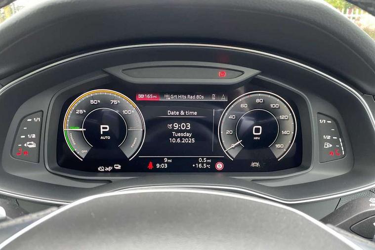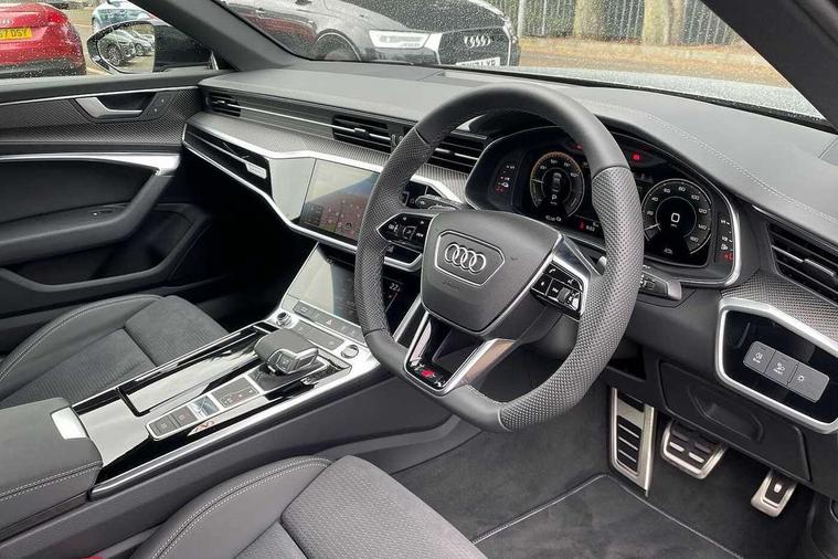 Audi connect safety and service (e-call), Audi connect with Amazon Alexa Integration, Audi drive select, Audi parking system plus - acoustic and visual park assist system for front and rear, Audi smartphone interface includes wireless Apple carplay/Android Auto, Audi virtual cockpit, Automatic start/stop system with coasting functionality, Bluetooth interface, Camera based traffic sign recognition, Electric boot lid release, Lane departure warning system, MMI navigation plus with 10.1" and 8.6" touch screens, Progressive steering, Rear view camera, Service interval indicator, Voice control system, 3 pin 10 amp domestic charging cable, 52 litre fuel tank, 7.4 kW onboard charger, Compact charging system, Hybrid propulsion system, Industrial connector CEE 32A, 230V, long and straight for the e-tron charging system, Mode 3 charging cable for public charging (AC), Sports suspension, Type 2 socket for AC charging, Audi front music interface, Audi sound system, Auxiliary input socket, DAB Digital radio, USB connection, Audi beam, Electric front/rear windows, Electrically adjustable heated and folding + automatically dimming exterior mirrors with memory function, Frameless auto dimming interior rear view mirror, Front intermittent wipers, Heat insulating darkened glass in side and rear windows, Heat insulating glass in windshield, LED rear lights with dynamic indicators, LED signature front daytime running light, LED third brake light, Matrix LED headlights, Matt black rear diffuser with diffuser strip and tailpipes in chrome, Matt black side air intake grille with inlay in matt aluminium, Omission of output/technology badging, Privacy glass, Radiator grille in anthracite black matt, single frame in chrome and horizontal struts in matt aluminium silver, Rain and light sensors, Rear boot, Rear side wing doors, 4 zone deluxe automatic climate control, 40/20/40 split folding 3 rear seat bench in 3 parts with rear centre armrest, Audi phone box light, Black cloth headlining, Electrically adjustable front seats including seat height, fore/aft position, backrest angle and 4-way lumbar with memory for driver's seat, Front and rear floor mats, Front centre armrest, Front head restraints, Heated front seats, Height/reach adjust steering wheel, Illuminated door sill trims with S logo, Illuminated sun visors with vanity mirrors, Leather gear knob, Rear headrests, Single front passenger seat, Stainless steel pedals and foot rest, Tool kit and car jack, Black styling package plus - A6 Black edition, LED Interior Ambient Lighting Pack - A6, Non smoking pack - A6, S line exterior style pack - A6, 3 point seatbelts on all seats, Airbags - Front side, front and rear including head, Audi pre-sense front, EBD - Electronic brakeforce distribution, Electromechanical parking brake, Electronic Stability Control (ESC) including ABS, ASR and EDL, Extended pedestrian protection measures, ISOFIX child seat mounting for front passenger seat and ISOFIX child seat mounting with Top Tether for outer rear seats, Manual child proof rear door locks, Seatbelt monitoring, Tyre pressure warning light, Warning triangle and first aid kit, Anti theft alarm with tow away protection, Anti-theft wheel bolts and wheel loosening detection, Immobiliser, Keyless Go, Remote central locking, Carbon twill inlays, Tyre repair kit,