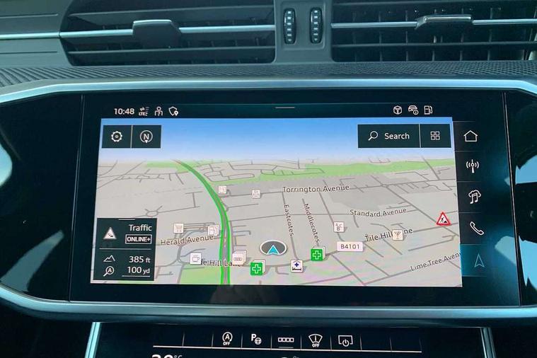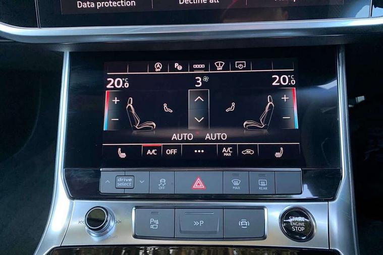 Audi connect safety and service (e-call), Audi connect with Amazon Alexa Integration, Audi drive select, Audi parking system plus - acoustic and visual park assist system for front and rear, Audi virtual cockpit, Automatic start/stop system with coasting functionality, Bluetooth interface, Camera based traffic sign recognition, Lane departure warning system, MMI navigation plus with 10.1" and 8.6" touch screens, Power operated tailgate, Progressive steering, Rear view camera, Service interval indicator, Smartphone interface includes wireless Apple carplay/Android Auto, Voice control system, Sports suspension, Audi front music interface, Audi sound system, Auxiliary input socket, DAB Digital radio, USB connection, Audi beam, Black roof rails, Body colour rear roof spoiler, Electric front/rear windows, Electrically adjustable heated and folding + automatically dimming exterior mirrors with memory function, Frameless auto dimming interior rear view mirror, Front intermittent wipers, Heat insulating darkened glass in side and rear windows, Heat insulating glass in windshield, LED rear lights with dynamic indicators, LED signature front daytime running light, LED third brake light, Matrix LED headlights, Matt black rear diffuser with diffuser strip and tailpipes in chrome, Matt black side air intake grille with inlay in matt aluminium, Omission of output/technology badging, Privacy glass, Radiator grille in anthracite black matt, single frame in chrome and horizontal struts in matt aluminium silver, Rain and light sensors, Rear side wing doors, Rear wiper, 2 zone deluxe electronic climate control, 40/20/40 split folding 3 rear seat bench in 3 parts with rear centre armrest, Audi phone box light, Black cloth headlining, Electrically adjustable front seats including seat height, fore/aft position, backrest angle and 4-way lumbar with memory for driver's seat, Front and rear floor mats, Front centre armrest, Front head restraints, Heated front seats, Height/reach adjust steering wheel, Illuminated door sill trims with S logo, Illuminated sun visors with vanity mirrors, Leather gear knob, Luggage compartment system, Rear headrests, Single front passenger seat, Stainless steel pedals and foot rest, Tool kit and car jack, Black styling package plus - A6 Black edition, LED Interior Ambient Lighting Pack - A6, Non smoking pack - A6, S line exterior style pack - A6, 3 point seatbelts on all seats, Airbags - Front side, front and rear including head, Audi pre-sense front, EBD - Electronic brakeforce distribution, Electromechanical parking brake, Electronic Stability Control (ESC) including ABS, ASR and EDL, Extended pedestrian protection measures, ISOFIX child seat mounting for front passenger seat and ISOFIX child seat mounting with Top Tether for outer rear seats, Manual child proof rear door locks, Seatbelt monitoring, Tyre pressure warning light, Warning triangle and first aid kit, Anti theft alarm with tow away protection, Anti-theft wheel bolts and wheel loosening detection, Immobiliser, Keyless Go, Remote central locking, Carbon twill inlays,