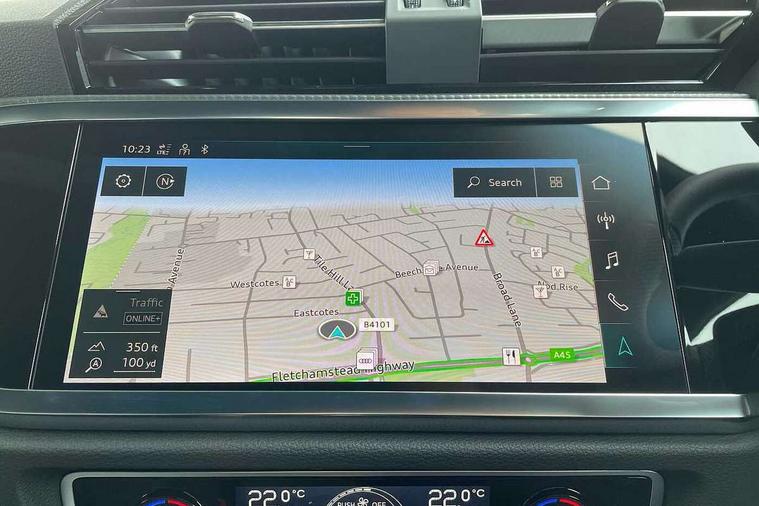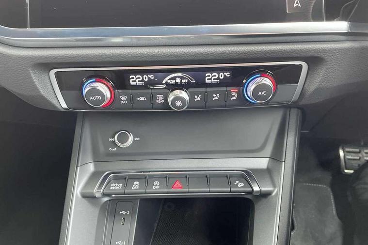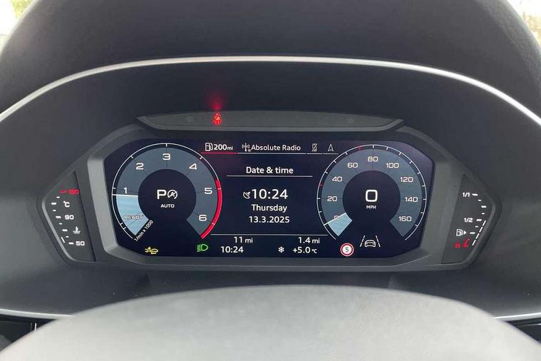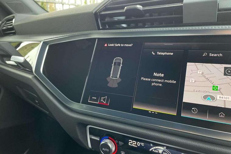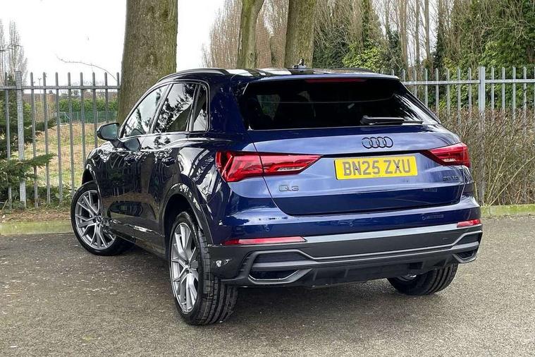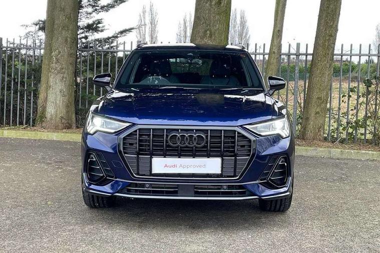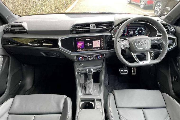 Amazon alexa Integration, Audi connect safety and service, Audi drive select, Audi lane departure warning, Audi Virtual Cockpit - 10.25" display, Bluetooth interface, Camera based traffic sign recognition, Distraction and Fatigue warning, Legal emergency call, MMI Navigation Plus with high resolution 10.1 inch touchscreen colour display, Power operated tailgate, Progressive steering, Service interval indicator, Smartphone interface includes wireless Apple carplay/Android Auto, Start stop system with recuperation, Voice control system with natural language interaction, Diesel particulate filter, Sports suspension, 2 USB-C ports with charge and data functions, 6 passive loudspeakers, DAB digital radio module, Acoustic windscreen, Audi Beam uses LEDs to project the Audi logo onto the ground as you exit your Q3, Auto dimming door mirrors, Auto dimming frameless rear view mirror, Black roof rails, Electrically folding, adjustable and heated door mirrors with integrated LED side indicators and kerb view function for passenger side, Front and rear electric windows, Front fog lights, Grille vertical bars in aluminium silver/Matt, High gloss black finish B and C pillars, LED Dynamic rear indicators, LED headlights with LED daytime running lights, LED rear lights, LED third brake light, Privacy glass dark tinted rear and rear-side windows (from B-pillar backwards), Rain and light sensors, Rear diffuser grille in grained matt black, Rear diffuser strip in matt anthracite black, Rear side wing doors, Rear wiper, S line bumpers in contrasting Manhattan grey, Variable front intermittent wipers, 12V socket in rear centre console, 3 seat bench in 2nd row, 40:20:40 folding with manual adjustment for 60:40 forwards/backwards position and backrest angle, Adjustable rear seat bench/backrest with centre armrest and cupholder, Black cloth headlining, Dual zone electronic climate control, Electric lumbar support, Front and rear black floor mats with contrast stitching in rock grey, Front and rear headrests, Front centre armrest, Height and reach adjustable steering wheel, Illuminated door sill trims with S logo, ISOFIX child seat mounting for front passenger with airbag deactivation and outer rear seat including top tether attachment point for outer rear seats, Manual front seats with height adjustment, Perforated leather gearknob, Single front passenger seat, Stainless steel luggage compartment sill finisher, Stainless steel pedals, Twin leather upholstery with front sport seats + S embossing, Black styling pack - Q3, Non smoking pack - Q3, 3x3 point rear seatbelts, 6 airbags - Driver, front passenger, curtain and side windows, Audi pre-sense front with pedestrain and cyclist recognition, Electrically operated child locks on rear doors, Electromechanical parking brake, Electronic stabilisation control including ABS, ASR and EDL, Front seatbelt reminder, Hill descent control, Hill hold assist, Pre sense basic, Seatbelt monitoring, Tyre pressure warning, Warning triangle and first aid kit, Anti theft alarm, Anti theft wheel bolts, Immobiliser, Remote central locking, Aluminium look interior elements, Detail dashboard around MMI touch colour display in glass look, black with surround in aluminium look, Leatherette door armrest, Piano black inlay,