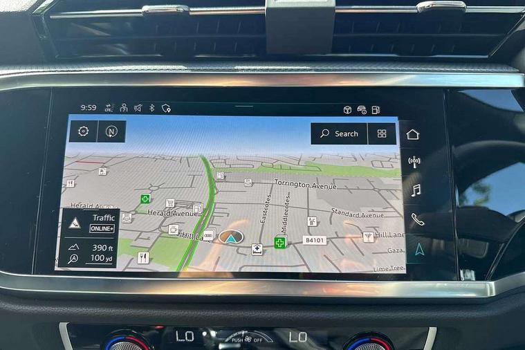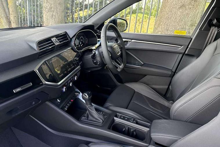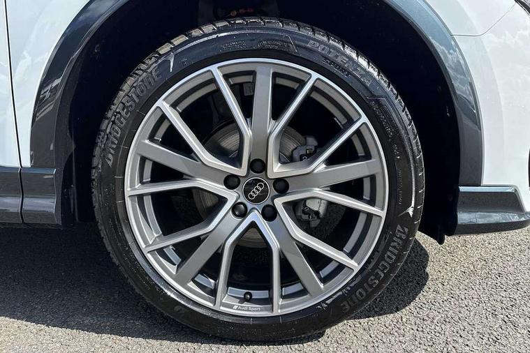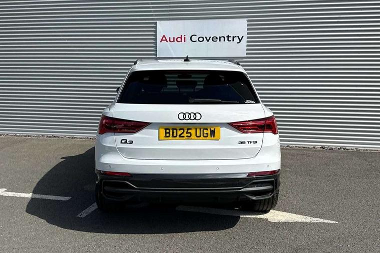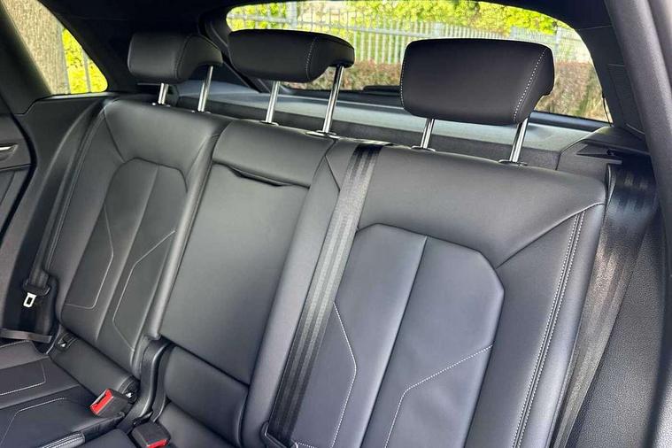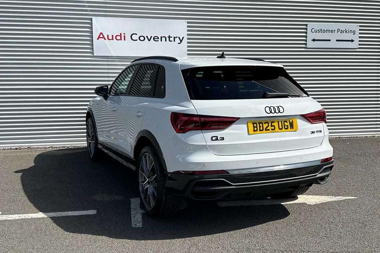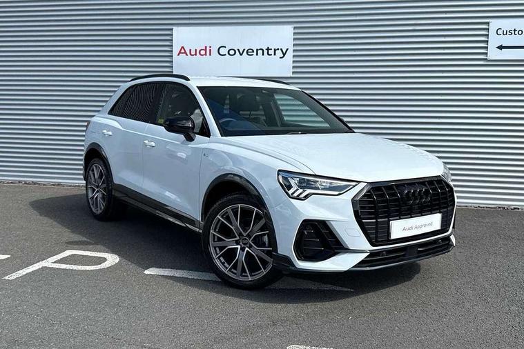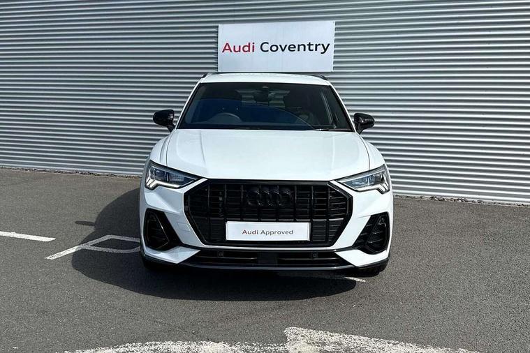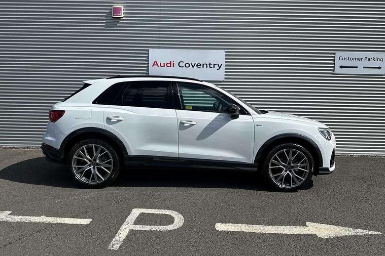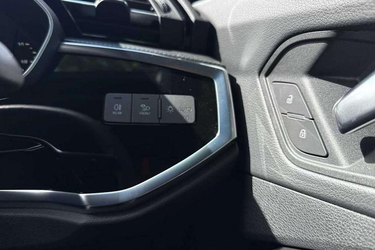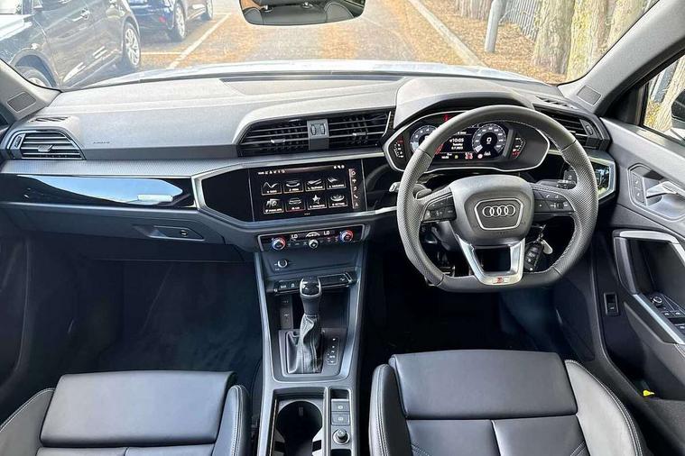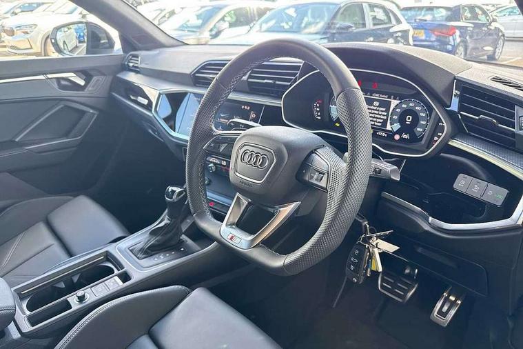 Amazon alexa Integration, Audi connect safety and service, Audi drive select, Audi lane departure warning, Audi smartphone interface includes wireless Apple carplay/Android Auto, Audi Virtual Cockpit - 10.25" display, Bluetooth interface, Camera based traffic sign recognition, Distraction and Fatigue warning, Legal emergency call, MMI Navigation Plus with high resolution 10.1 inch touchscreen colour display, Power operated tailgate, Progressive steering, Service interval indicator, Start stop system with recuperation, Voice control system with natural language interaction, Sports suspension, 2 USB-C ports with charge and data functions, 6 passive loudspeakers, DAB digital radio module, Acoustic windscreen, Anthracite black radiator grille, Audi Beam uses LEDs to project the Audi logo onto the ground as you exit your Q3, Auto dimming door mirrors, Auto dimming frameless rear view mirror, Black roof rails, Electrically folding, adjustable and heated door mirrors with integrated LED side indicators and kerb view function for passenger side, Front and rear electric windows, Front fog lights, Grille vertical bars in aluminium silver/Matt, High gloss black finish B and C pillars, LED Dynamic rear indicators, LED headlights with LED daytime running lights, LED rear lights, LED third brake light, Privacy glass dark tinted rear and rear-side windows (from B-pillar backwards), Rain and light sensors, Rear diffuser grille in grained matt black, Rear diffuser strip in matt anthracite black, Rear side wing doors, Rear wiper, S line bumpers in contrasting Manhattan grey, Variable front intermittent wipers, 12V socket in rear centre console, 3 seat bench in 2nd row, 40:20:40 folding with manual adjustment for 60:40 forwards/backwards position and backrest angle, Adjustable rear seat bench/backrest with centre armrest and cupholder, Black carpet mats, Black cloth headlining, Dual zone electronic climate control, Electric lumbar support, Front and rear black floor mats with contrast stitching in rock grey, Front and rear headrests, Front centre armrest, Height and reach adjustable steering wheel, Illuminated door sill trims with S logo, ISOFIX child seat mounting for front passenger with airbag deactivation and outer rear seat including top tether attachment point for outer rear seats, Luggage compartment sill protection in stainless steel, Manual front seats with height adjustment, Perforated leather gearknob, Single front passenger seat, Stainless steel pedals, Twin leather upholstery with front sport seats + S embossing, Black styling pack - Q3, Non smoking pack - Q3, 3x3 point rear seatbelts, 6 airbags - Driver, front passenger, curtain and side windows, Audi pre-sense front with pedestrain and cyclist recognition, Electrically operated child locks on rear doors, Electromechanical parking brake, Electronic stabilisation control including ABS, ASR and EDL, Front seatbelt reminder, Hill descent control, Hill hold assist, Pre sense basic, Seatbelt monitoring, Tyre pressure warning, Warning triangle and first aid kit, Anti theft wheel bolts, Immobiliser, Remote central locking, Thatcham approved category 1 anti theft alarm, Aluminium look interior elements, Detail dashboard around MMI touch colour display in glass look, black with surround in aluminium look, Leatherette door armrest, Piano black inlay,