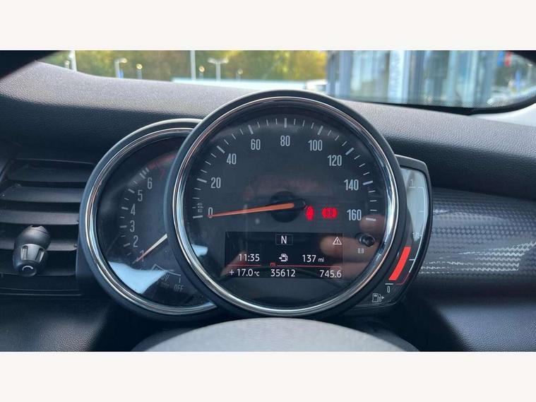 Acoustic seat-belt warning, Basic bluetooth function with USB audio, Brake fluid level warning light, Brake pad wear indicator warning light, DTC - Dynamic traction control, Exterior temperature gauge, Intelligent emergency call, MINI TeleServices, Oil level indicator, On board computer, Push button starter, Service interval indicator, Servotronic PAS, Electronic differential lock, Auxiliary input socket, DAB digital radio module, 2 speed wipers+intermittent wipe, Aluminium tailgate, Anti dazzle mirror, Anti trapping/one touch open close front windows, Body coloured bumpers, Chrome bezels around rear lights and headlights, Chrome door handles, Chrome exhaust tailpipe, Chrome grille surround, Chrome plated trim on bottom edge of window, Chrome strip on lower grille, Electric front windows, Electric rear windows, Electrically adjustable door mirrors, Flared wheel arches, Follow me home headlights, Green tinted heat insulating glass, Heated door mirrors/heated windscreen washers, Heated rear window with auto timer, High gloss black tailgate, LED fog lights, LED rear lights, Rear wiper, Side scuttles, White indicator lights, 2 rear head restraints, 4 boot load lashing points, 4 way manually adjustable passenger seat with height, reach, tilt, backrest and headrest, 6-way manually adjustable driver's seat, Active carbon filter, Adjustable front seats backrest, Air recirculation system, Auxiliary socket in centre console storage compartment, Centre console storage, Driver's seat height adjuster, Driver/passenger sunvisors, Front and rear cupholders, Front head restraints, Front passenger grab handle, Gear/selector and handbrake in artificial leather, Internal chrome door handles, Isofix child seat preparation, Luggage compartment lighting, Multifunction steering wheel, Reach + rake adjustable steering column, Rear grab handles, Rear storage trays, Split folding rear seats, Storage compartments in doors, Toolkit in luggage compartment, 3 point seatbelts, 3x3 point rear seatbelts, ABS/EBD, ASC+T, Cornering brake control (CBC), Crash Sensor - activates hazard/interior lighting + unlocks doors, Driver and passenger airbags, Driver/front passenger side airbags, DSC - Dynamic Stability Control, Fuel cut off safety device, Head airbags, Hill start assist, Passenger airbag deactivation system, Seatbelt pretensioners, Tyre pressure warning, Ventilated front disc brakes, Drive away door locking, Locking wheel bolts, Remote central locking/doors+fuel cap+tailgate, Second remote key, Thatcham category 1 alarm + immobiliser,