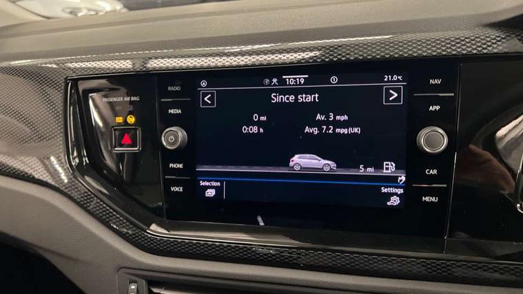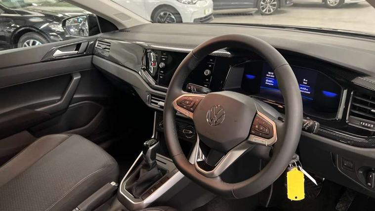 Advanced driver attention and drowsiness monitor, Bluetooth mobile phone interface, Dynamic road sign display, Emergency call service, Mobile phone preparation with inductive charging function, Multifunction front facing camera for distance control, Power assisted speed sensitive steering, Predictive adaptive cruise control without follow-to-stop and speed limiter, Preparation for navigation system with media and internet package, Preparation for We connect and We connect plus, Rear view camera, Speedo and rev counter, electronic odometer, trip, service interval display and exterior temperature gauge, Standard rear axle, Travel Assist - Lane keeping system and traffic jam assist, Travel assist including emergency assist, Trip computer, Warning signal and warning light for front and rear seatbelts not fastened, Washer fluid level indicator, Wireless app connect, Front wheel drive, Rear shock absorpion, Start-stop system with battery regeneration (recuperation - energy recovery during braking), DAB Digital radio, Diversity antenna for FM reception, Automatic dimming interior rear view mirror, Automatic headlight control with LED separate daytime running lights with coming/leaving home function, Body colour bumpers with chrome inserts, Body colour door handles, Body colour door mirrors, Electric front windows, Engine badge deletion, Headlight range adjustment, Heat insulating and laminated safety glass windshield, LED Headlights, LED rear combination lamps, Power folding adjustable/heated exterior mirrors and front passenger exterior mirror lowering function, Rain sensor, Rear electric windows, Rear fog light, Rear side wing doors, Rear tinted glass from B-pillar backwards approx 65% tinted, Rear windscreen washer and wiper with interval delay, Third brake light, 12V power socket in centre console, 2 front and 2 rear reading lights with switch off delay and dimmer, 2 USB-C ports in the front, 2 USB-C charging sockets on the center console in the rear, 3 rear head restraints, 60/40 split folding rear seat and rear seat bench not split, Ceramique roof lining, Chrome plated radiator grille inserts, air vent surrounds and light switch surrounds, Door and side trim panel, Driver and front passenger seat height adjustment, Driver/passenger sunvisors with illuminated vanity mirrors, Front centre armrest, Front seat backrest storage pockets, Front standard seats, Handbrake lever handle in leather, Hartley/Thomas cloth upholstery, Headliner in recycled material, Isofix child seat preparation easy-fit (for two outer rear seats, and front passenger seat) compatible with I-size, Leather trimmed gear knob, Luggage compartment cover, Luggage compartment lighting, Removable luggage compartment floor, Single front passenger seat, Standard climatic zones, Standard pedal cluster, Three spoke leather wrapped multifunction steering wheel with shifting paddles, Light and vision pack - Polo, 3 point height adj front seatbelts + pretensioners, 3 point seat belt for centre rear seat, 3 point seatbelts, outer rear with ECE lable, ABS, Driver and front passenger airbag with front passenger airbag deactivation, Drivers and front passengers safety optimised head restraints, ESC (Electronic stability control) + EDL (Electronic Differntial lock) and ASR (Traction control), Extended and predictive pedestrian/ cyclist protection, Front assist with autonomous emergency braking (for Adaptive Cruise Control ACC up to 130 mph), Front curtain and side airbags with center airbag, Front disc brakes, Hill hold control, Manual child lock in rear doors, Rear drum brakes, Single tone horn, Tyre pressure loss indicator, Alarm with interior protection, Anti-theft alarm system with interior monitoring, backup horn, and towing protection, Anti-theft wheel bolts, Electronic engine immobiliser, Lava stone black gloss/matt decorative inserts in dash and front door panels, 16" Torsby alloy wheels, Low rolling resistance tyres,