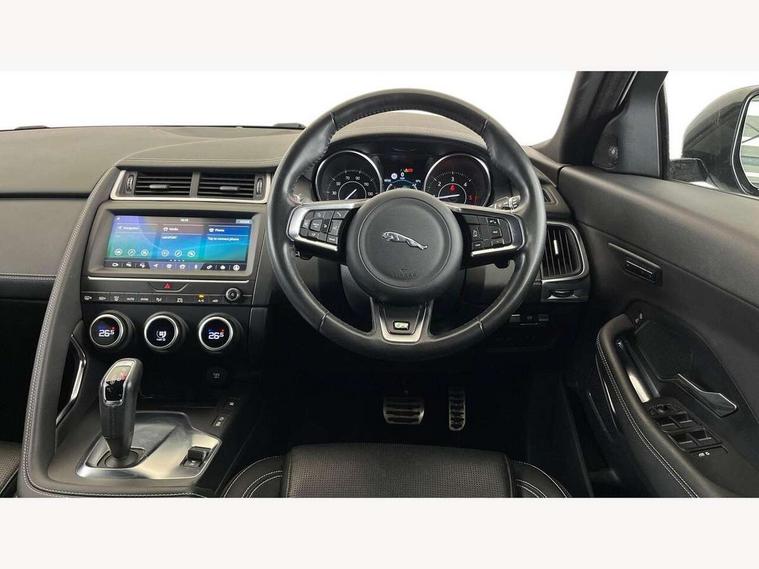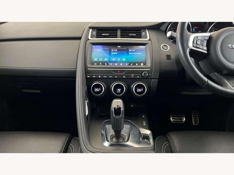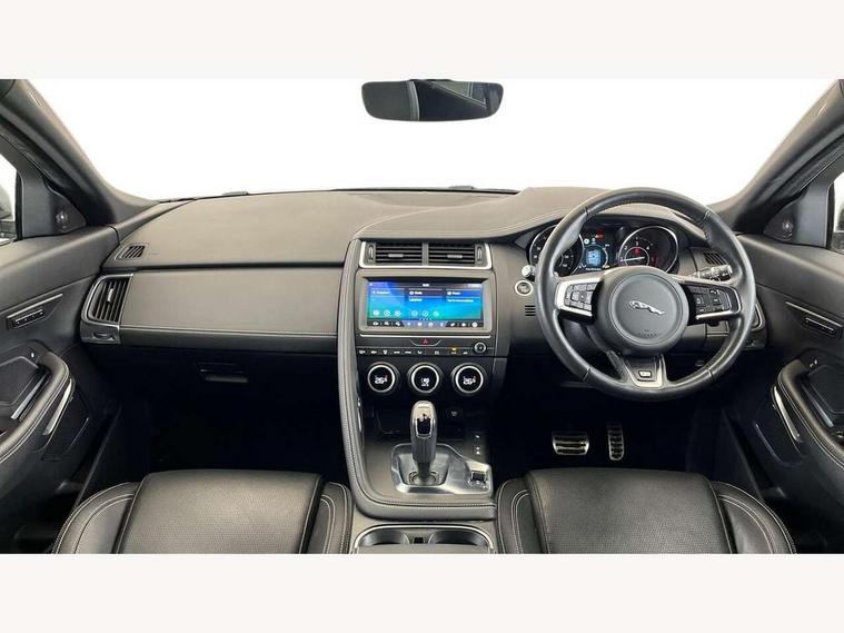 Driver condition monitor, Eco driving style assistant, Electric power assisted steering, InControl remote, InControl Touch navigation pro, Lane keep assist, Misfuelling protection device, Outside temperature gauge, Push button starter, Speed proportional steering, Start up sequence with movement in dials and lighting, Traffic sign recognition with adaptive speed limiter, Trip computer, Voice control system, Diesel particulate filter, Efficient Driveline, Passive suspension, AM/FM DVD MP3 radio, Bluetooth connectivity including audio streaming, DAB Digital radio, Dynamic volume control, InControl app, 3 flash lane change indicators, Approach Illumination, Auto dimming rear view mirror, Auto high beam assist, Automatic headlights, Body colour side cladding, Electric folding auto dimming and heated door mirrors with memory + Signature approach lamp, Electric front/rear windows with one touch/auto up/down, Front fog lights, Heated door mirrors, Heated front windscreen, Heated rear window with timer, Heated washer jets, Jaguar script and leaper, R Dynamic badge, R Dynamic body colour bumpers, Rain sensor windscreen wipers, Rear fog lights, Tailgate spoiler, Twin tailpipes with finishers, 12V power socket in rear, 2nd row 60/40 split/fold, 2nd row air vents, 3 seat bench in 2nd row, 4 Load area hooks, Black gearshift paddles, Centre armrest console, Centre headrest in row 2, Dual zone automatic climate control, Elasticated loadspace side strap, Front head restraints, ISOFIX on outer rear seats, JaguarDrive selector, LED lighting in overhead console, Loadspace cover, Loadspace lamp, Metal pedals, R branded leather steering wheel, Storage net in luggage compartment, Sunvisors with illuminated vanity mirrors, Tie down hooks in luggage area, Twin front covered cupholders, 3x3 point rear seatbelts, ABS, All surface progress control (ASPC), Customer configurable autolock, DSC - Dynamic Stability Control, Electronic brake force distribution, Electronic parking brake, Emergency brake assist, Front airbags with passenger seat occupant detector, Front and rear curtain airbags, Front and rear seatbelt reminder, Front side airbags, Hill start assist, Low friction launch, Power child locks, Torque vectoring brake, Tyre pressure monitoring system, Intrusion sensor and alarm, Locking wheel nuts,
