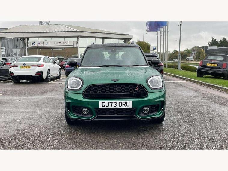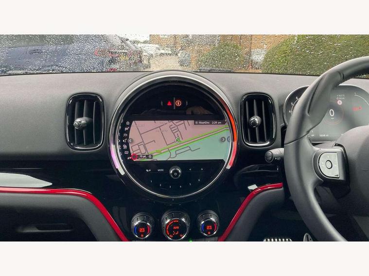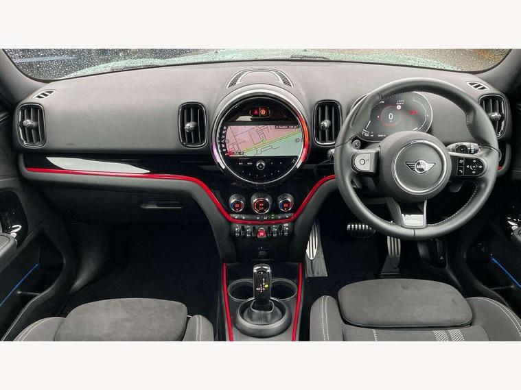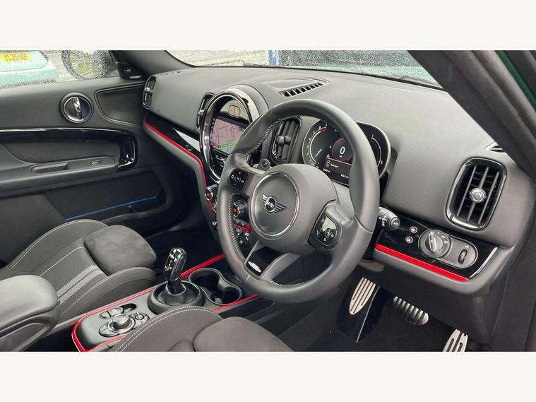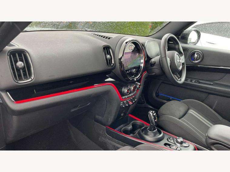 Active Guard incl speed limiting and lane departure functions with auto steering, and front collision warning with brake intervention, Automatic start/stop function with brake energy recuperation, Compatible mobile phone bluetooth with audio streaming, Cruise control with brake assist, Electro-mechanical speed dependant steering assistance, Instrument cluster, MINI Driving Modes - centre toggle switch to control driving setting (sport, mid and green), Mini E-call, On board computer, Double Vanos system, Fully variable valve control, High precision injection, Performance Control, Steptronic sport transmission with double clutch and steering wheel paddles, FM tuner and DAB digital radio, 3rd brake light, Bonnet scoop, Chrome fuel filler cap, Day time driving lights, Dynamic brake lights, Electric windows, Heated rear window, Heated windscreen washer jets, John Cooper Works - aerodynamic kit (front and rear apron, spoiler), front and rear sport bumpers and part-painted side sills with door sill finishers, John Cooper Works Logo, LED fog lights, Metal door sill strips with Cooper S imprint, Model logo, Model logo on Tailgate, Rain sensor with auto headlights, Rear fog lights, Rear side wing doors, Rear window wiper, Side scuttle panel with integrated indicator, Split rear doors, Sun/heat protection glass, White indicator lenses, 12V socket in centre console, 3 seat bench in 2nd row, 360L luggage compartment capacity, 4 lashing eyes in luggage compartment, 40:20:40 split folding rear seats, Anthracite headlining with grab handles and clothes hooks, Chrome interior highlights, Colour line - Carbon black, Cupholders, English handbook, Front headrests, Glove compartment, Height and length steering column adjustment, Interior lighting with 12 basic colours selectable via toggle switch in roof, Isofix rear child seat preparation, LED reading lights, vanity mirror lights, front foot well light and spotlight on front seats, Mini John Cooper Works leather gearshift lever and handbrake gaiters, Multifunction steering wheel, Nappa leather steering wheel with MINI Yours logo, Rear headrests, Single front passenger seat, Stainless steel pedals and foot rest, Storage compartments in doors, Sunvisors with vanity mirrors, Excitement pack - Countryman, Navigation pack - Countryman, Piano black exterior pack - Countryman Cooper S/SD/SE/Boardwalk, 2 tone horn, 3 point seatbelts on all seats, 6 Airbags - front, side, head and seat belt tensioners, Anti-lock braking system (ABS), DSC - Dynamic Stability Control, Electronic handbrake, Front and rear disc brakes, Hill start assist, Manual rear child locks, Tyre pressure monitoring system, Alarm system with tilt sensor, monitoring doors, bonnet interior and tailgate, Auto drive away locking, Deadlocking function, Electronic vehicle immobiliser, Locking wheel bolts, Start/stop toggle with keyless go, Piano black JCW interior trim, Tool kit,