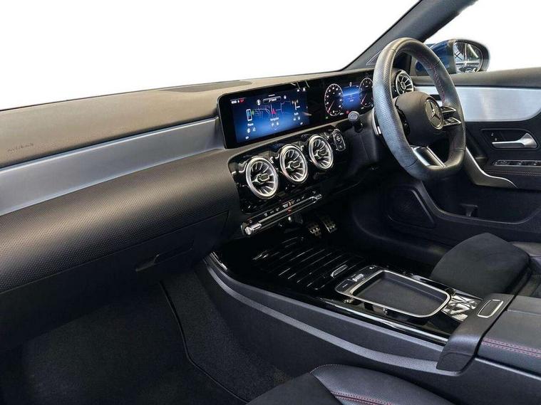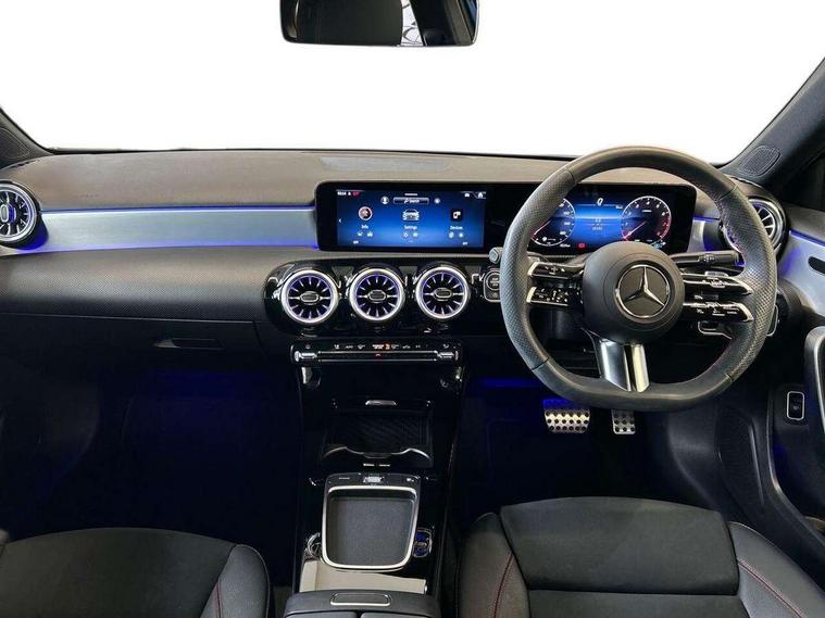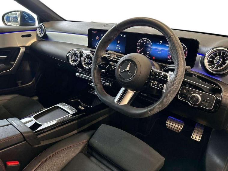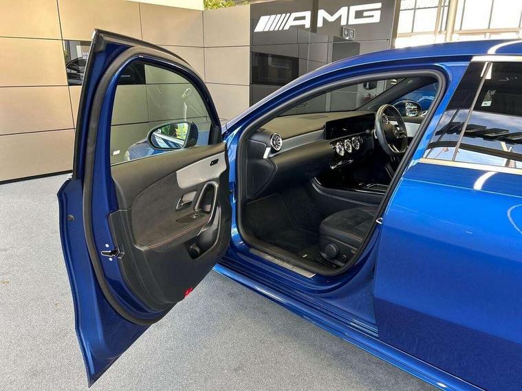 10.25 inch touchscreen central media display, 10.25" Digital instrument cluster display screen, Attention assist, Brake pad wear indicator warning light, Car wash mode, Cruise control + speed limiter, Direct steering, Direction indicators with lane change function, Dual bluetooth interfaces, DYNAMIC SELECT with a choice of driving modes (ECO, Comfort, Sport and Individual), ECO start/stop function, Engine start/stop button, Fluid level warning indicator for fuel, oil, coolant and washer fluid, Fluorescent jacket for driver, Hard-disk navigation, Hey Mercedes Voice activation, Lamp failure indicator, Lane keeping system, Mercedes me connect including emergency call system, accident recovery, breakdown and maintenance management, Mercedes me remote services, Outside temperature gauge, Owners manual in English, Pre-installation of private car share, Preinstallation for Mercedes Benz link, Remote boot closing, Service indicator (ASSYST), Smartphone integration with Apple CarPlay and Android auto, Speed limit assist, Speed sensitive power steering, Trip computer in multifunction display with current consumption indicator, Wireless charging, Lowered comfort suspension, DAB Digital radio, MBUX multimedia system, Mercedes Benz sound system (100 W) with 6 speakers, 4 Electric Front and Rear windows, Adaptive brake lights, AMG body styling - AMG front apron with front splitter and AMG rear apron and visible exhaust tailpipe trim elements, Body colour bumpers, Body colour door handles with chrome inserts, Body colour side skirt, Body coloured door mirrors, Chrome beltline strips, Diamond radiator grille with pins in fine star pattern, Electric adjustable and heated door mirrors with integrated LED side indicators, Exhaust system with 2 visible tailpipe trim elements and rear apron, Headlamp assist automatic headlamp activation, Heat insulating dark tinted rear and rear side windows, Heated glass rear windscreen + timer control, LED High Performance headlamps including integral LED daytime running lamps and adaptive highbeam assist, LED tail lamp, Privacy glass, Radio aerial, Rain sensing windscreen wipers with two sensitivity settings, Rear boot, Rear fog lights, Rear side wing doors, Third brake light featuring LED technology, Window line trim strip in chrome, 3 seat bench in 2nd row, 3 Spoke flat bottom leather multi function steering wheel with perforated leather in grip area, 4 way lumbar support, 40:20:40 split folding rear seats, Air conditioning - One zone thermatic automatic climate control with automatically controlled air distribution, Automatic child seat recognition sensor, Black air vents with surround in silver chrome, Black roof lining, Brushed stainless steel sports pedals with rubber studs, Floor mats with AMG lettering, Front centre armrest with stowage, Front door sills with Mercedes Benz lettering, Front seat backs luggage nets, Galvanished gear shift paddles on steering wheel, Heated front seats, Height/reach adjustable steering column, Interior lighting - 64 colour Ambient lighting, Interior mirror with reading lamps in black and frameless, Rear armrest with 2 cupholders, Seat occupancy sensor for front passenger seat, Single front passenger seat, Sports seats with adjustable head restraints, Stowage compartment in centre console with retractable cover, Sunvisors with illuminated vanity mirrors, Twin front cupholders, Keyless go comfort pack - A Class, Light and sight pack - A Class, Mirror package - A Class, Parking pack - A Class, Seat comfort pack - A Class, USB pack plus - A Class, 3 rear 3 point seatbelts, ABS with Brake Assist, Active bonnet, Active brake assist includes forward collision warning system with autonomous braking, Adaptive brake assist with hold function and hill start assist, Black seatbelts, Bonnet with power domes, Childproof locks manually operated for rear doors and electrically operated for rear power windows, Crash responsive emergency lighting, Driver and passenger head and side airbags, Drivers knee airbag, Dual stage driver/passenger airbags, Electronic parking brake, ESP curve dynamic assist, ESP with ASR, Front and rear seatbelt reminder, ISOFIX and top tether child seat fixing points in two outer rear seats, Tyre pressure monitoring system, Warning triangle and first aid kit, Window airbags, Alarm system/interior protection/immobiliser, Guard 360 degree vehicle protection, Remote central locking and crash sensor with emergency opening function, Light longitudinal grain aluminium trim, 18" AMG 5 twin spoke light alloy wheels, aerodynamically optimised, painted in termolite grey with high sheen finish, Summer tyres, Tirefit sealant kit,