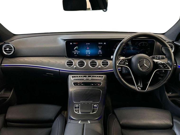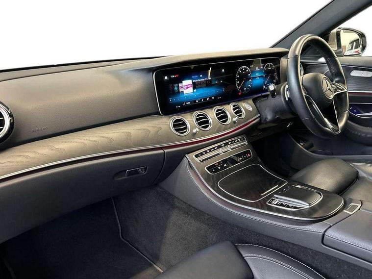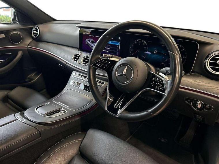 Attention assist, Blind spot assist, Brake wear warning display, Cockpit display 10.25" widescreen digital instrument cluster, Cruise control with variable speed limiter, Direct steer speed sensitive steering, DYNAMIC SELECT with a choice of driving modes (ECO, Comfort, Sport, Sport+ and Individual), ECO start/stop function, Emergency call service, High resolution 10.25" multimedia colour display, MBUX voice control activated by keywords "Hey Mercedes", Mercedes connect me, Outside temperature display, Park assist with rear view camera, Remote boot release, Service indicator (ASSYST), Smartphone integration via Android Auto/Apple CarPlay, Media Interface, USB and Bluetooth interface, Status display for rear seat belts in instrument cluster, Touchpad without controller, Traffic sign assist, Trip computer in multifunction display showing current fuel consumption, Wireless charging, 25 litre AdBlue tank, 66 litre fuel tank, 9G TRONIC 9 speed automatic transmission, Agility control sports suspension with selective damping system and lowered by 15mm, Diesel particulate filter, Incorrect fuelling protection, 2 USB ports in centre console, 2 USB ports in the rear, MBUX multimedia system with DAB digital radio and touchpad including satellite navigation, 3rd brake light, Adaptive brake lights, Aerial integrated in rear window, AMG bodystyling front and rear aprons in polished aluminium, Body colour door mirrors, Chrome pins diamond radiator grille, surround in high gloss black, single louvre in chrome with insert in high gloss black and integral star, Electric windows with one touch opening/closing and obstruction sensors, Electrically adjustable and heated door mirrors, Illuminated front door sill panels with Mercedes-Benz lettering, LED High Performance headlamps including integral LED daytime running lamps and adaptive highbeam assist, LED rear lights, Pre-installation for roof rail systems, Privacy glass Includes rear side windows and rear windscreen, Rain sensor with automatic headlight activation, Rear boot, Rear side wing doors, Tail lights, Top surround of side windows in polished aluminium, Visible twin pipe exhaust system integrated into bumper, 3 seat bench in 2nd row, 3 spoke multifunction flat bottom AMG steering wheel with chrome inserts and touch control buttons, trimmed in black nappa leather, 40:20:40 split folding rear bench seat, Artico man-made leather upper dashboard and beltlines with contrast stitching, Automatic child seat recognition sensor, Black door pins, Black roof lining, Central stowage compartment with 12 V socket in centre console, USB socket for use with Android Auto and Apple CarPlay, Courtesy lights in rear grab handles with reading light functionality, Floor mats with AMG lettering, Four way partially front electric seat adjustment, Front centre armrest with stowage compartment, Glasses compartment in overhead control panel, Glove compartment - lockable, air conditioned and illuminated, Head restraints for driver and front passenger (four-way adjustability) and in rear (two-way), Heated front seats, Interior lighting - 64 colour Ambient lighting, Leather upholstery, Seat occupancy sensor for front passenger seat, Single front passenger seat, Steering column manually adjustable for height and reach, Steering wheel multifunction with gearshift paddles, Steering wheel touch control buttons for audio and onboard settings, Sunvisors with illuminated vanity mirrors, THERMOTRONIC automatic climate control system with 3 climate zones, Mirror pack - E Class, Seat comfort pack - E Class, Stowage pack - E Class, 3x3 point rear seatbelts, Active bonnet pedestrian safety measure which detects an impact and raises bonnet, Active brake assist, Adaptive brake system with HOLD function and brake drying in the wet, Airbags - sidebag for driver and front passenger with combined thorax/pelvis bag, Anti-lock braking system (ABS), Childproof locks manually operated for rear doors and electrically operated for rear power windows, Driver and adaptive front passenger airbags, Drivers knee airbag, Electronic parking brake, Electronic Stability Programme, Hill start assist, ISOFIX child seat attachment points two outer rear seats, Perforated brake discs with Mercedes Benz lettering, Pre-Safe anticipatory safety system, Tyre pressure monitoring system, Warning triangle and first aid kit, Window airbags, Alarm system/interior protection/immobiliser, Central locking with interior switch, automatic locking and crash sensor with emergency opening function, Chrome surround electric key, Open pore black ash wood trim and centre console in black open pored ash wood, 18" AMG 5 twin spoke light alloy wheels painted in tantalite grey with high sheen finish, Summer tyres, TIREFIT with tyre inflation compressor,