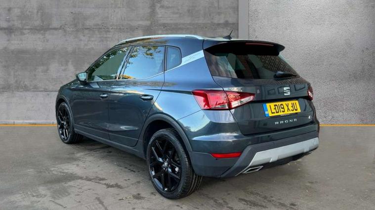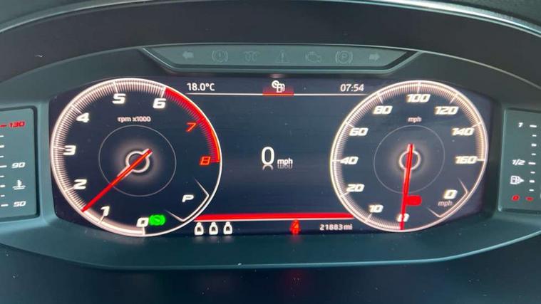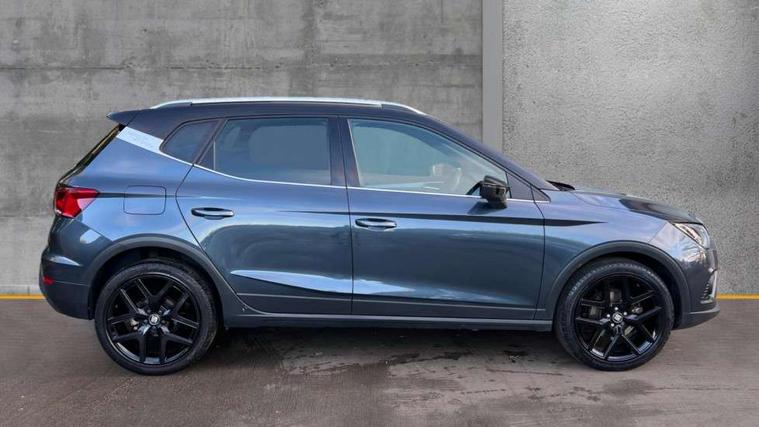 'Lights On' Reminder warning buzzer, Cruise control, Digital clock, Digital cockpit, Electric speed sensitive power steering, Front assistant collision mitigation, Full Link Smartphone Integration with Mirror Link, Apple Car Play, Google Android Auto, Low fuel warning light, Outside temperature display, Rear parking sensor, RPM counter, SEAT Drive profile, Trip computer, Dynamic chassis control, Sports suspension, 6 speakers, Bluetooth interface for hands free and audio streaming, DAB Digital radio, SEAT USB media cable, Steering wheel mounted audio controls, Anti theft roof antenna, Auto dimming interior rear view mirror, Automatic activation of hazard warning lights, Automatic headlights, Body coloured bumpers, Body coloured door handle inserts, Chrome grille surround, Chrome roof rails, Chrome window surround, Coming/leaving home lighting function, Dark tinted rear windows, Electric front/rear windows with one touch/auto up/down, Electrically adjustable and heated door mirrors, Electrically folding wing mirrors, Front fog lights, Full LED headlights, Ice metal door side panels, LED daytime running lights, LED licence plate lighting, LED tail lights, Rain sensor windscreen wipers, Rear fog lights, Rear window wash/wipe, Roof colour door mirrors, Twin exhaust pipes, Visible VIN plate, Windshield wiper with intermittent control and potentiometer, 2 cupholders, 3 rear height adjustable headrests, 60/40 split folding rear seat, Active head restraints, Ambient interior lighting, Card holder, Double boot floor, Driver and passenger sunvisors, Driver/front passenger seat height adjustment, Dual zone climate control, Dust/pollen filter, Flat bottomed steering wheel, Footwell ambient lighting, Front courtesy lights, Front reading light, Gear shift indicator, Gearshift paddles on steering wheel, Height/reach adjustable steering column, Illuminated boot, Instrument lighting with brightness control, Isofix attachments on outer rear seats, Leather handbrake, Leather steering wheel and gear knob, Microsuede cloth upholstery, Multi-colour ambient interior lighting, Sports seats, Connectivity pack plus - Arona, Winter pack - Arona, 3 point seatbelts on all rear seats, ABS+EBA, Child locks on rear doors, Driver/Front Passenger airbags, Electronic stability control, Front and rear seatbelt reminder, Front side/curtain airbags, Height adjustable active front headrests, Hill hold control + Tyre Pressure monitor, Multi-Collision braking, Passenger airbag deactivate switch, Tiredness recognition system, Traction control, 2 folding remote keys with window open/close function, Alarm with back-up horn, Immobiliser, Locking wheel bolts, Remote central locking + deadlocks, Tow away protection, Interior chrome line trim, 18" Performance alloy wheels,