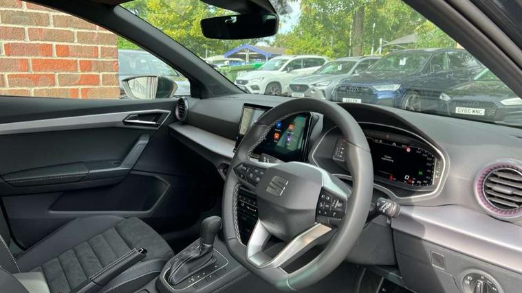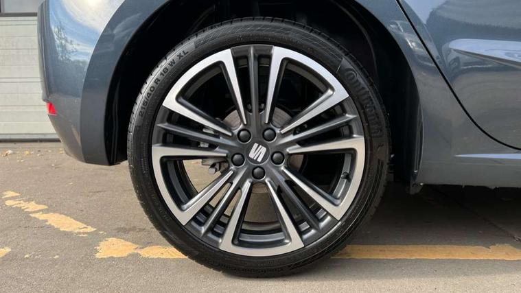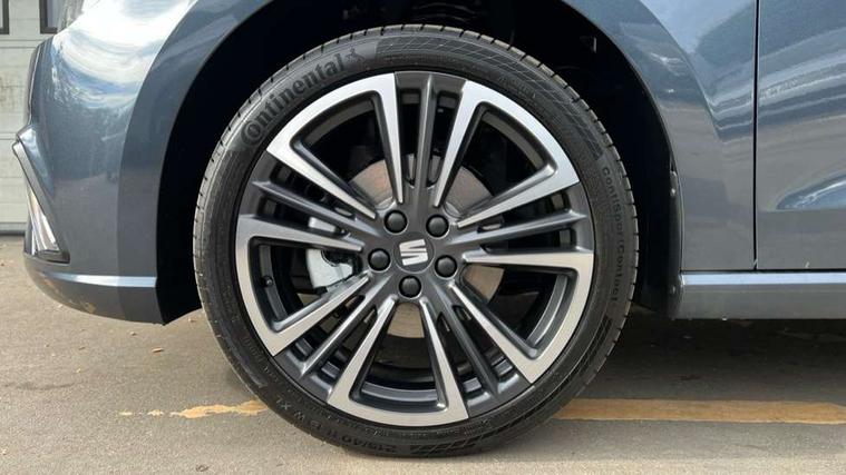 'Lights On' Reminder warning buzzer, 10" Digital cockpit, 9.2" touchscreen navigation system with type C USB socket, Voice control and DAB/AM/FM radio, Auto start and stop system, Bluetooth audio streaming with handsfree system, Digital clock, E-call, Front and rear parking sensors with rear view camera, Full link smartphone integration with mirror link, wireless apple carplay, Google android auto + USB Type C cable for apple and android devices, Lane assist, Low fuel warning light, Outside temperature gauge, Power Steering, Seat connect plus with safety, service, remote and online, SEAT drive profiles and ECO function, SEAT logo boot release, Speed limiter, Traffic sign recognition, Trip computer, Comfort suspension, 6 speakers, Auxiliary input socket, Radio/MP3 player, SD card slot, Steering wheel mounted controls, Anti theft roof antenna, Atom grey door mirrors, Auto dimming rear view mirror, Automatic rain sensing wipers, Body colour bumpers, Body colour door handles, Chrome window surround and upper grille surround, Dark tinted rear windows, Electric adjustable/heated/folding door mirrors, Electric front windows, Electric headlight adjustment, Electric rear windows, Front/rear fog lights, FULL LED automatic headlights with dynamic headlight range control, coming and leaving home, LED daytime running lights, LED 3rd brake light, LED tail lights, Rear side wing doors, Rear wiper, 3 seat bench in 2nd row, 60/40 split folding rear seat, Ambient interior lighting, Chrome detailing and black headlining, Comfort seats, Dual zone climate control with combination filter, Front centre armrest, Front courtesy lights, Front cupholders x 2, Front reading lights, Gear shift indicator, Glovebox, Height adjustable front and rear headrests (five), Height adjustable front seats, Height/reach adjust steering wheel, Illuminated air vent surrounds, Illuminated boot, Instrument lighting with brightness control, Isofix, Leather multifunction flat bottomed sports steering wheel, Microsuede cloth upholstery, Passenger sunvisor, Single front passenger seat, Storage pockets on back of front seats, Sunvisors with mirror and driver side card holder, Safety and driving pack (M) - Ibiza, Safety and driving pack (S) - Ibiza, 3 point seatbelts on all 3 rear seats, ABS, Active front headrests, Child locks on rear doors, Electronic stability control, Energy recovery system, Front driver and passenger side airbags with curtain airbag and front passenger airbag deactivation, Hill hold control, Multi-Collision braking, Seat belt reminder for front and rear seats, Tiredness recognition system, Tyre pressure monitoring system, KESSY Keyless entry and go, Locking wheel bolts, Perimeter alarm and interior monitoring with backup horn and tow away protection, Remote central locking + deadlocks, 18" Dynamic machined alloy wheels in Nuclear grey,