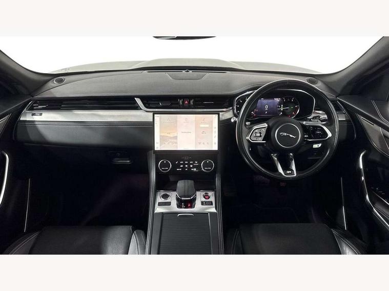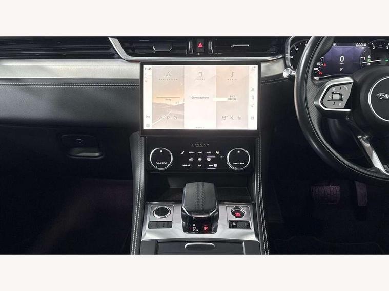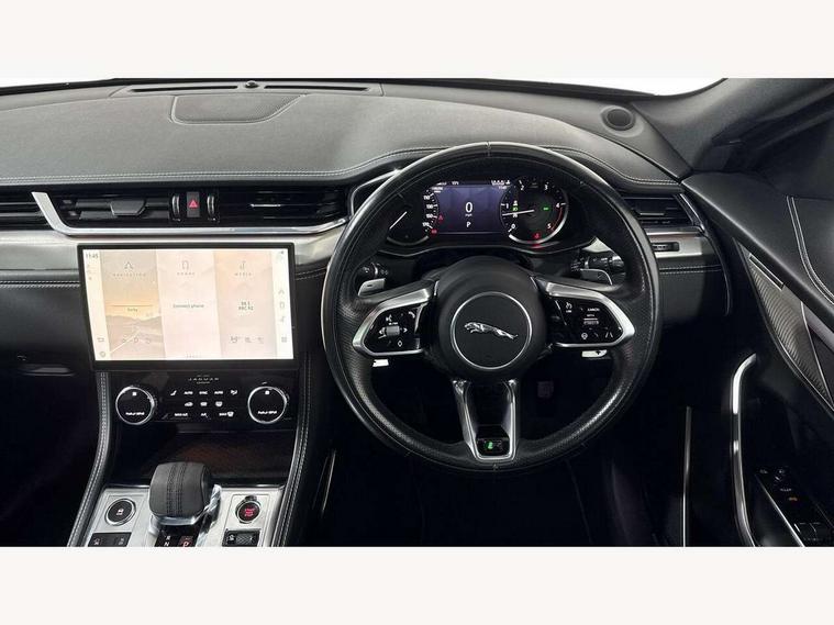 11.4" touchscreen, 3D surround camera, Android Auto, Apple car play, Bluetooth connectivity, Driver alert system, Driver condition monitor, Eco driving style assistant, Electric power assisted steering, InControl remote, Jaguar Toggle shift selector, Lane departure warning system, Lane keep assist, Outside temperature gauge, Personalisation profile management, Pivi pro connected navigation system with app interface and media storage, Pro services and wifi hotspot, Push button starter, Service interval indicator, Speed proportional steering, Start up sequence with movement in dials and lighting, Traffic sign recognition with adaptive speed limiter, Trip computer, Voice control system, 8 speed automatic transmission, Adaptive dynamics, All terrain progress control, All Wheel Drive (AWD), Configurable dynamics, Open differential with torque vectoring by braking, AM/FM radio, Bluetooth streaming, DAB Radio (Digital Audio Broadcasting), Dynamic volume control, InControl apps, InControl protect, iPod integration, 3 flash lane change indicators, Approach Illumination, Auto dimming rear view mirror, Automatic headlights, Body colour door mirrors, D300 AWD badge, Electric windows with one touch open/close and anti trap, F-Pace badge, Green tinted glass, Heated front windscreen + heated washer jets, Heated rear window with timer, Jaguar script and leaper, LED tail lights, Non acoustic front windscreen, R Dynamic badge on side door, Rain sensor windscreen wipers, Rear fog lights, Rear metal tread plates, Rear wiper, Trailer stability assist, Variable front intermittent wipers, 12V power point front, 3 rear headrests, Air distribution speed, Cabin lighting, Centre armrest console, Centre console with side storage, Door sill tread plates, Fold flat front seats, Front centre armrest with storage compartment, Front door storage space, Glovebox finisher with jaguar script, Heated steering wheel, Hooks in loadspace, Illuminated glovebox, Interior front door handles with separate locking switches, ISOFIX on outer rear seats, Jaguar sense, Luggage tie downs in loadspace, Mist sensing, Multifunction steering wheel, Overhead lighting console, Overhead stowage for sunglasses, Passive front head restraints, Premium carpet mats, R-Dynamic branded leather steering wheel, Rear air vents, Rear armrest with twin cupholders, Rear centre headrest, Rear door storage space, Reversible boot floor, Satin chrome gearshift paddles, Shopping bag hook, Sunvisors with illuminated vanity mirrors, Twin front cupholders with cover, Online Pack with data plan - F-Pace, 380mm front brakes and 325mm rear brakes, 3x3 point rear seatbelts, ABS, All surface progress control (ASPC), Brake pad warning light, DSC - Dynamic Stability Control, Electric parking brake (EPB), Front airbags with passenger seat occupant detector, Front and rear seatbelt reminder, Front side airbags, Full length side window curtain airbag, Hill launch assist, Power operated child locks, Torque vectoring brake, Traction control, Tyre pressure monitoring system, Immobiliser, Keyless Start, Locking wheel nuts, Perimeter alarm, Remote central locking, Valet mode, Summer tyres,