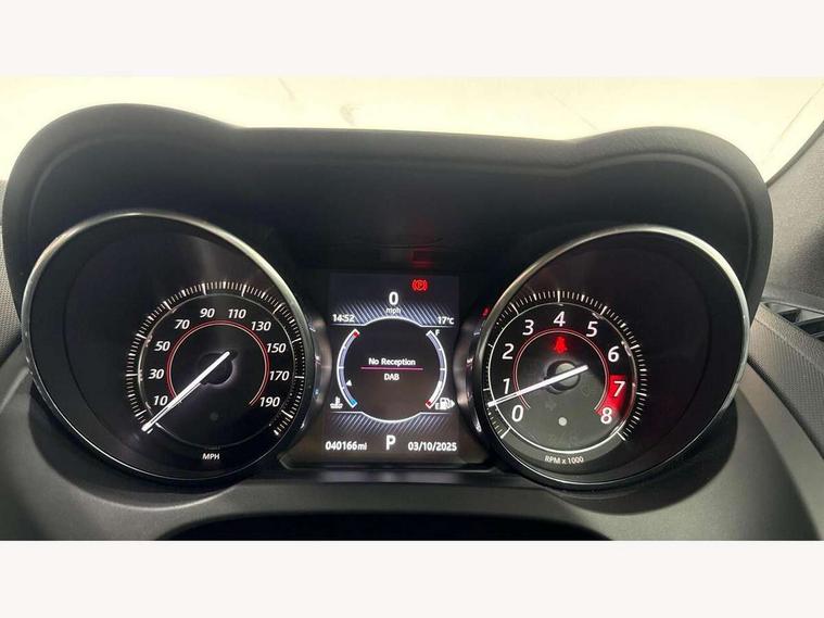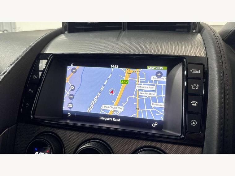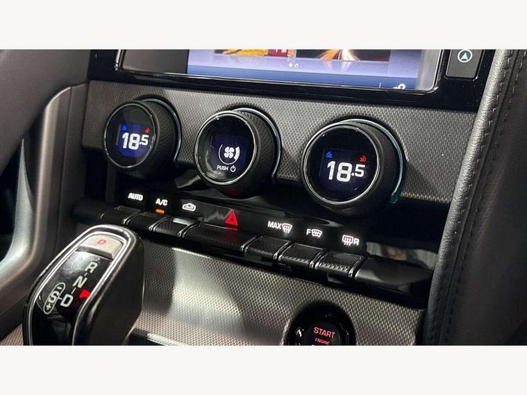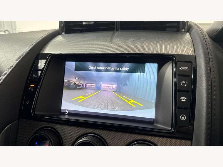 8" touch screen, Bluetooth telephone connectivity, InControl remote premium, Mobile App interface, Navigation system, PAS, Rear parking aid with visual display, Trip computer, Sports suspension, Audio remote control, DAB Digital radio, InControl app, USB/aux input socket, Auto dimming rear view mirror, Automatic headlights, Bi-Xenon headlights with LED day running lights, Body coloured bumpers, Bonnet louvres, Electric adjustable heated door mirrors, Electric front windows, Headlight washers, LED tail lights, Rain sensor windscreen wipers, Satin black grille, Tinted glass, Twin exhaust pipes, 12V socket in glovebox, 2 X front 12v power sockets, Air vents on dashboard, Front centre armrest, Front cupholders, Front headrests, Jaguar sense, Leather door trim, Lumbar support, ABS + EBD + EBA, Driver/Front Passenger airbags, DSC - Dynamic Stability Control, Dynamic mode, Electronic parking brake, Front/rear seatbelt pre-tensioners, Pass airbag/seat occupancy detector, Passenger airbag off kit, Pedestrian contact sensing and deployable bonnet, Seatbelt reminder for driver and front passenger, Side airbags, Tyre pressure monitoring system, Deadlocks, Drive away door locking, Engine immobiliser, Keyless Start, Locking wheel nuts, Perimetric and volumetric anti theft alarm, Remote central locking, Two stage unlocking, Valet mode,