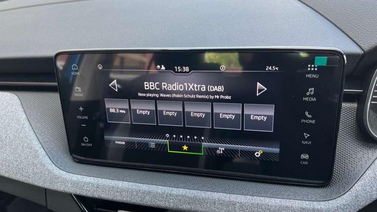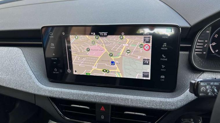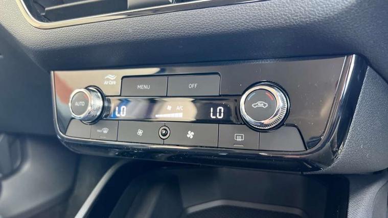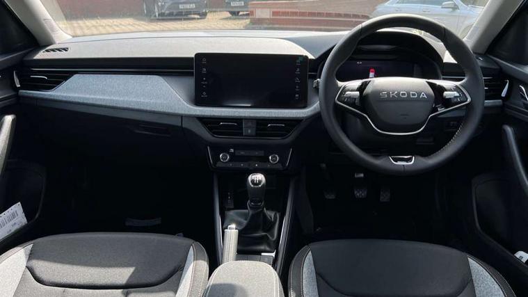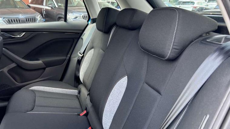 Advanced driver attention and drowsiness monitor, Bluetooth system, E-call, Front assist system, PAS, Rear parking sensors, Rear view camera, Service indicator, Speed limiter, Traffic sign recognition, Virtual cockpit with 10.25" display, Wireless smartlink, 4 USB C ports, 8 Speakers, 9.2" Skoda navigation display, DAB Digital radio, Auto dimming rear view mirror, Automatic headlight control with coming home and leaving home feature, Black roof rails, Body colour bumpers, Body colour door mirrors and handles, Chrome grille surround, Front and rear electric windows, Full LED headlights, Heated rear window, LED brake lights, LED daytime running lights, LED front turning lights, LED high beam, LED low beam, LED third brake light, Rear LED fog light, Rear side wing doors, Rear wiper, Ticket holder inside windscreen, 12V socket in luggage compartment, 3 seat bench in 2nd row, Black hotstamping, Cargo elements, Chrome inner door handles, Driver and passenger sun visors with vanity mirror, Dual zone climate control, Front and rear roof lights, Front centre armrest, Front head restraints, Glove compartment with illumination, Height adjustable driver seat, Height adjustable front passenger seat, Ice scraper, Inner circulation control with pollen filter, ISOFIX on front passenger seat, Isofix preparation for back seats, Krepp recycled decor inserts, Leather gearknob and handbrake lever, Loft cloth upholstery, Manual lumbar support for front seats, Net package and top tether hooks in boot space, Net under rear shelf, Overhead glasses storage compartment, Pocket on the back of both front seats include mobile phone pockets, Rake/reach adjustable steering wheel, Reading lights, Satin black door inserts, Single front passenger seat, Textile floor mats, Third rear headrest, Top tether for front passenger seat, Umbrella in driver's door, 3x3 point rear seatbelts, Airbags - driver and front passenger, Disc brakes, ESP, Extended and predictive pedestrian/cyclist protection, Front passenger airbag deactivation switch, Front side airbags with curtain airbags, Hill hold control, Manual leather parking brake, Manual rear child locks, One tone horn, Seatbelt reminder for driver an co-driver, Traction control, Tyre pressure monitor, Anti-theft alarm system with interior monitoring, backup horn, towing protection and remote central locking with SAFE system, Anti-theft wheel bolts, Electronic engine immobilizer,