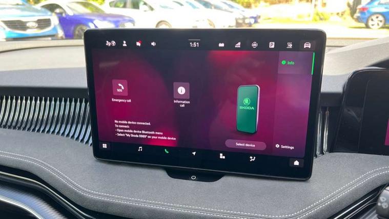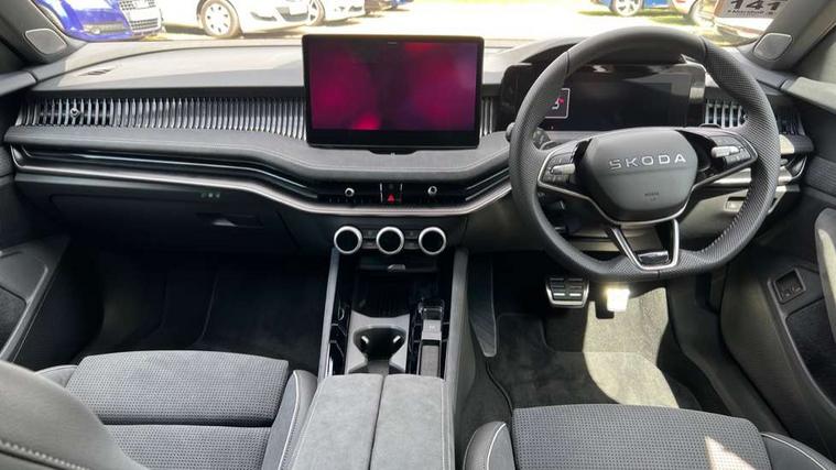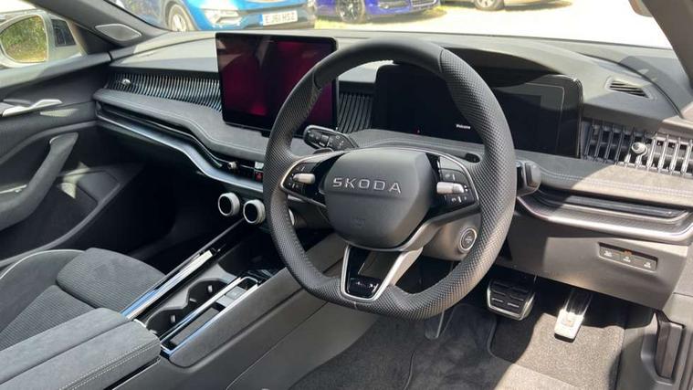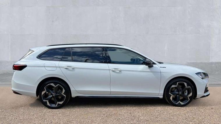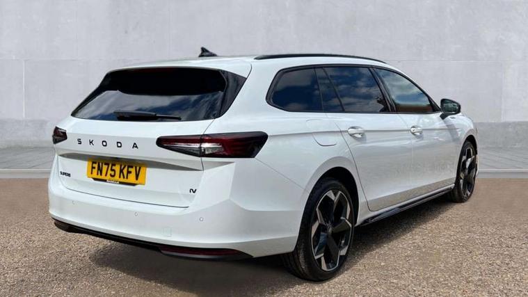 13" touchscreen display with satellite navigation, 4x USB-C ports (2x in front centre console and 2x in rear) (45W), Adaptive cruise control with speed assist, lane assist plus and traffic tram assist, Blind spot detection with door exit warning, Bluetooth system, CareConnect and Emergency Call, ChatGPT functionality, Drive mode selection, Driver fatigue sensor, Front assist with extended predictive pedestrian protection, Front cross traffic assist, PAS, Quick start all heating software functionality, Stop/start engine system, Traffic sign recognition, Turn assist with evasive assistance, Virtual Cockpit - 10.25" digital display, Voice control system, Washer for rear camera, Wireless charging for one smartphone (15W) with cooling function, Wireless smartlink apple carplay, SmartLink+ android auto, Dynamic chassis control plus with progressive dynamic steering, Mode 3 charging cable, DAB Digital radio, Display cleaner, FM radio connection, Web radio connection, Acoustic side windows and interior noise suppression, Backdrop lighting, Black exterior styling window and grille surrounds, Black roof rails, Body colour door handles, Dynamic range control with poor weather light and integrated fog light, Electrically adjustable, heated, folding and driver side auto-dimming door mirrors with memory function, integrated indicators and logo projection, Frameless auto-dimming rear view mirror with USB-C, Gloss black door mirrors, Ice scraper in fuel tank cap, LED 3rd brake light, Light assist with High beam control, Light assistant (coming/leaving home/tunnel light), Privacy glass, Rear fog lights (x2), Rear roof spoiler, Rear side wing doors, Rear windscreen wiper, Skoda lettering in black, Sportline badging, Sports bumpers, Windscreen wipers with rain sensor, 12V socket 1x centre console 1x boot, 14-way electrically adjustable, memory, front seats with 4-way pneumatic lumbar support, and extendable thigh support with smart comfort entry aid, 2x cargo elements in boot, 2x light in boot, 3 seat bench in 2nd row, 4x foldable bag hooks in boot, 60:40 Split folding rear seats, Aluminium pedals, Bottle holders in the front doors 1.5 litre bottle and rear 1.5 litre bottle, Cup holder in front with easy open mat, Front armrest with storage box, Front sports seats, Heated and ventilated front seats, Height adjustable front and rear head restraints, Illuminated glovebox, Interior lights with control switches, Isofix child seat fittings in outer rear and front passenger seats, LED front and rear reading lights, Single front passenger seat, Skoda lettering on steering wheel, Storage compartment with cover, Storage pockets on back of front seats, Sun visors with illuminated vanity mirrors, Ticket holder on A Pillar, Tri zone climate control, Umbrella in driver's door, Light and view package - Superb, Transport package - Superb Estate, 3 rear seatbelts, 8 Airbags - Front driver and passenger, front side driver and passenger, centre, curtain front and rear, drivers knee, Crew protect assist, Driver and passenger seatbelts with warning light, Electronic parking brake, ESC including ABS, EBV, MSR, ASR, EDS, HBA, DSR, RBS, CBC, multi-collision brake (MKB) and Auto hold, Hill hold assist, Power operated child lock in rear doors, Alarm with interior monitoring tilt sensor and back up horn, Backrest remote release from trunk, Electronic engine immobiliser, Keyless start/stop, Remote central locking with SAFE system, Third key, Walk away locking, Decorative front door sills, 19" Torcular polished black alloy wheels with anti theft wheel bolts, Tyre repair kit,