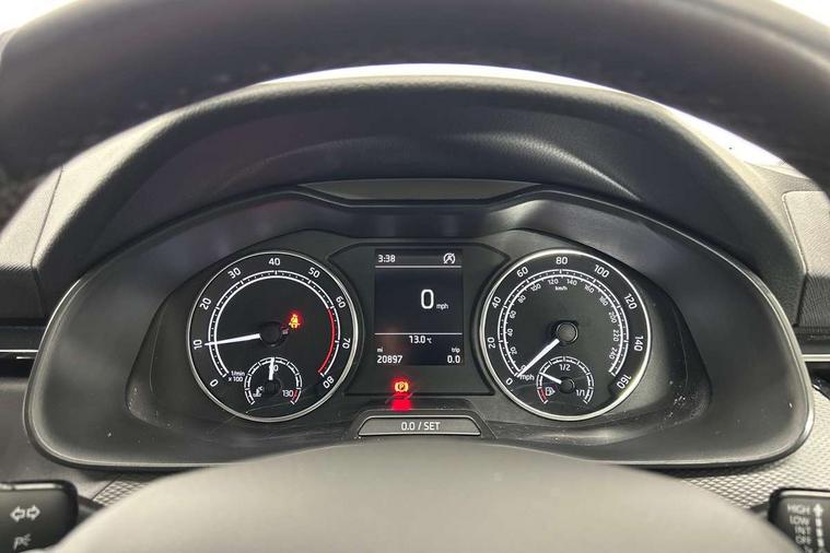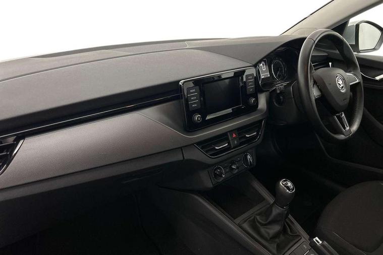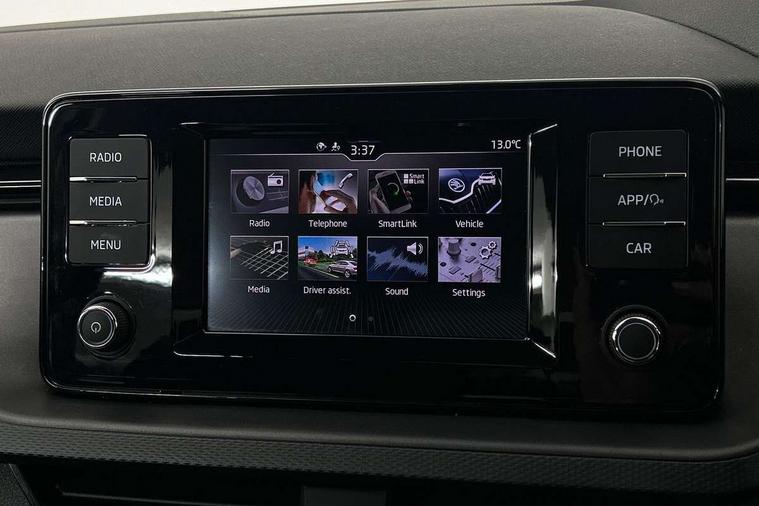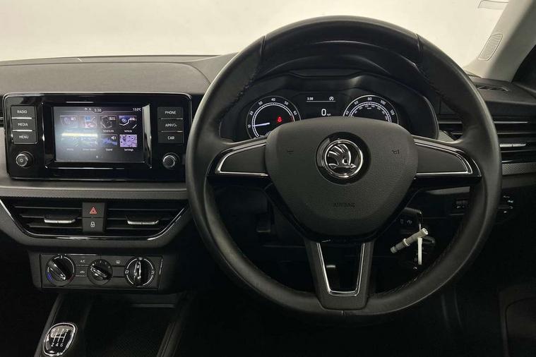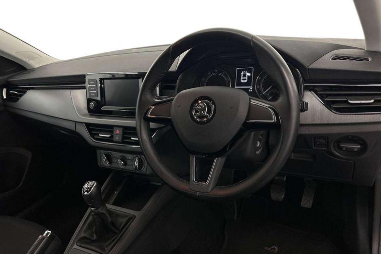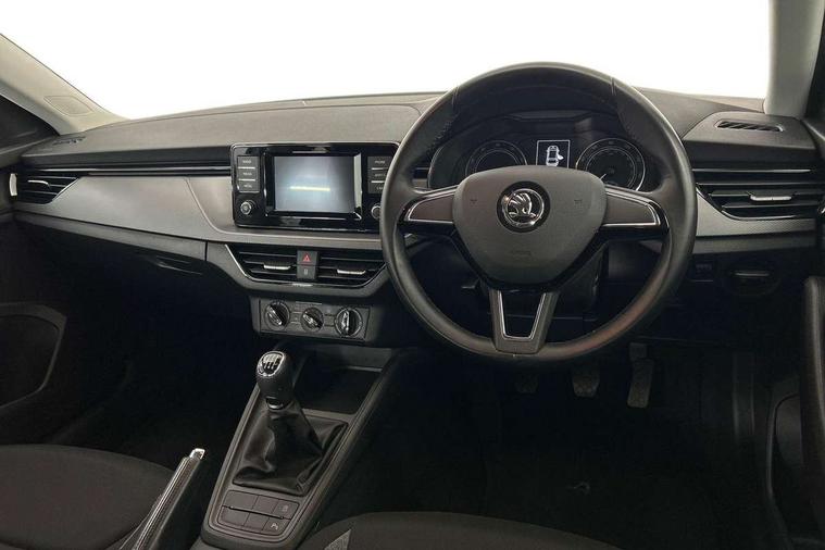 Bluetooth system, Easy light assist, Front assist system, Lane assist, Multi function trip computer, PAS, Speed limiter, 2 USB - C ports, 4 speakers, DAB Digital radio, Radio Swing with 6.5" colour display, Basic LED headlights with LED daytime running lights, Body colour door mirrors and handles, Chrome grille surround, Electrically adjustable and heated door mirrors, Front and rear electric windows, Tinted windows, 12V Accessory socket in centre console, Chrome inner door handles, Cloth upholstery, Front head restraints, Height adjustable drivers seat, ISOFIX for rear passenger seat, Leather gearknob and handbrake lever, Leather steering wheel, Manual air conditioning + Pollen filter, Third rear headrest, 3x3 point rear seatbelts, Curtain airbags, Emergency call and proactive services, Front head and side airbags, Hill hold control, Passenger airbag switch off function, Seat belt reminder for all seats, Two tone horn, Anti-theft wheel bolts, Remote central locking with 2 remote folding keys, Grained black decorative insert with black hot stamping, 16" Alaris alloy wheels, Temporary space saver wheel,