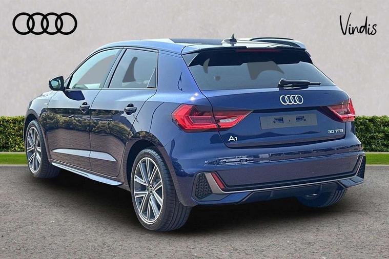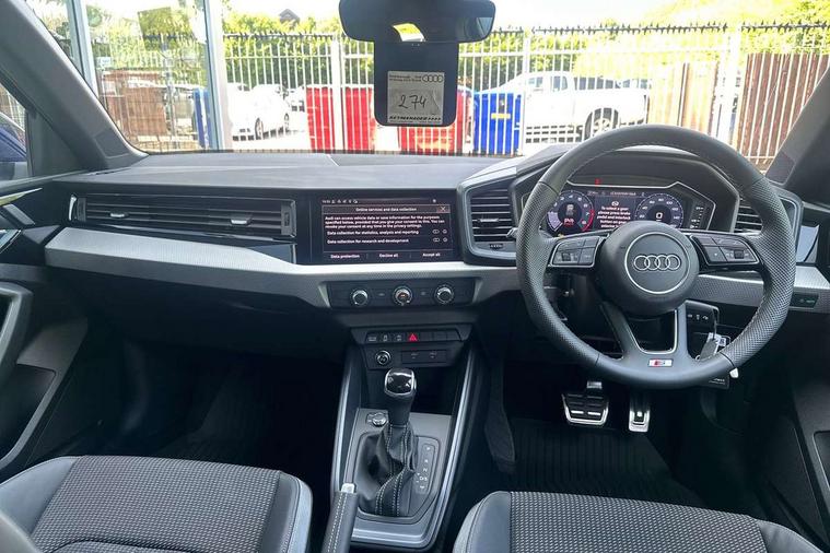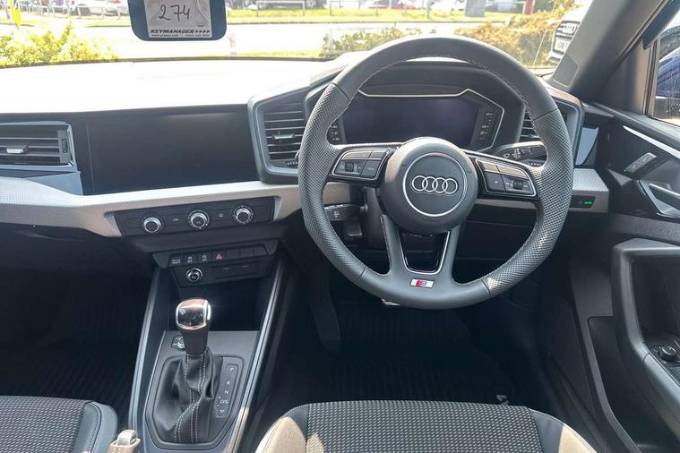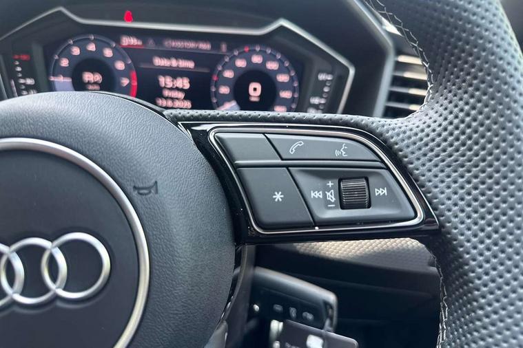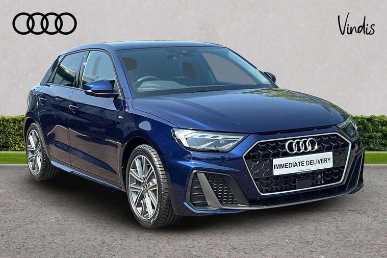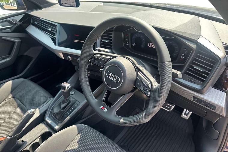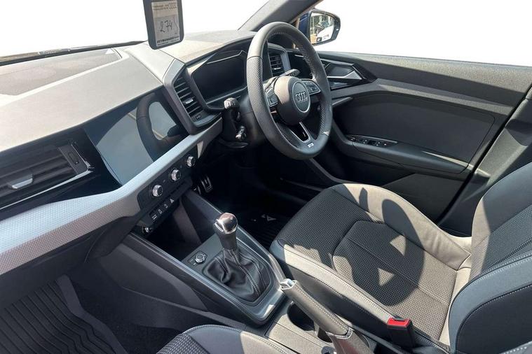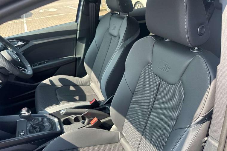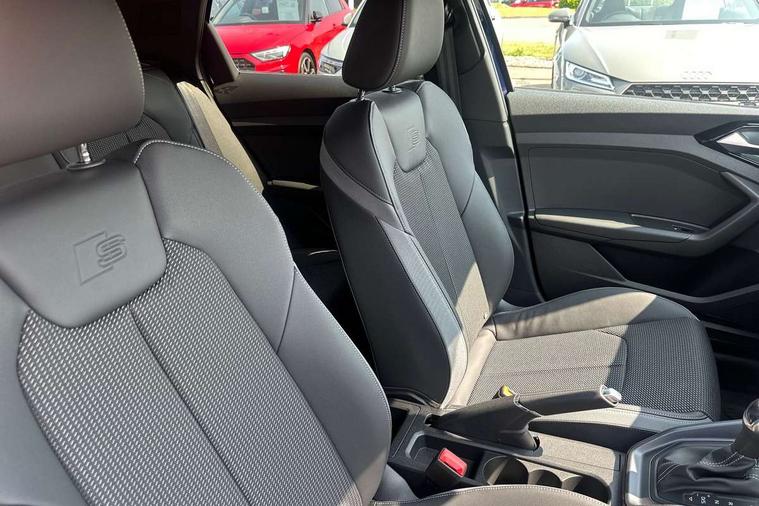 10.25" Digital instrument cluster display classis style instrument dials + speed, odometer, time, outside temperature, telephone menu + fuel level warning, Advanced driver attention and drowsiness monitor, Audi connect emergency call and service, Audi drive select, Audi remote connect and control, Audi smartphone interface, Bluetooth interface, Camera based traffic sign recognition, Cruise control, Driver's information system, Electromechanical power steering, Lane departure warning system, Rear parking sensor, Service interval indicator, Speed limiter, Start stop system with recuperation, Voice control system, Washer fluid level indicator, Sports suspension, 2 x USB type C connection points, 6 loudspeakers, DAB Digital radio, MMI radio plus with 10.1" colour MMI display screen and MMI touch, Auto dimming rear view mirror, Body coloured door mirrors, Door sill trims with aluminium inlays and S line logo in front, Electric front and rear windows, Electrically adjustable, heated, folding door mirrors with integrated LED side indicator, Front side air inlets in grained matt black and C frame in anthracite black, Headlight cleaning system, Heat insulating glass windscreen and side windows, Heated rear windscreen, High level LED brake light, LED daytime running lights, LED headlights with range control LED rear lights + dynamic rear indicators, Light and rain sensors, Privacy glass, Radiator grille and rear diffuser in matt anthracite black, Radiator protective grille frame in matt aluminium silver, Rear fog lights, Rear side wing doors, Rear wiper, S line badges on front wings, Side front spoiler lips in grained matt black, 12V socket in centre console with two cup holders, 3 rear seats with headrests, 3 seat bench in 2nd row, 3 spoke leather multi-function plus steering wheel features S badging and grips in perforated leather with contrast stitching, 40:60 Split folding rear seat or fully collapsed, Black cloth headlining, Front and rear velour black floor mats with contrast stitching in fine silver, Front head restraints, Front passenger seat, Height and reach adjustable steering wheel, Interior lighting includes roof module, front and rear reading lights and right luggage compartment lighting, ISOFIX child seat mounting for front passenger and outer rear seats including top tether attachment point of outer rear seats, Leather gear knob with aluminium trim, Leather handbrake grip, Manual air conditioning, Manual height adjustable for driver and front passenger seat, Manually adjustable lumbar support in front seats, Stainless steel pedals, Ambient lighting package - A1, Luggage compartment pack - A1, S line exterior styling pack - A1 Sportback, 3x3 point rear seatbelts, Audi pre-sense front with pedestrain and cyclist recognition, Brake assist function, Driver and front passenger airbag with front side and head airbags, Electronic Stability Control including ABS, EBD, ASR and EDL, Front passenger airbag deactivation switch, Hill hold assist, Manual rear child locks, Seatbelt height adjustment for front seats, Seatbelt monitoring, Tyre pressure loss indicator, Warning triangle and first aid kit, Anti theft alarm, Anti theft wheel bolts, Immobiliser, Remote control key with safelock, Aluminium trim for control switches, air vents and digital instrument cluster, Black dashboard, Silver grey inlays polygon structure in diamond paint finish, Structured grey accent surfaces insert of air vents, interior door handle recesses and centre console in quartz paint finish,