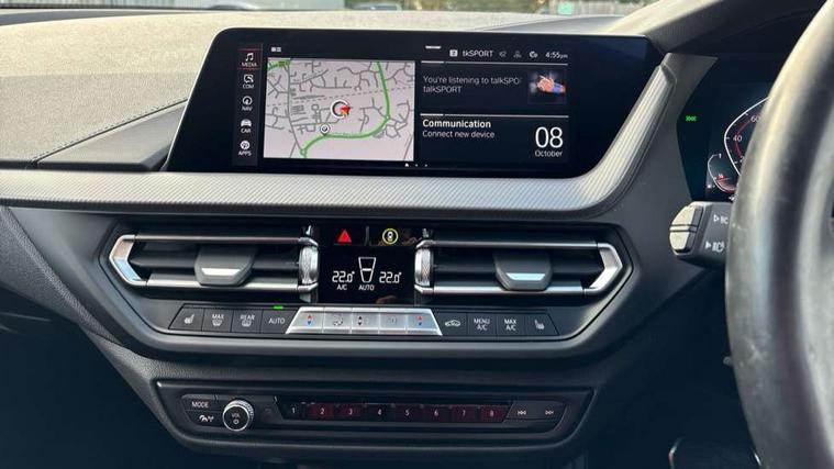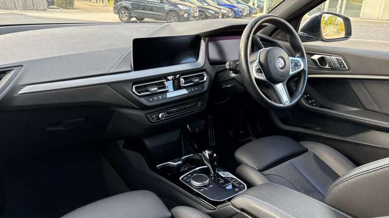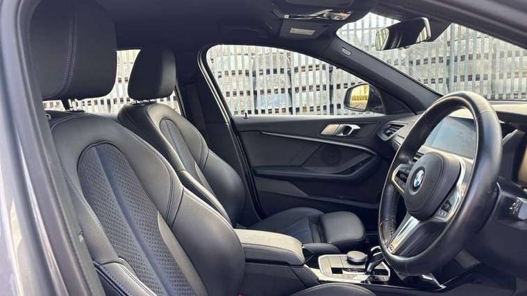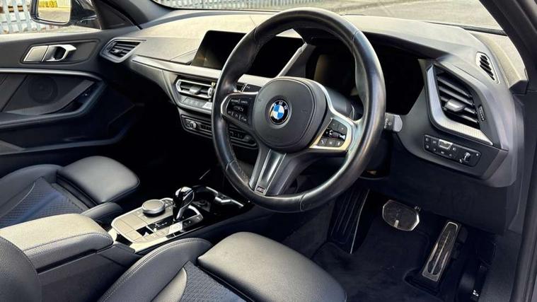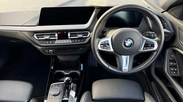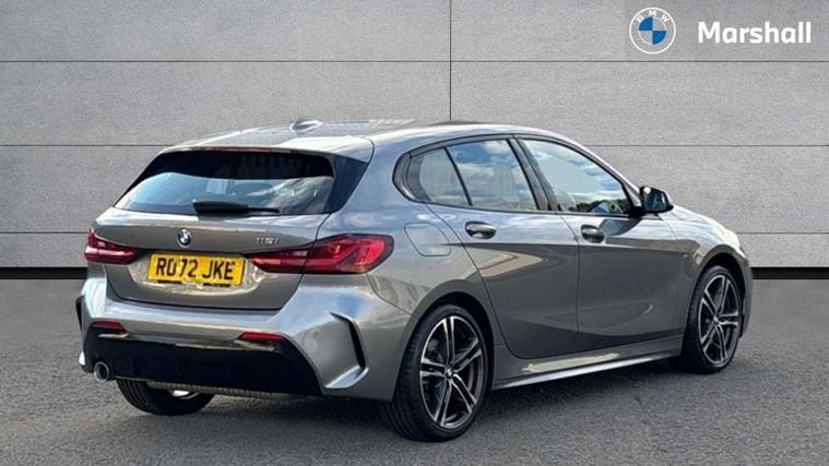 Active guard plus, Attentiveness assist, BMW ConnectedDrive online services, BMW Teleservices, Check Control warning system for monitoring of lights and door/luggage compartment open warning, Cruise control with brake assist, Eco pro mode, Front axle single joint with specific axle kinematics to minimise drive influences on steering + provide increased rigidity agile driving behaviour, Integrated owners handbook, Lane departure warning system, Oil sensor for level and grade, On board computer, Optimum shift indicator, Personal Profile, Pull away assistant, Rigidly mounted rear subframe - Multi link construction with separate spring / damper configuration and excellent driving characteristics, Speed limit Info including no-overtaking indicator, Speed limiter, Aluminium lightweight construction, Anti roll bar front and rear, Balancer shaft, Double VANOS twin scroll turbocharging system, Drive Performance Control, Electronic differential lock, High precision injection, M sport suspension, Petrol Particulate Filter, Twin tube gas filled shock absorbers with degressive characteristic curve, VALVETRONIC engine management, DAB Digital radio, Auto dimming rear view mirror, Automatic headlight beam throw control, Automatic windscreen wipers and automatic headlight, Body colour door handles, Body colour mirror caps, Body colour roof trims, Chrome 'M' logo side designation, Chrome exhaust twin tailpipes round 90mm in left, Chrome kidney grille frame with Satin Aluminium struts, Direction indicator side lights in exterior mirrors, Fading support, Folding side mirrors with auto dimming/folding wing mirrors with auto dimming, Follow me home headlights, Front and rear bumper system with replaceable deformation elements, Front and rear electric windows with open and close fingertip control, anti trap facility and comfort closing, Front door sill finishers in black plastic with M designation in metallic look, Green tinted heat protection glazing, Heated, electrically adjustable exterior mirror aspheric on driver side, convex on passenger side, High gloss shadowline window frame, Recess cover mirror frames and B/C pillar embelisher trim, High level third brake light, Integrated front windscreen with washer jets, LED daytime running lights, LED eyebrow turn indicators, LED front fog lights, LED Headlights, Lightweight engineering, Matt black air guide grilles, Matt black wheel arch trim, Model designation on electric bootlid, Nearside reverse light in rear light cluster, Preparation for high beam assistant, Rear fog lights, Rear side wing doors, Rear window wiper, Shark fin antenna, Trailer stabilisation logic, Visible VIN plate, Welcome lighting, 12V power socket in front centre console with blanking plug, 3 rear seat head restraints, 3 seat bench in 2nd row, 3 spoke sports leather steering wheel with black leather and stitching, pearl chrome decorative finish, specific M Badge, Anthracite headlining, Black boot net with lashing eyes, Cargo function on 2nd seat row, Child seat ISOFIX attachment for two outer rear seats and front passenger seat with anchorage points, Conditioned based service, Driver and front passenger seat heating, Folding rear clothes hook, Four grab handles integrated in roof lining, Front and rear door pockets with bottle holders, Front and rear side armrest integrated into door trim, Front armrest, Front sports seats, Glove compartment, Height adjustable front head restraints, Luggage compartment for bag hooks on left and right, foldable luggage compartment liner and four lashing eyelets, Manual adjust steering wheel, Multi-function controls for steering wheel, Single front passenger seat, Storage compartment in centre console, Sun visors with vanity mirrors and insert tab, Two front centre console cupholders, Two zone automatic air conditioning, Velour floor mats, Additional interior lighting pack - 1 Series, BMW live cockpit professional pack- 1 Series, Connected pack professional - 1 Series, Interior lights pack - 1 Series, M Sport exterior styling aerodynamics pack - 1 Series, 2 tone horn, 3 point seatbelts on all seats, front pyrotechnic belt tensioners, stopper and belt force limiters, rear coded belt buckles, Airbags - Front driver/passenger, front and rear curtain head protection, front side, manual deactivation of front passenger airbag, Anti lock braking system (ABS) with brake assist, BMW emergency call, Brake drying, Braking readiness, Child proof locking system in rear door, City braking function, Comfort modes, Cornering brake control, Crash sensor activating central locking release, hazard warning lights, fuel cut off, interior lighting + activation of safety battery terminal clamp, Driver and front passenger seat belt security check, Dynamic stability control + (DSC+), Dynamic Traction Control - DTC, Electrically operated hand brake including automatic hold function, Front and rear disc brakes, Seatbelt warning, Side impact protection, Tyre pressure monitoring system, Warning triangle and first aid kit, Central locking switch for all doors, fuel filler cap and luggage compartment, Deadlocking function system to all doors, Drive away locking system on all doors and luggage compartment with de-activated in iDrive settings, Locking wheel bolts, Remote control with integrated key with High-gloss Black inlay and M designation and 1 button for open/ close lock, window, open luggage compartment, Start/stop button illuminated in centre console with keyless engine start and auto start stop deactivation button, Thatcham Cat.1 alarm and immobiliser, Wheel slip limitation close to the actuator (ARB), Contrast stitching on instrument panel, Electrically powered 12V compressor, Reduced rolling resistance tyres,