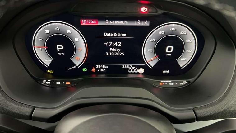 3D map display, Audi connect navigation and infotainment includes innovative services, Audi connect remote and control connects your vehicle to your smartphone, Audi drive select: S tronic - power steering assistance + engine + gearshift (modes: comfort, auto, dynamic, efficiency, individual), Audi smartphone interface - Apple carplay/Android Auto, USB connect, 2xSDXC card readers, voice control for navi, telephone, music and 3rd party apps, Audi virtual cockpit, Automatic start/stop system with recuperation, Bluetooth interface includes bluetooth audio streaming, Camera based traffic sign recognition, Cruise control, Distraction and Fatigue warning, E-call, Jukebox hard drive memory for music (10GB), Lane departure warning, MMI navigation plus with 8.8" touchscreen, Natural voice recognition, Power operated tailgate, Progressive steering, Rear parking sensors, Sport suspension, 6 passive loudspeakers, DAB Digital radio, USB type C port, Audi beam, Auto dimming rear view mirror, Black window trims, Bumper in full body colour paint finish, Electrically adjustable, folding, auto dimming and heated door mirrors with integrated LED side indicators, Front windscreen with grey tinted sunband, LED daytime running lights, LED headlights with dipped beam, high beam, position lights, indicators, LED rear lights, LED third brake light, Privacy glass - dark tinted rear and rear side windows from B-pillar backwards, Rear side wing doors, Rear wiper, Variable front intermittent wipers, Wheel arch trims in manhattan grey, 12v socket in front, 3 seat bench in 2nd row, 3 spoke flat bottomed multi-function leather sport steering wheel with gear shift paddles, 4-way electric lumbar support for front seats including manual seat height adjustment for both front seats, 60/40 split folding rear seat bench, Black carpets, Black cloth headlining, Front and rear head restraints, Front centre armrest, Front sport seats, Front/rear floor mats, Height/reach adjust steering wheel, Illuminated door sill trims with S logo, ISOFIX child seat mounting in front passenger and rear outer seats, Manual air conditioning, Single front passenger seat, Stainless steel pedals, Black styling pack - Q2, 3x3 point rear seatbelts, 6 airbags - Front, curtain and front side airbags, Electromechanical parking brake, Electronic stabilisation control including ABS, ASR and EDL, Front passenger airbag deactivation, Hill hold assist, Pre-sense front with pedestrian recognition, Seatbelt monitoring, Tyre pressure warning light with visual and acoustic warning, Warning triangle and first aid kit, Anti theft alarm, Anti theft wheel bolts, Electronically operated child locks, Remote central door locking, Aluminium interior element, Black dashboard, Gloss black centre console, Matt brushed aluminium trim inlays, Tool kit,