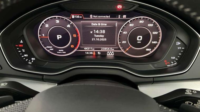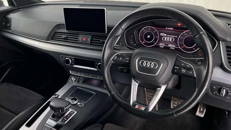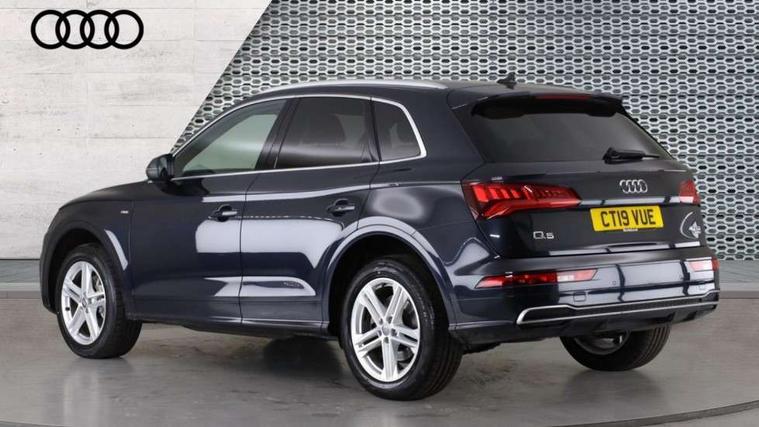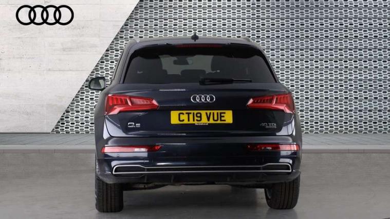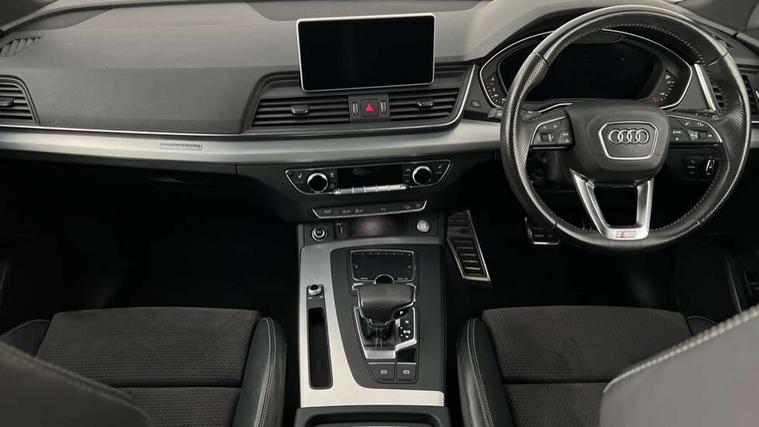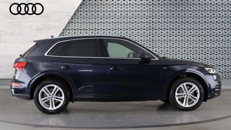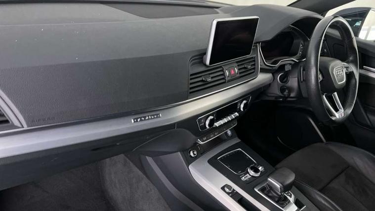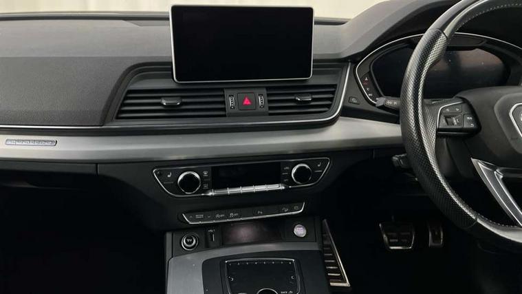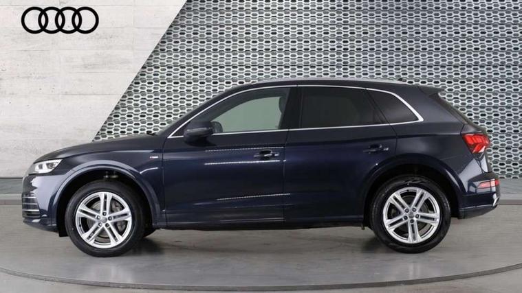 Matt brushed aluminium inlays, High gloss pack - Q5, LED interior light pack - Q5, Non Smokers pack, Anti theft alarm, Anti-theft wheel bolts, Keyless Go access/ignition system, Remote central locking, 2x SD card slot, CD player, DAB Digital radio, MMI radio plus with 7" colour MMI screen and MMI controller, 3 point seatbelts on all seats, 6 airbags - Driver, front passenger, curtain and side airbags, Electromechanical parking brake, Electronic stabilisation control including ABS, ASR and EDL, Front passenger airbag deactivation, Hill descent control, Hill hold assist, Multi collision brake assist, Pop-up bonnet for pedestrian protection, Pre sense city, Seat belt force limiter, Seatbelt monitoring, Tyre pressure warning, Warning triangle and first aid kit, Acoustic windscreen, Air inlets in matt titanium black with blades in matt aluminium silver, Aluminium roof rails, Auto dimming rear view mirror, Automatic headlight levelling, Body colour bumpers, Body colour door mirrors, Body colour rear diffuser with matt aluminium silver surrounds, Body colour S Line side skirts, Body colour underbody protection, Chrome exhaust tailpipe, Electric adjustable/heated/folding door mirrors, Front and rear electric windows, High beam assistant, LED headlights with LED rear lights + dynamic rear indicators, Light and rain sensor for auto activation of lights and windscreen wipers, Loading sill protector in stainless steel, Privacy glass with front acoustic glazing, Rear wiper, S Line badges on the front wings, S Line front bumper, S Line rear bumper, S Line rear spoiler, Twilight grey matt radiator grille with matt aluminium horizontal chrome struts, 2 x USB charging port with aux input socket, 3 rear headrests, 3 zone climate control, 40:20:40 split folding rear seat with rear centre armrest, Black cloth headlining, Contrast stitching on seats, steering wheel and gear lever gaiter, Front centre armrest, Front sport seats with S embossed logo, Front sports seats, Front/rear floor mats, Heated front seats, Height adjustable front head restraints, Height/reach adjustable steering column, Illuminated door sill trims with S logo, ISOFIX child seat mounting and top tether, Luggage compartment carpet, Manual seat adjustment with 4-way electric lumbar support, Perforated leather gearknob, Removable luggage compartment floor, Stainless steel pedals, Sunvisors with vanity mirrors, Tool kit, Trunk roller cover, 7" Colour driver information system, Audi connect infotainment services, Audi connect safety and service (e-call), Audi drive select, Audi parking system plus with front and rear sensors, Audi smartphone interface, Automatic start-stop system with coasting functionality and efficiency programme, Electro - mechanical power assisted steering, MMI Navigation, Mobile telephone preparation - bluetooth interface, Power tailgate, Service interval indicator, Voice control system, Diesel particulate filter, Dynamic suspension, Quattro on demand,