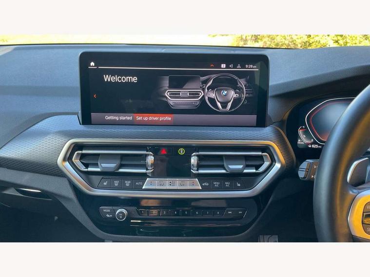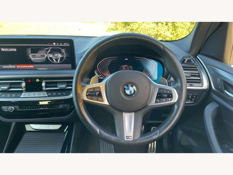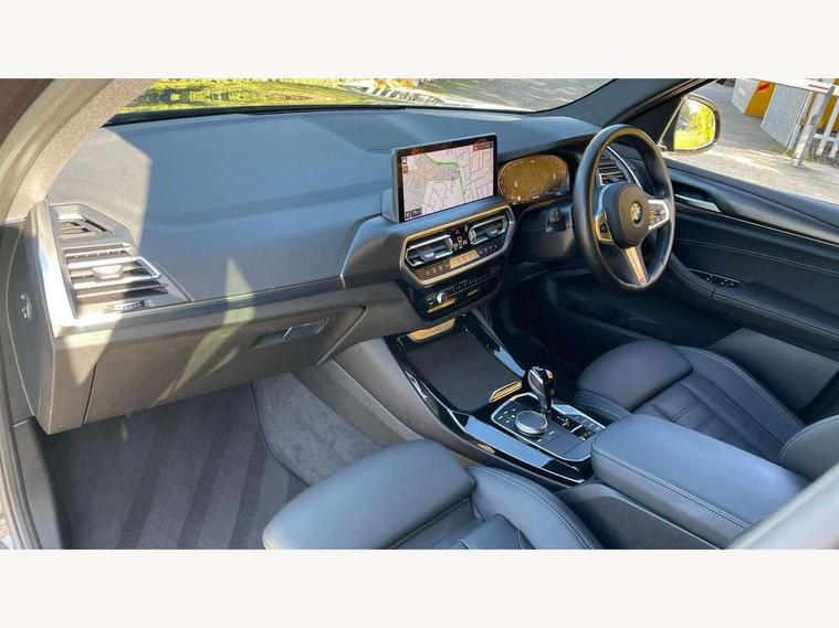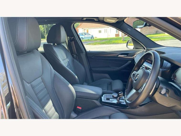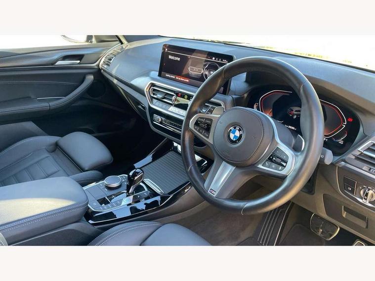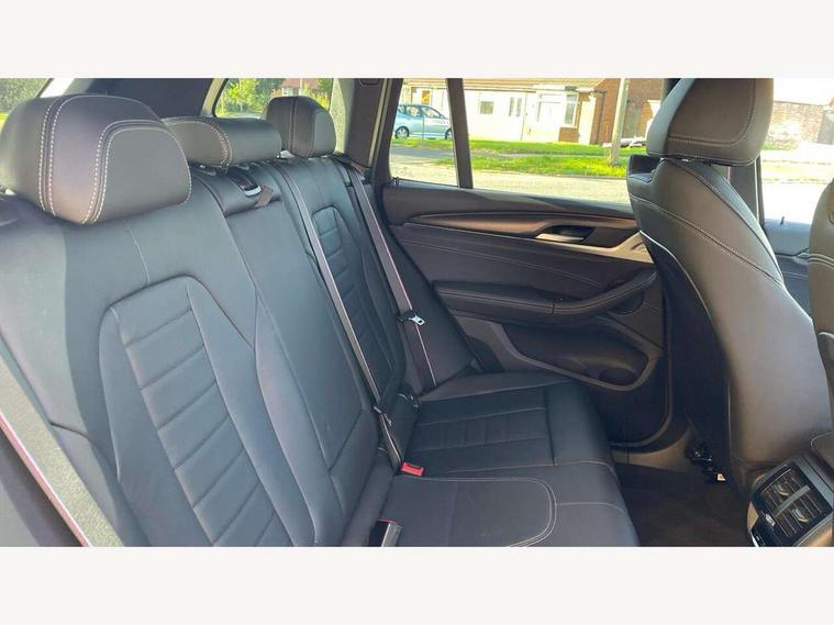 Active Guard, Attentiveness assist, BMW Live Cockpit Professional nav system including 12.3" instrument display + 12.3 high resolution control display, BMW Online services, BMW Teleservices, Brake pad wear indicator in front and rear, Check Control warning system for monitoring of lights and door/luggage compartment open warning, Condition based service - BMW service history, electronic service booklet, integrated owner's handbook, Connected drive services, Electric boot lid, Front/rear Parking distance control, iDrive touch controller with 8 favourite buttons, Instrument cluster with speedometer with mph readout, tachometer, fuel gauge and oil temperature gauge, Lights on warning by audio warning signal when ignition is switched off, Oil sensor for level and grade, warning by check control system, On board computer - average speed+fuel consumption, service interval, clock/date, odometer/trip meter, outside temperature display and ice warning, Optimum shift indicator, Personal Profile - automatic lock when driving away selectable, Run flat indicator, Stop/start system, Variable sports power steering with drive performance control Sport+ mode, Automatic transmission with gearshift paddles, Diesel particulate filter, Incorrect fuelling protection, Larger capacity fuel tank, M sport suspension, Multi-link rear suspension, BMW professional radio/CD/MP3, DAB tuner, Acoustic glazing, Automatic windscreen wipers and automatic headlight, Black finish on B pillars, Body colour door handles, Body colour electric adjust heated aspherical door mirrors, Body colour roof mouldings, Body coloured bumpers, Direction indicator, side repeaters, integrated in exterior mirrors, Dynamic brake lights, Exhaust tailpipes - dual, round, split left and right with chrome finisher, Fingertip control / anti-trap function on electric window, Folding wing mirrors with auto dimming, Follow me home headlights, Front and rear bumper system with replaceable deformation elements, Front and rear electric windows, Gloss chrome tailpipes finishers, Green tinted heat insulating glass, Heated windscreen washer jets, High beam assistant, High gloss black shadow line roof rails, High gloss shadowline exterior trim in decorative moulding side frame/recess cover/guide rail/B, C pillars/mirror frame and triangle with mirror base, High level 3rd brake light incorporating LED Technology, Interior rear view electrochromatic mirror with automatic anti dazzle function, LED tail lights, Lightweight engineering, M aerodynamic bodystyling, M Sport entry door sill strips, Model designation, Rain sensor, Rear side wing doors, Rear wing door, Rear wiper, Shark fin antenna, Side exterior M designation badges, Visible VIN plate, Welcome lighting, Windscreen wipers with adjustable interval, 12V power point in luggage area, 12V power socket in front centre console, 2 x USB Type C ports for charging and data transmission (front centre console) and 2 x USB Type C ports for charging (rear centre console), 3 rear headrests, 3 seat bench in 2nd row, 3 zone automatic air conditioning, 4 lashing points to secure luggage, 40:20:40 split folding rear seat with loading system, Ambient lighting, Anthracite headlining, Automatic interior light when door is opened/ignition switched off or via remote key, Floor mats in velour, Foldable storage floor with compartment, Four grab handles integrated in roof lining, Front and rear bottle holders integrated into door trim storage compartments, Front and rear side armrests integrated into door trim, Front centre armrest with storage compartment, Front footwell lights, Front head restraints, Front passenger seat, Front sports seats, Front/rear courtesy lights with soft on/off dimming, Front/rear reading lights, Heated front seats, Isofix rear child seat preparation, Leather gear knob, Lockable glove compartment, Luggage area underfloor compartment, Luggage compartment lighting, M sport leather steering wheel, Multifunction steering wheel, Parcel shelf removeable and storable under boot floor, Reach and rake adjustable steering column, Rear centre armrest with 2 cupholders, Removable / retractable luggage cover, Slope adjustable rear seats, Storage compartment in rear centre console and front/rear door trims, Sun visors with vanity mirrors and ticket pocket, Toolkit located in luggage compartment, Two front cupholders with removable oddments tray/lid, Connected pro pack - X3, ADB - Automatic Differential Brake, Anti-lock braking system (ABS) with brake assist, Automatic Stability Control (ASC), Battery safety cut-off, BMW emergency call, Brake drying, Brake energy regeneration, Braking pre-tensioning, Child locks on rear doors, Cornering brake control (CBC), Crash Sensor - activation of central locking release, hazard warning light and interior lighting, Deactivation of fuel pump in the event of a crash, Driver and front passenger front and side airbags with passenger deactivation and ITS front and rear head airbags, Driver and front passenger knee airbag, DSC+, Dynamic brake control, Dynamic Traction Control - DTC, Electromechanical parking brake, Hill descent control, Hill start assist, Seatbelt security check for front seats, Side impact protection, Three point seatbelts to all seats with front and outer rear pyrotechnic belt tensioners and seat belt force limiters, Two tone horn, Tyre pressure sensor, Ventilated front and rear disc brakes, Warning triangle and first aid kit, Central locking switch for all doors, fuel filler cap and luggage compartment, Electronic engine immobiliser, Locking wheel nuts, Remote control including two integrated key - one button for open/close all lockable content, windows and separate button for open luggage compartment, Remote control Thatcham category 1 alarm, Start/stop button with Comfort Go keyless engine start and auto Start/stop deactivation button, Low rolling resistance tyres,