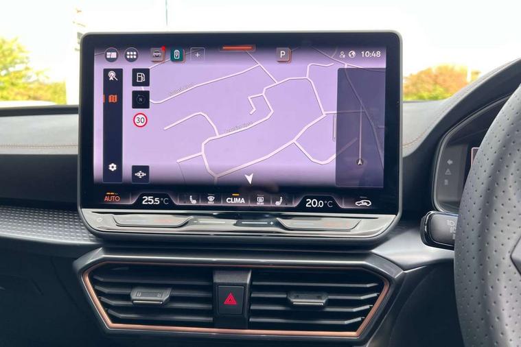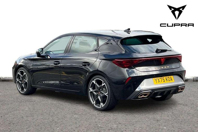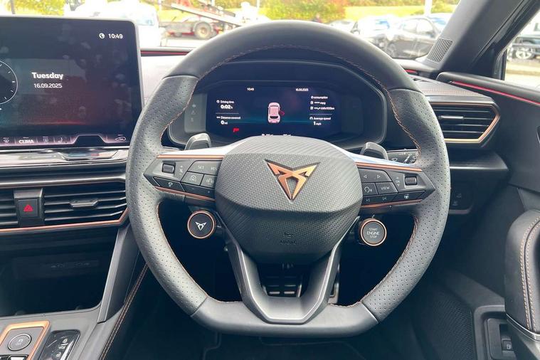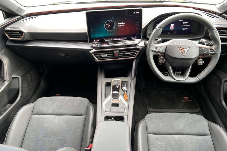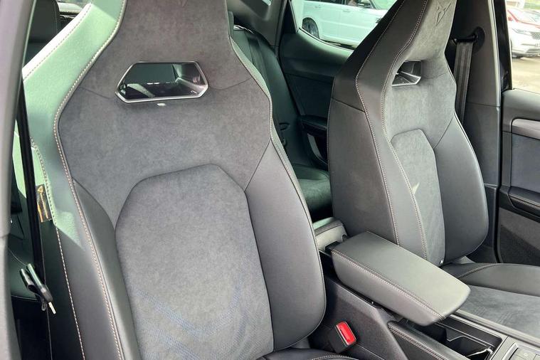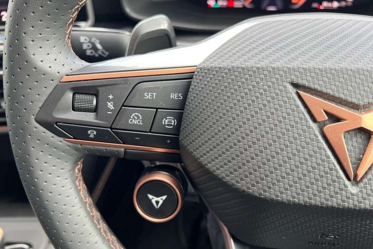 Adaptive cruise control with follow-to-stop and speed limiter, CUPRA drive profile selection with (Comfort/Sport/Individual), throttle response and gearshift mode, Digital cockpit, Dynamic road sign display, E-call, Four x USB Type C ports (2 in front and 2 in rear), Front and rear parking sensors, Front assist with forward collision warning braking reaction to vehicles, pedestrians and cyclists, Full link smartphone integration with Mirror Link, wireless Apple CarPlay and wired Google Android Auto, Lane assist, Lockable tailgate, Rear view camera, RPM, trip computer, outside temp gauge, instrument light brightness, low fuel warning light, lights on reminder, gearshift indicator, Service interval indicator, Start/stop system with regenerative braking, Wireless phone charger, 10 amp mode 2 charging cable, 16 amp mode 3 charging cable, Auxiliary input socket, Auto dimming rear view mirror, Body colour door handles, Body coloured bumpers, Cupra sports bumpers, Dark tinted rear windows, Electric front/rear windows, Electrically adjustable, heated and folding door mirrors, High beam assist, LED front fog lamps with cornering function, LED headlights with dynamic turn signals, tail lights, rear fog lights with rear coast to coast lighting, LED rear fog lamp, Rain sensing wipers, Rear side wing doors, Rear wash/wipe, Separate daytime running light with automatic headlight control and coming home feature, Third brake light, Welcome light with logo projector in door mirrors, 12v power supply in centre console, 3 seat bench in 2nd row, 5 headrests, 60/40 split rear bench seat with armrest, Ambient lighting (glovebox, footwell, ambient lighting multicoloured), Black headlining, Cupra sports pedals, CUPRA Supersports, heated steering wheel with satellite buttons, Dinamica cloth upholstery, Electrically adjustable driver seat and lumbar support with memory function + manually adjustable passenger seat, Folding boot cover, Front and rear reading lights X 4, Front centre armrest, Heated front seats, Height/reach adjust steering wheel, Illuminated interior front door sills, Interior wraparound lighting, ISOFIX points in outer rear seats with top tether anchorage points, Single front passenger seat, Storage pockets on rear of front seats, Sunvisors with illuminated mirror, Three zone climate control, Dynamic and comfort pack - Leon Cupra, Media system plus with 12.9" display + navigation pack - Leon Cupra, 3 point seatbelts on all rear seats, ABS, Brake control system - ESC and brake booster, Child proof door locks, Cupra black brake calipers, Driver and front passenger airbags with front passenger airbag de-activation, front side and curtain airbags, Electronic parking brake, Hill hold control, Rear disc brakes, Seat belt reminder for front and rear seats, Tiredness recognition system, Tyre pressure monitoring system, Anti theft alarm system with interior monitoring in cab, backup horn and towing protection, KESSY Advanced - Keyless start, keyless entry, Locking wheel bolts, Chrome and copper interior detailing, 19" Polar machined sport black and silver alloy wheel with 91Y tyres, Breakdown kit, Tool kit,