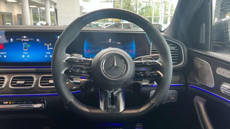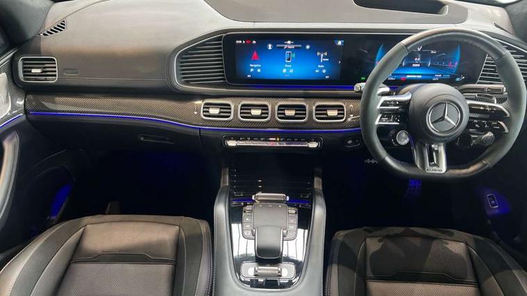 12.3 High resolution wide screen cockpit display with choice of three display styles Classic, Progressive or Sport and unique ambient lighting setting, 360 degree camera, Active parking assist with PARKTRONIC, Attention assist, Brake wear warning display, Direct steer speed sensitive steering, DYNAMIC SELECT with a choice of driving modes (ECO, Comfort, Sport and Individual), Easy-pack tailgate - Powered opening/closing automatically, ECO start/stop function, Hard-disk navigation, Head up Display, MBUX augmented reality for navigation and live traffic, MBUX voice control activated by keywords "Hey Mercedes", Mercedes Benz emergency call system, Mercedes me connect - vehicle set up and monitoring, Outside temperature display, Pre-installation for digital key transfer, Remote boot release, Service indicator (ASSYST), Status display for rear seat belts in instrument cluster, Traffic sign assist, Trip computer in multifunction display showing current fuel consumption, Wireless charging, Wireless smartphone integration including Apple CarPlay and Android auto, 85 litre fuel tank, AMG ride control + with adaptive dampers, AMG Speedshift TCT 9 speed transmission, Mild Hybrid starter alternator, Petrol Particulate Filter (PPF), Additional USB connection, Bluetooth interface for hands free and audio streaming, Burmester surround sound system, DAB digital radio tuner, Front and rear USB ports, Sound personalisation, Adaptive brake lights, Aluminium look, illuminated running boards with rubber studs, AMG bodystyling front and rear aprons, AMG exhaust system with two black chrome round twin tailpipes, AMG performance exhaust system, Auto headlights, Automatically dimming rear view mirror, Body coloured bumpers, Electric windows with one touch opening/closing and obstruction sensors, Electrically adjustable, heated, folding exterior mirrors, Exterior styling - front bumper, radiator grille and front air intakes, Heated windscreen washers, LED 3rd brake light, LED daytime running light signet, LED rear lights, Magic vision control, Matt black roof rails, Multibeam LED headlights with adaptive highbeam assist plus, Panoramic sliding sunroof, Radio aerial integrated into rear window, Rain sensing windscreen wipers, Rear side wing doors, Rear wiper, Roof rail system, Top surround of side windows in polished aluminium, Transparent Bonnet, Visible twin pipe exhaust system integrated into bumper, Waistline in polished aluminium, 3 seat bench in 2nd row, 3 spoke AMG Performance multifunction steering wheel in nappa leather/MICROCUT, 3rd row of seats for 2 people, 4 way adjustable front head restraints and 2 way rear head restraints, 40:20:40 split folding rear seats, AMG floor mats, AMG steering wheel buttons, Automatic child seat recognition sensor, Black MICROCUT Headlining, Climatised front seats, Dinamica microfibre roof liner in black, Double sunvisor, Electric height/reach adjustable steering column, Electrically adjustable front seats with memory function, Electrically adjustable rear seats, Front centre armrest with stowage compartment and illuminated grab handles, Gearshift paddles on steering wheel, Glove compartment - lockable, air conditioned and illuminated, Heated rear seats, Heated steering wheel, Illuminated door sill with AMG lettering, Interior lighting - 64 colour Ambient lighting, Luggage compartment cover, Luxury head restraints in front, Multicontour front seats with massage, Seat occupancy sensor for front passenger seat, Single front passenger seat, Sports pedals in brushed stainless steel with rubber studs, Sunvisors with illuminated vanity mirrors, Temperature controlled cupholder, Thermotronic automatic 4 zone climate control, Touchpad, Air balance package - GLE, AMG night package - GLE, Energizing package - GLE, Exclusive Trim package - GLE, Keyless go comfort package - GLE, Active bonnet, Airbags - driver and front passenger, front sidebag, pelvis bag and window airbags, Anti-lock braking system (ABS), Black seat belts, Childproof locks manually operated for rear doors and electrically operated for rear power windows, Drivers knee airbag, Electronic parking brake, Electronic Stability Programme (ESP), High performance perforated front brake discs and brake calipers with AMG lettering, ISOFIX child seat points with automatic child seat recognition, Pre safe impulse side, Three point rear seat belts, Tyre pressure monitoring system, Warning triangle and first aid kit, Alarm system/interior protection/immobiliser, Central locking with interior switch, automatic locking and crash sensor with emergency opening function, Chrome surround electric key, Dashcam, Guard 360 degree vehicle protection plus, Carbon fibre trim elements, Dashboard and door beltlines in ARTICO man made leather, 22" AMG cross spoke forged alloy wheels in matte black, TIREFIT with tyre inflation compressor,