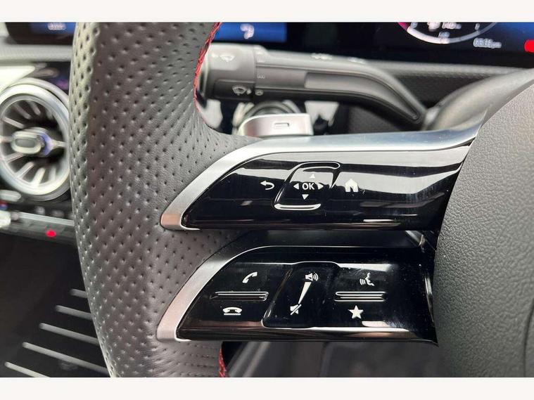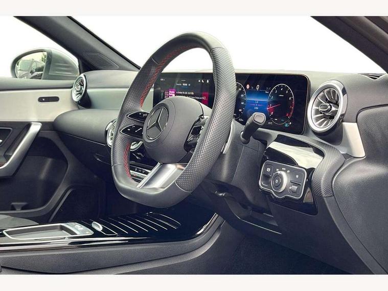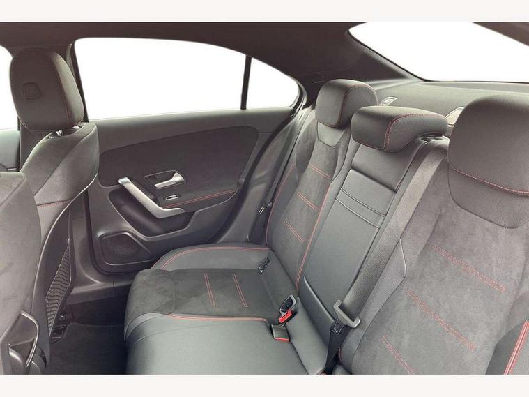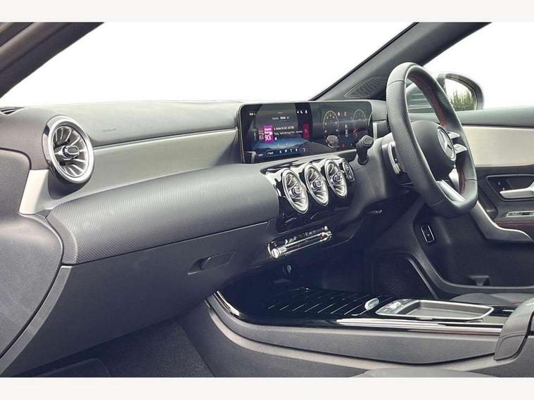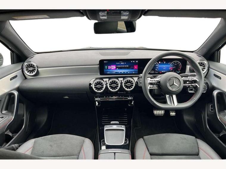 10.25 inch touchscreen central media display, 10.25" Digital instrument cluster display screen, Attention assist, Blind spot assist, Brake pad wear indicator warning light, Car wash mode, Cruise control + speed limiter, Direct steering, Direction indicators with lane change function, Dual bluetooth interfaces, DYNAMIC SELECT with a choice of driving modes (ECO, Comfort, Sport and Individual), ECO start/stop function, Engine start/stop button, Fingerprint scanner, Fluid level warning indicator for fuel, oil, coolant and washer fluid, Fluorescent jacket for driver, Hard-disk navigation, Hey Mercedes Voice activation, Lamp failure indicator, Lane keeping system, Mercedes me connect including emergency call system, accident recovery, breakdown and maintenance management, Mercedes me remote services, Outside temperature gauge, Owners manual in English, Pre-installation of private car share, Preinstallation for Mercedes Benz link, Remote boot closing, Service indicator (ASSYST), Smartphone integration with Apple CarPlay and Android auto, Speed limit assist, Speed sensitive power steering, Trip computer in multifunction display with current consumption indicator, Wireless charging, Lowered comfort suspension, DAB Digital radio, MBUX multimedia system, Mercedes Benz sound system (100 W) with 6 speakers, 4 Electric Front and Rear windows, Adaptive brake lights, AMG body styling - AMG front apron with front splitter and AMG rear apron and visible exhaust tailpipe trim elements, Body colour bumpers, Body colour door handles with chrome inserts, Body colour side skirt, Body coloured door mirrors, Chrome beltline strips, Diamond radiator grille with pins in fine star pattern, Electric adjustable and heated door mirrors with integrated LED side indicators, Exhaust system with 2 visible tailpipe trim elements and rear apron, Headlamp assist automatic headlamp activation, Heat insulating dark tinted rear and rear side windows, Heated glass rear windscreen + timer control, LED High Performance headlamps including integral LED daytime running lamps and adaptive highbeam assist, LED tail lamp, Privacy glass, Radio aerial, Rain sensing windscreen wipers with two sensitivity settings, Rear boot, Rear fog lights, Rear side wing doors, Third brake light featuring LED technology, Window line trim strip in chrome, 3 seat bench in 2nd row, 3 Spoke flat bottom leather multi function steering wheel with perforated leather in grip area, 4 way lumbar support, 40:20:40 split folding rear seats, Air conditioning - One zone thermatic automatic climate control with automatically controlled air distribution, AMG floor mats, Automatic child seat recognition sensor, Black air vents with surround in silver chrome, Black roof lining, Brushed stainless steel sports pedals with rubber studs, Front centre armrest with stowage, Front door sills with Mercedes Benz lettering, Front seat backs luggage nets, Galvanished gear shift paddles on steering wheel, Heated front seats, Height/reach adjustable steering column, Interior lighting - 64 colour Ambient lighting, Interior mirror with reading lamps in black and frameless, Rear armrest with 2 cupholders, Seat occupancy sensor for front passenger seat, Single front passenger seat, Sports seats with adjustable head restraints, Stowage compartment in centre console with retractable cover, Sunvisors with illuminated vanity mirrors, Twin front cupholders, Keyless go comfort pack - A Class, Light and sight package - A Class, Mirror package - A Class, Parking pack with 180 degree view - A Class, Seat comfort pack - A Class, USB pack plus - A Class, 3 rear 3 point seatbelts, ABS with Brake Assist, Active bonnet, Active brake assist includes forward collision warning system with autonomous braking, Adaptive brake assist with hold function and hill start assist, Black seatbelts, Bonnet with power domes, Childproof locks manually operated for rear doors and electrically operated for rear power windows, Crash responsive emergency lighting, Driver and passenger head and side airbags, Drivers knee airbag, Dual stage driver/passenger airbags, Electronic parking brake, ESP curve dynamic assist, ESP with ASR, Front and rear seatbelt reminder, ISOFIX and top tether child seat fixing points in two outer rear seats, Tyre pressure monitoring system, Warning triangle and first aid kit, Window airbags, Alarm system/interior protection/immobiliser, Guard 360 degree vehicle protection, Remote central locking and crash sensor with emergency opening function, Light longitudinal grain aluminium trim, 18" AMG 5 twin spoke light alloy wheels, aerodynamically optimised, painted in black with high sheen finish, Summer tyres, Tirefit sealant kit,