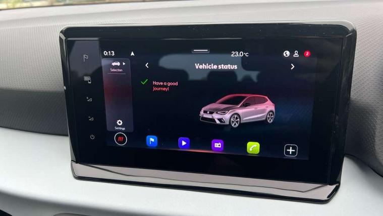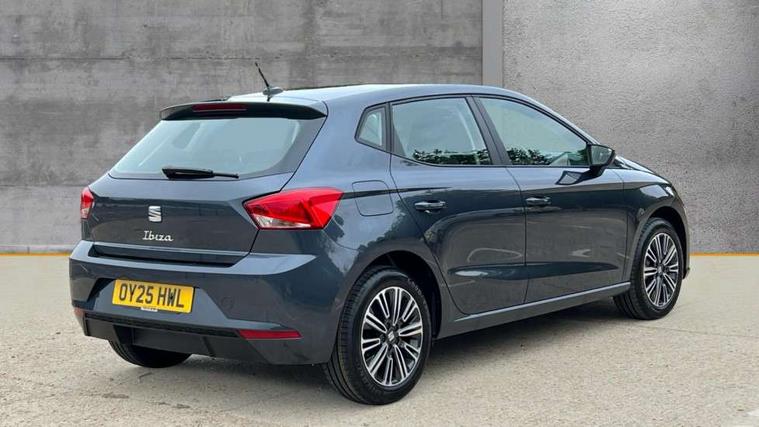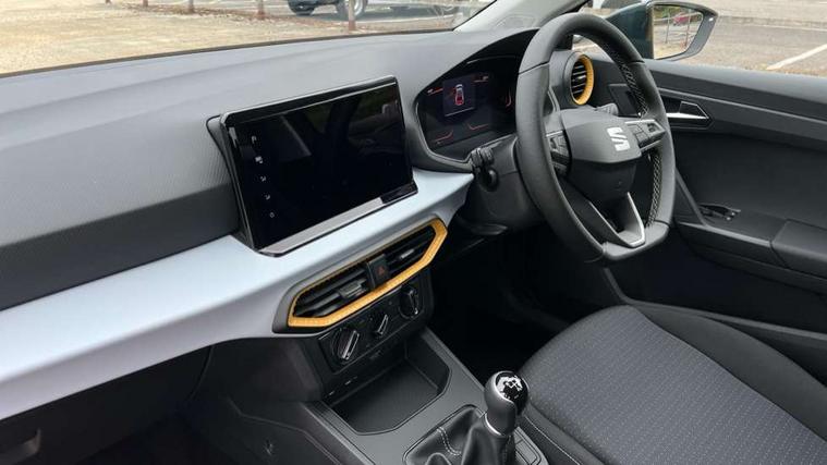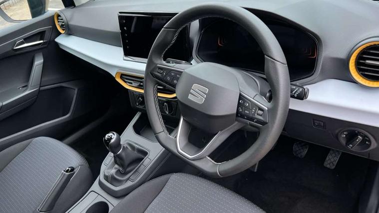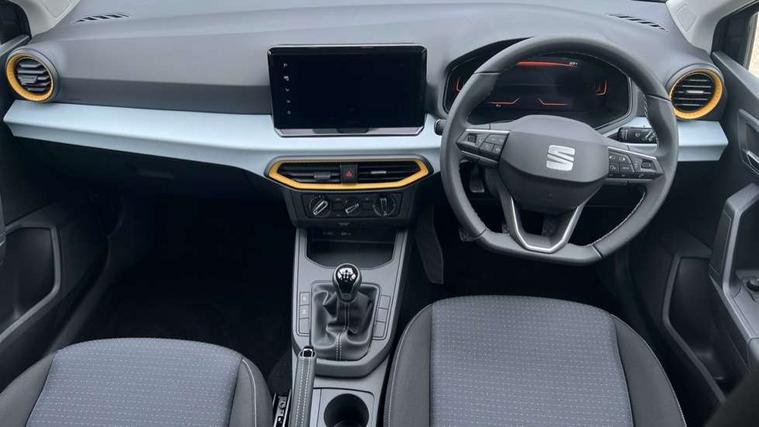 'Lights On' Reminder warning buzzer, 8" Digital cockpit, 9.2" touchscreen navigation system with type C USB socket, Voice control and DAB/AM/FM radio, Auto start and stop system, Bluetooth audio streaming with handsfree system, Cruise control, Digital clock, E-call, Full link smartphone integration with mirror link, wireless apple carplay, Google android auto + USB Type C cable for apple and android devices, Lane assist, Low fuel warning light, Outside temperature gauge, Power Steering, Rear parking sensor, Seat connect plus with safety, service, remote and online, SEAT logo boot release, Speed limiter, Traffic sign recognition, Trip computer, Comfort suspension, Auxiliary input socket, Radio/MP3 player, SD card slot, Steering wheel mounted controls, Anti theft roof antenna, Body colour bumpers, Body colour door handles, Body colour door mirror caps, Dimming interior rear view mirror, ECO LED automatic headlights and LED daytime running lights, Electric front windows, Electric headlight adjustment, Electrically adjustable door mirrors, Front/rear fog lights, LED tail lights, Rain sensor, Rear side wing doors, Rear wiper, Third brake light, 3 seat bench in 2nd row, 60/40 split folding rear seat, Air conditioning with dust and pollen filter, Chrome interior detailing and grey headlining, Cloth upholstery, Comfort seats, Front courtesy lights, Front cupholders x 2, Front reading lights, Gear shift indicator, Glovebox, Grey interior air vents, Height adjustable front and rear headrests (five), Height adjustable front seats, Height/reach adjust steering wheel, Illuminated boot, Instrument lighting with brightness control, Isofix, Leather multifunction flat bottomed sports steering wheel, Passenger sunvisor, Single front passenger seat, Sunvisors with mirror and driver side card holder, Safety and driving pack (S) - Ibiza, 3 point seatbelts on all 3 rear seats, ABS, Active front headrests, Child locks on rear doors, Electronic stability control, Energy recovery system, Front assist forward collision warning and autonomous emergency braking, Front driver and passenger side airbags with curtain airbag and front passenger airbag deactivation, Hill hold control, Multi-Collision braking, Seat belt reminder for front and rear seats, Tiredness recognition system, Tyre pressure monitoring system, Electronic engine immobiliser, Locking wheel bolts, Remote central locking + deadlocks, 16" Design machined alloy wheels in Nuclear grey,