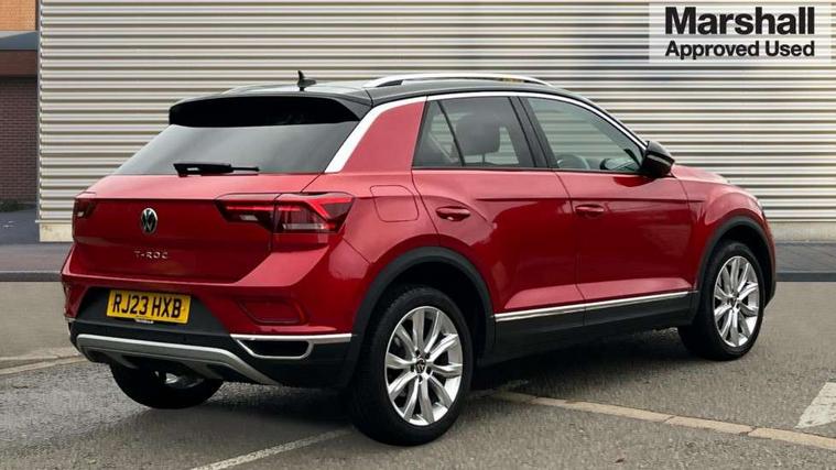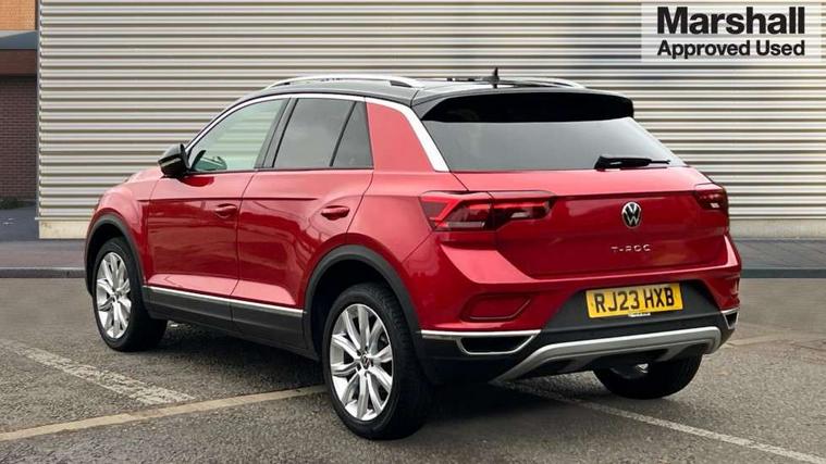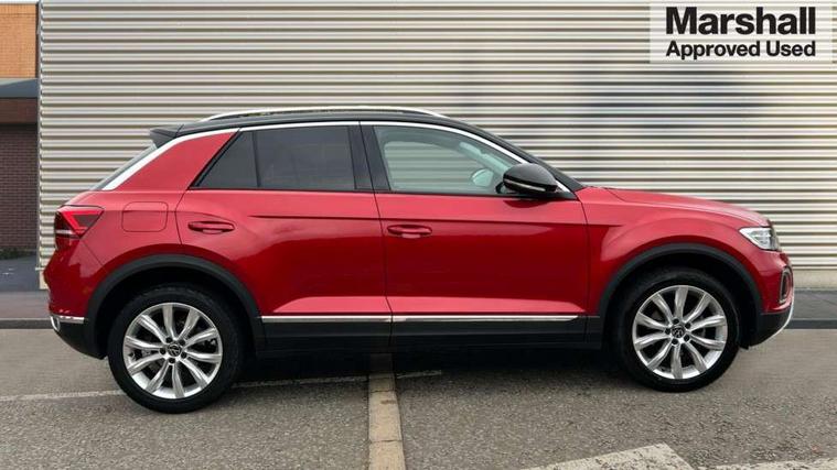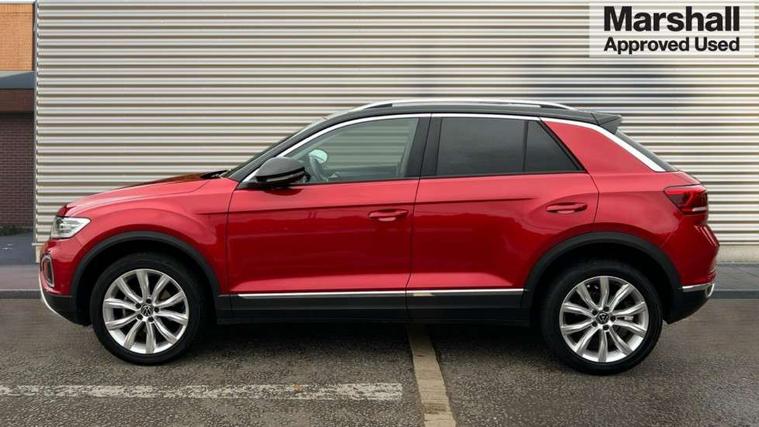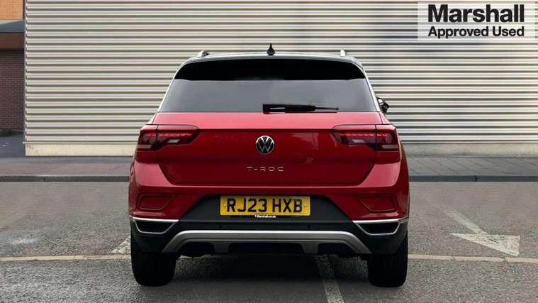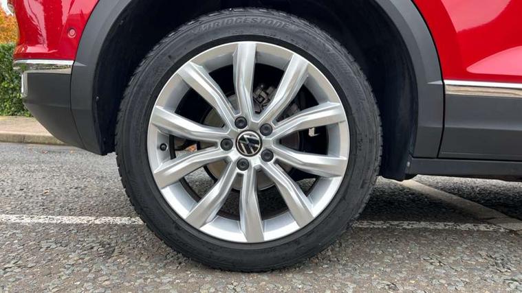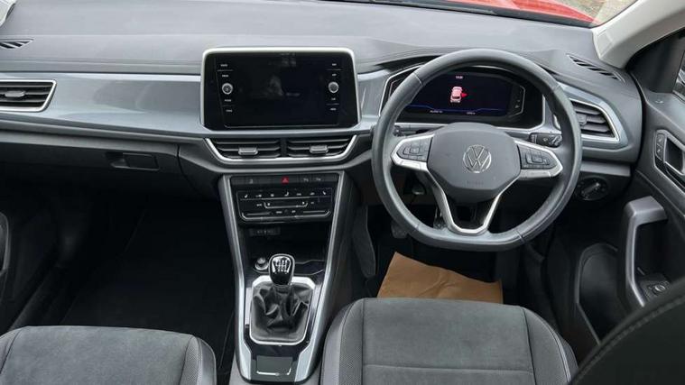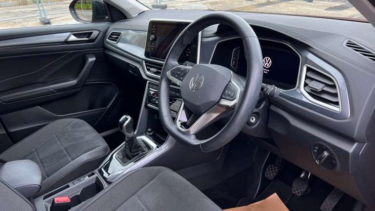 10.25" Digital cockpit pro, Bluetooth mobile phone interface, Driver alert system with fatigue detection, Driver tips and journey analysis, Dynamic road sign display, Emergency call service, Lane keeping system Lane Assist, Modified key software - reduce switch off time for key status change to Long no motion, Online services, Park assist including front and rear parking sensors, Power assisted speed sensitive steering, Service interval indicator, Tailgate/trunk lid release from outside, Think blue trainer driver tips and journey analysis, Warning sound and light for front seatbelts unfastened, Wireless app connect, Battery regeneration during braking, Front shock absorption, Rear shock absorption chassis with increased ride height, Start/stop function with battery regeneration, Diversity antenna for FM reception, Music playback - MP3, WMA and AAC files, Premium USB cable in choice of either Apple or Android smartphone compatibility, SD card slot, Simultaneous pairing of 2 compatible mobile devices, Title and cover art display, We Connect and We Connect Plus functionality, 3rd brake light, Auto dimming interior rear view mirror, Automatic hazard lights activation under emergency braking, Automatic headlight control with LED separate daytime running lights with coming/leaving home function, Body colour sports bumpers with silver metallic underbody fascia, Dynamic headlight range control with self adjusting whilst driving, Extended roof spoiler, Exterior mirrors aspherical on driver side, convex on front passenger side, External USB type C socket and charging sockets, Front windscreen wiper with intermittent wipe and 4 position delay, Heated rear window, LED rear combination lamps, LED rear number plate lights, LED tail lamp rear comination lamps, Light mode for poor weather, rain, fog or snow, Power windows with comfort operation and circuit breaker, Rain sensor, Rear exhaust tailpipe, Rear fog light on one side and reversing lights on both sides, Rear side wing doors, Rear wash/wipe with intermittent wipe setting, Remote electrically foldable door mirrors, puddle lights and reverse activated passenger's door mirror, 12V power socket in centre console, 3 rear head restraints, 3 seat bench in 2nd row, 4 load lashing points in luggage compartment, Air care climatronic air conditoning system with active combination filter and 2-zone temperature control, Chrome plated radiator grille inserts, air vent surrounds and light switch surrounds, Door and side trim panel with leatherette insert, Drawer under drivers seat, Front + rear carpet mats, Front centre armrest, Front comfort sports seats, Front cupholders x 2, Front footwell illumination, Instrument lighting, white adjustable panel illumination, Interior ambient lighting and surround lighting, Interior light delay, Isofix child seat preparation, Leather gearshift handle, LED interior light with switch off delay/dimmer and 2 front/rear LED reading lights, Load-through provision with cup holder when folded down ('Unsplit rear seat bench, split folding backrest, with centre armrest), Luggage compartment lighting, Non-folding front passenger seat backrest, Single front passenger seat, Storage compartment in left and right luggage area, Storage compartment in rear doors, Storage compartments in driver and front passenger doors, Sunvisors with illuminated vanity mirrors, Variable boot floor, height adjustable and removable, Driver assistance pack without proactive passenger protection - T-Roc, 3 point height adj front seatbelts + pretensioners, 3 point seatbelts in outer rear with ECE label, ABS, Child locks on rear doors, Driver and front passenger airbag with front passenger airbag deactivation, Driver and front passenger safety-optimised head restraints, Drivers seatbelt reminder, Electronic parking brake, Electronic Stability Control (ESC) inc EDL (Electronic Differential Lock) and ASR (Traction Control), Front and rear passengers curtain airbag system including front side airbags, Front assist with city emergency braking and pedestrian monitoring, Front disc brakes, Front seat side impact airbags, Predictive pedestrian protection, Rear disc brakes, Single tone horn, Tyre pressure loss indicator, Volkswagen roadside assistance, Anti-theft alarm system with interior monitoring, backup horn, and towing protection, Remote central locking with SAFELOCK, radio remote control with 2 remote control folding keys, Trims for alloy wheels,