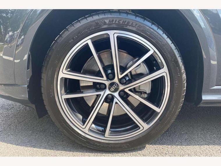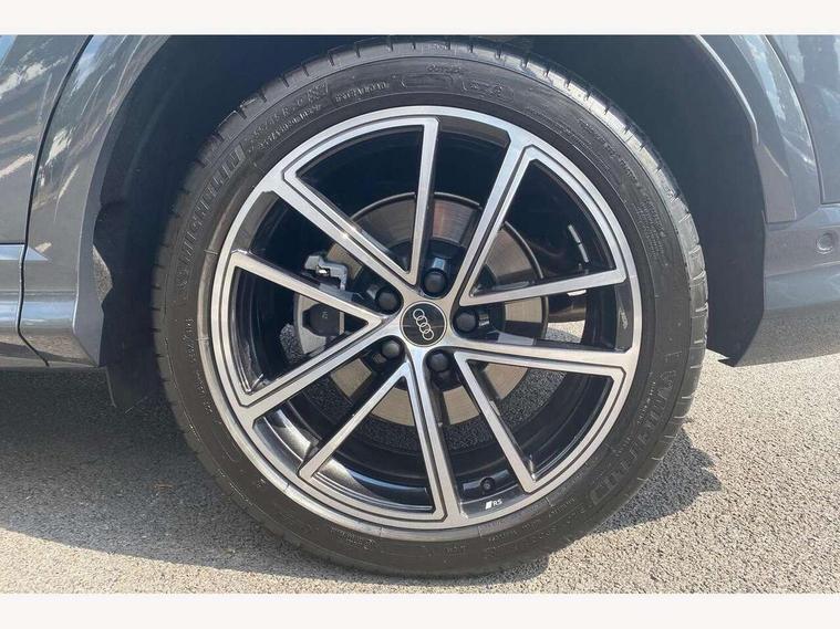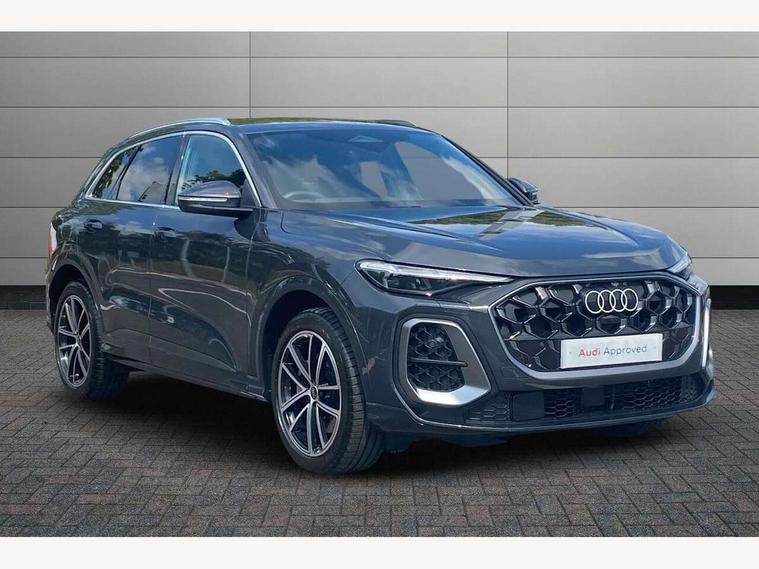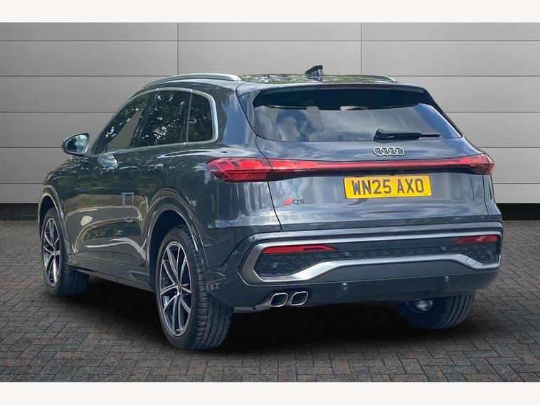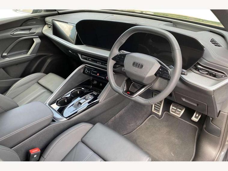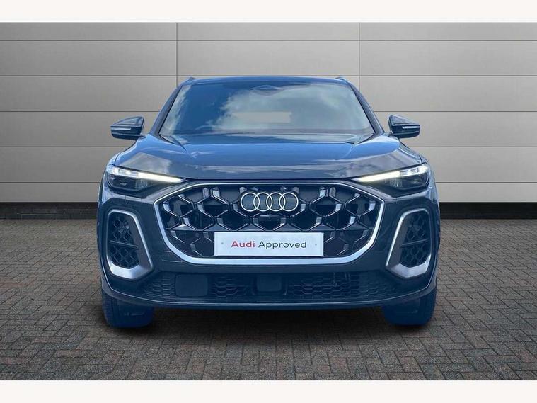 Adaptive cruise assist plus with steering intervention, Advanced driver attention alert, Audi application store, Audi connect emergency call and service, Audi digital key, Audi drive select, Audi smartphone interface, Audi virtual cockpit plus with 11.9" OLED colour display, Camera based traffic sign recognition, Fatigue monitor, Front cross traffic intersection assist, Garage door opener, Lane change assistant with exit warning system, rear cross traffic alert and rear turn assist, Lane departure warning with emergency assist, MMI 10.9" front passenger touch display, MMI navigation plus with high resolution 14.5" OLED touchscreen colour display, Park assist plus, Parking system plus with 360 display, PAS, Reversing camera, Swerve assist and turn assist, Top view camera, Traffic sign based speed limiter, Adaptive air suspension, 2 USB-C ports in both the front and rear, DAB Digital radio, Smartphone compartment with wireless charging, Acoustic glass for front door windows, Active digital light signatures - Six additional combinations of active daytime running light signature, Aluminium roof rails, Auto dimming rear view mirror, Body coloured door mirrors, Coming/leaving home lighting function, Digital OLED tail lights including communication light, Electrically adjustable heated and folding + automatically dimming exterior mirrors, Front and rear electric windows, Front door sill trims with aluminium inlays, illuminated with 'S' logo, Headlight cleaning system, Heated rear window, High beam assist, High gloss window surrounds, Inlay and front air inlets in matt anthracite chrome, Logo projection light in exterior mirrors, Matrix LED headlights, Privacy glass, Projection light for rear window, Radiator grille in phantom black, Rear and side windows with heat insulating glass, Rear honeycombe grille in matt black with inlay in matt anthracite chrome, Rear side wing doors, Rear wash/wipe, S Line badge on the front wings, S line bumpers in contrasting Volcano grey metallic paint finish, Towbar preparation, Windscreen with acoustic glazing, 3 rear head restraints, 3 seat bench in 2nd row, 3 spoke leather steering wheel with multi-function buttons with touch control, flattened on top and bottom, with S badging and contrast stitching, 4 way electric lumbar support for driver and front passenger, 40:20:40 split folding rear seat bench with centre armrest and cup holders, Comfort centre armrest, Deluxe 3 zone electronic climate control, Electric steering wheel adjustment, Electrically adjustable front seats with memory function for driver's side, Front and rear floor mats, Front sport seats with integrated head reastrains, Headlining in black cloth, Heated front seats, Heated outer rear seats, Heated steering wheel, i-Size child seat mounting on the front passenger side and i-Size and top tether on the outer rear seats, Interior trim in aluminium look, Luggage compartment lid, electrically opening and closing, Single front passenger seat, Softwrap in leatherette, Stainless steel pedals and footrest, Steering wheel grips in perforated leather and shift paddles, Twin leather upholstery, Ambient lighting package plus - Q5, Sound and Vision pack - Q5, Storage and luggage compartment pack - Q5, Vanadium pack - Q5, 3x3 point rear seatbelts, ABS, Acoustic vehicle alerting system, Convenience key with safelock, Driver and front passenger airbag with passenger airbag deactivation, Electric child safety locks, First aid kit with warning triangle and high visibility vests, Front emergency brake assist, Front side airbags with head airbag system and front interaction airbag, Hill hold assist, Occupant detection in rear seat area, Proactive passenger protection system for front, sides and rear, Side airbags in front and rear with head airbag system and front interaction airbag, Tyre pressure loss indicator, Anti theft alarm, Anti-theft wheel bolts, Remote control key with SAFELOCK and keyless go, Anthracite matt brushed aluminium inlays with linear embossing, Black dashboard with contrast stitching, Steel grey seat stitching, Upper and lower interior elements in artificial leather, 20" 5 twin spoke black metallic, gloss turned finish Audi Sport alloy wheels, Tyre repair kit,