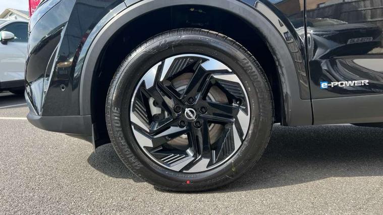 2 front USB-C ports, 2 rear USB-C ports, 360 degree Intelligent around view monitor with moving object detection, Blind spot warning, Drive assist custom mode, Drive modes (sport, normal, eco), Driver drowsiness and attention warning, e-Pedal step, Electric speed sensitive power steering, Emergency and breakdown call, Emergency lane keep assist, Emergency Stop Signal (ESS), Engine start/stop button, EV mode switch, Event data recorder, Front and rear parking sensors, Full Digital 12.3" TFT Digital Combimeter, Google virtual personal assistance, Idle stop/start system, In-car WIFI hotspot, Intelligent Cruise control (ICC), Intelligent driver alert system, Intelligent forward collision warning, Intelligent lane intervention, Intelligent speed assist, Lane departure warning system, Maximum speed limiter, Nissan connect 12.3 inch touchscreen infotainment system, Nissan connect navigation with google maps, Nissan connect services 2.0 (Google Automotive System), Outside temperature sensor, Propilot assist with Navi-Link, ProPilot park, Rear cross traffic alert, Remote control services - door locks, lights, horn and car locator, Reversing detection, Traffic jam pilot, Traffic sign recognition with legal speed adjustment, Trip computer, Wireless Apple CarPlay/Android Auto, Wireless charging pad, Limited slip differential, 6 speakers, AM/FM audio system with DAB, Bluetooth audio streaming, Auto dimming frameless rear view mirror, Auto rear wiper when reversing, Body colour mirror caps, Body coloured door handles, Bodyside mouldings, Chrome side window finisher, e-POWER badging, Electric auto folding door mirrors, Electrically adjustable and heated door mirrors with LED turn indicator, Follow me home headlights, High beam assist, Intelligent auto headlights, LED 3rd brake light, LED daytime running lights, LED Headlights, LED rear lights, One touch front and rear electric windows with remote opening and closing, One touch passenger window, Partially body coloured bumpers, Rain sensing wipers, Rear privacy glass, Rear roof spoiler, Rear side wing doors, Rear styling plate, Shark fin antenna, Silver roof rails, Splash free rain sensing wipers, Super UV and infrared cut glass, Three blink turn signal, 12v power socket in dashboard and luggage, 3 bench rear seats in 2nd row, 3 rear headrests, 60/40 split folding rear seat bench, Chrome interior door handles, Cloth upholstery, Driver and passenger sunvisors with illuminated vanity mirrors, Driver seat back pocket, Dual zone automatic climate control with pollen filter, e-POWER shifter, Electrically adjustable lumbar support for driver, Front centre console and armrest, Front cupholders, Front door with bottle holders, Height adjustable driver seat, Height adjustable front headrests, Height adjustable passenger seat, Luggage board system, Luggage space lighting, Multifunction steering wheel, Passenger seat back pocket, Rear door bottle holders, Rear seat armrest with 2 cupholders, RGB ambient light (Full area coverage), Single front passenger seat, Smooth leather steering wheel, Tilt/telescopic adjustable steering wheel, Two rear isofix child seat anchorage points with top tether, 3x3 point rear seatbelt pretensioners + load limiters, ABS with EBD and brake assist, Autonomous emergency braking, Child locks on rear doors, Curtain and front side, far side airbags, Driver and passenger airbags, Driver, passenger and 2nd row rear seat belt reminder, Electric handbrake with auto hold function, Front seatbelt pretensioners + load limiters, Height adjustable front seatbelts, Hill start assist, Intelligent blind spot intervention, intelligent front emergency braking, Intelligent rear automatic braking, Tyre pressure monitoring system, Vehicle dynamic control, Engine immobiliser, Intelligent key with walk away lock and approach unlock functions, Remote central door locking with deadlocking, Thatcham alarm, 18" Diamond cut alloy wheels, Tyre puncture repair kit,